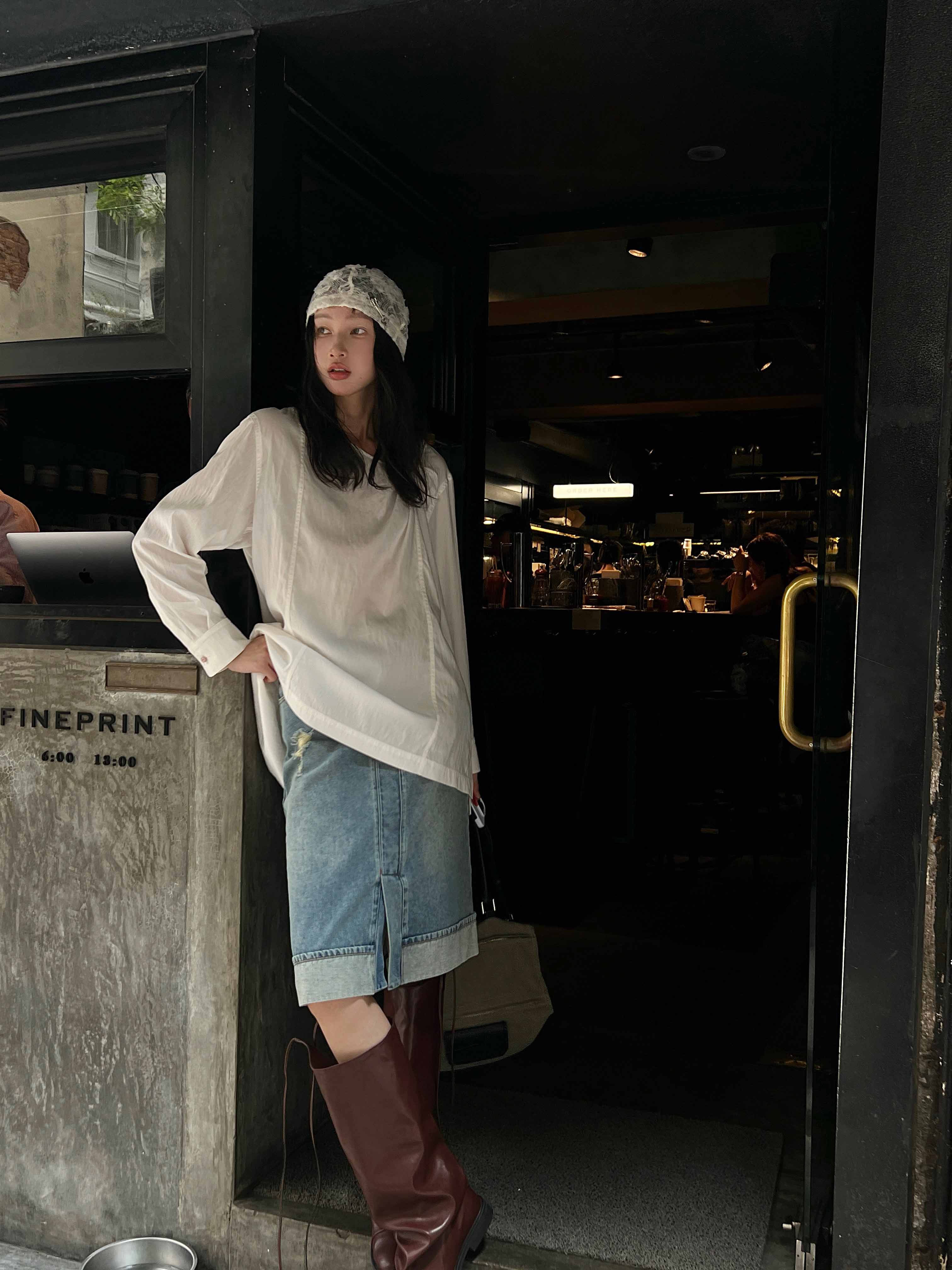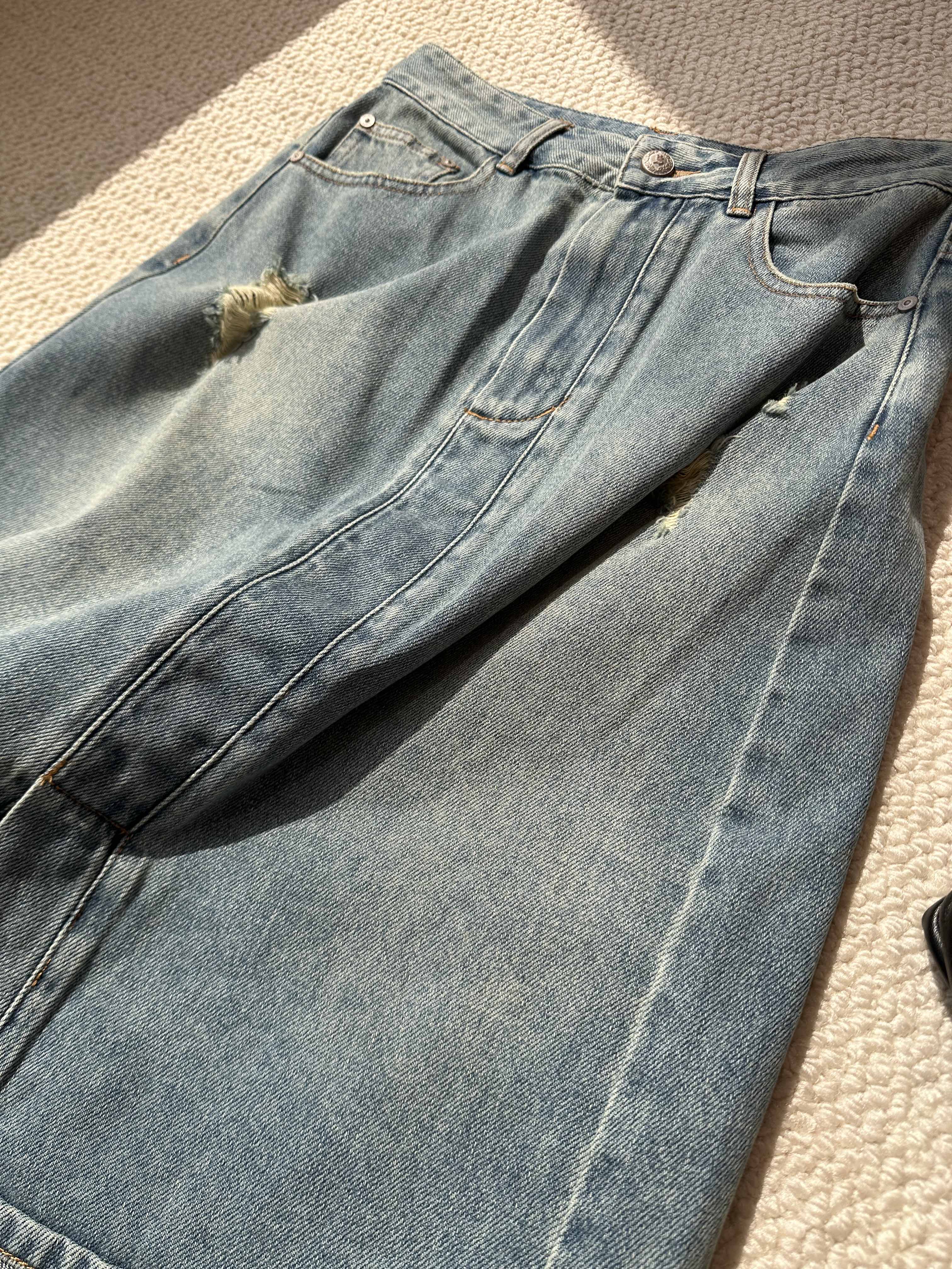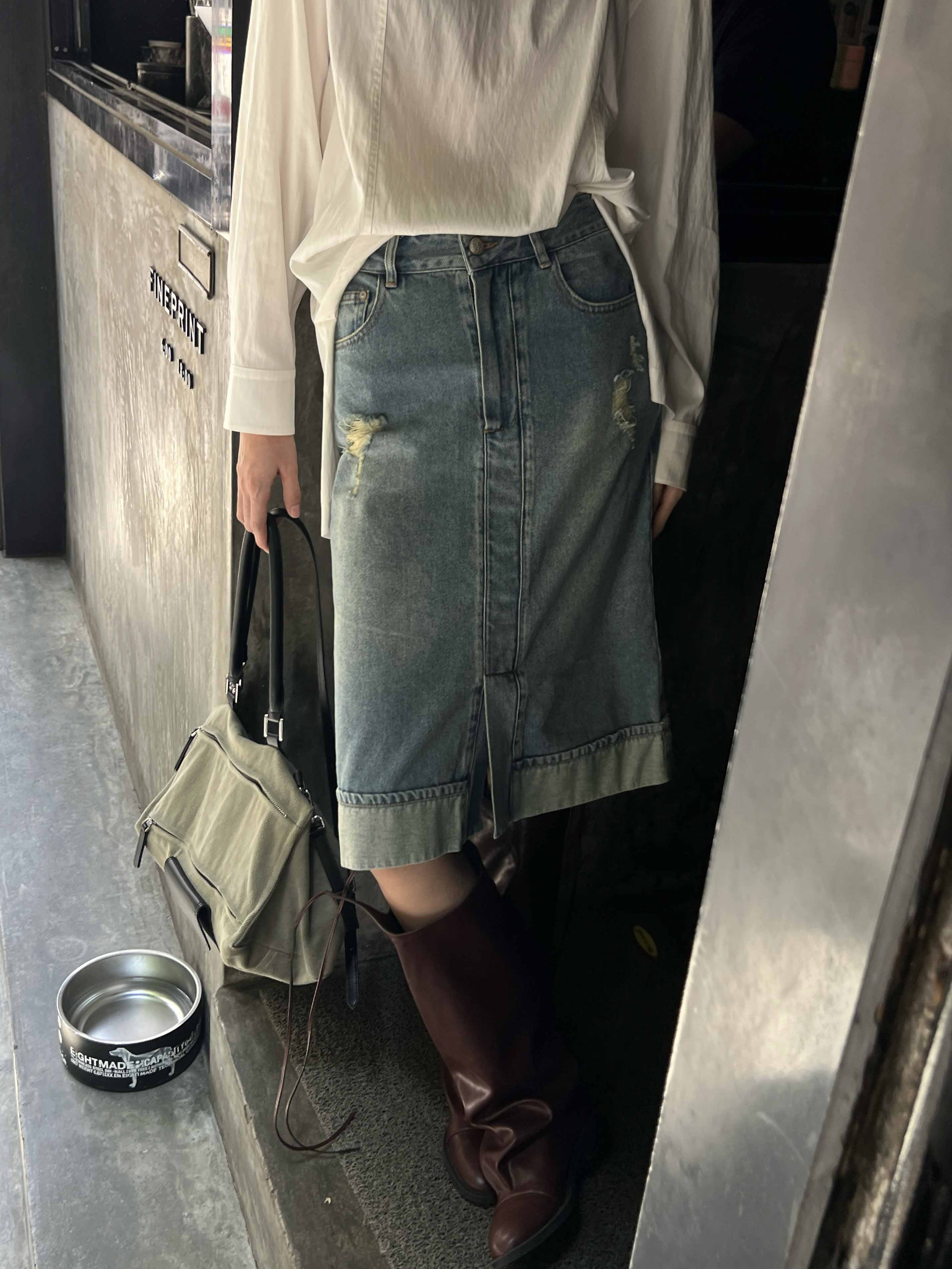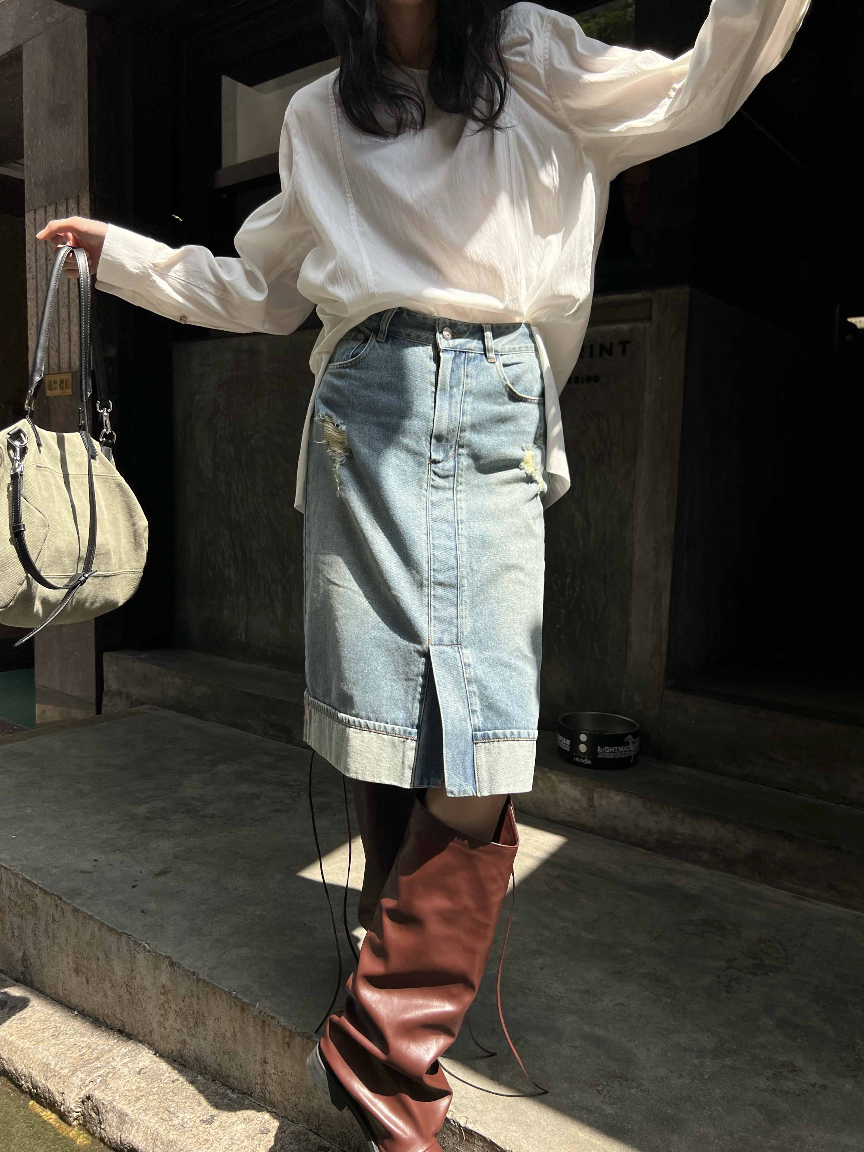 顺丰包邮洛诗琳02648设计感美式复古水洗割破牛仔半身裙女723
