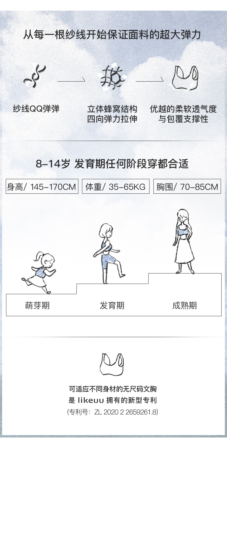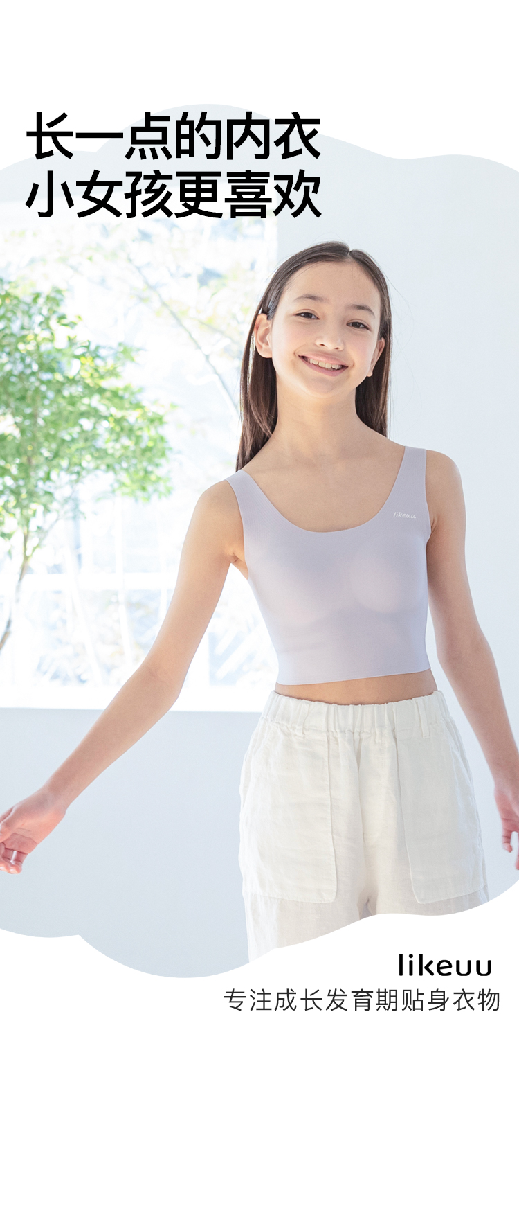 likeuu是专注于为6~15岁的青少年创造柔软、无束缚的成长体验,以好奇心为灵感的成长发育期贴身衣物品牌。likeuu的产品覆盖内衣、内裤、保暖衣、家居服、运动等品类。