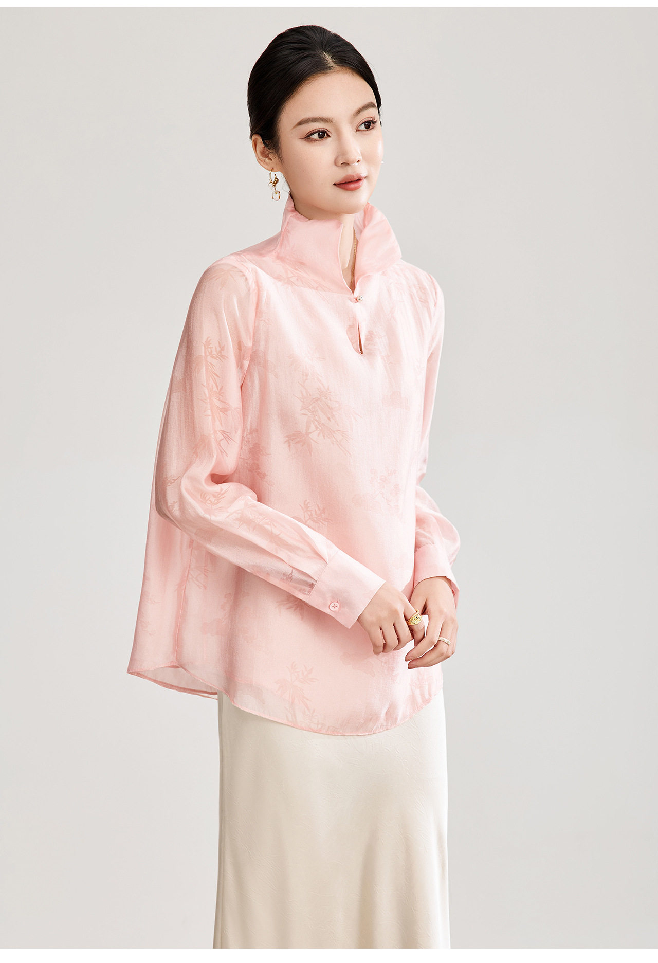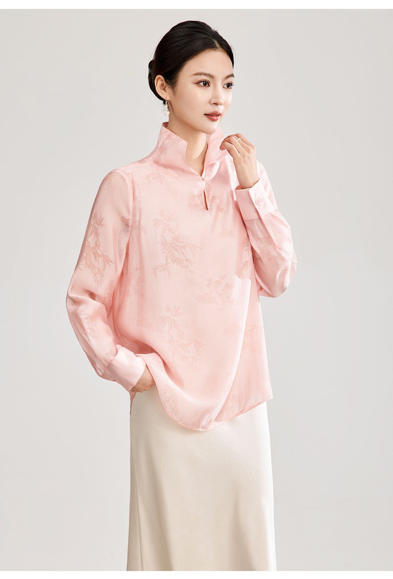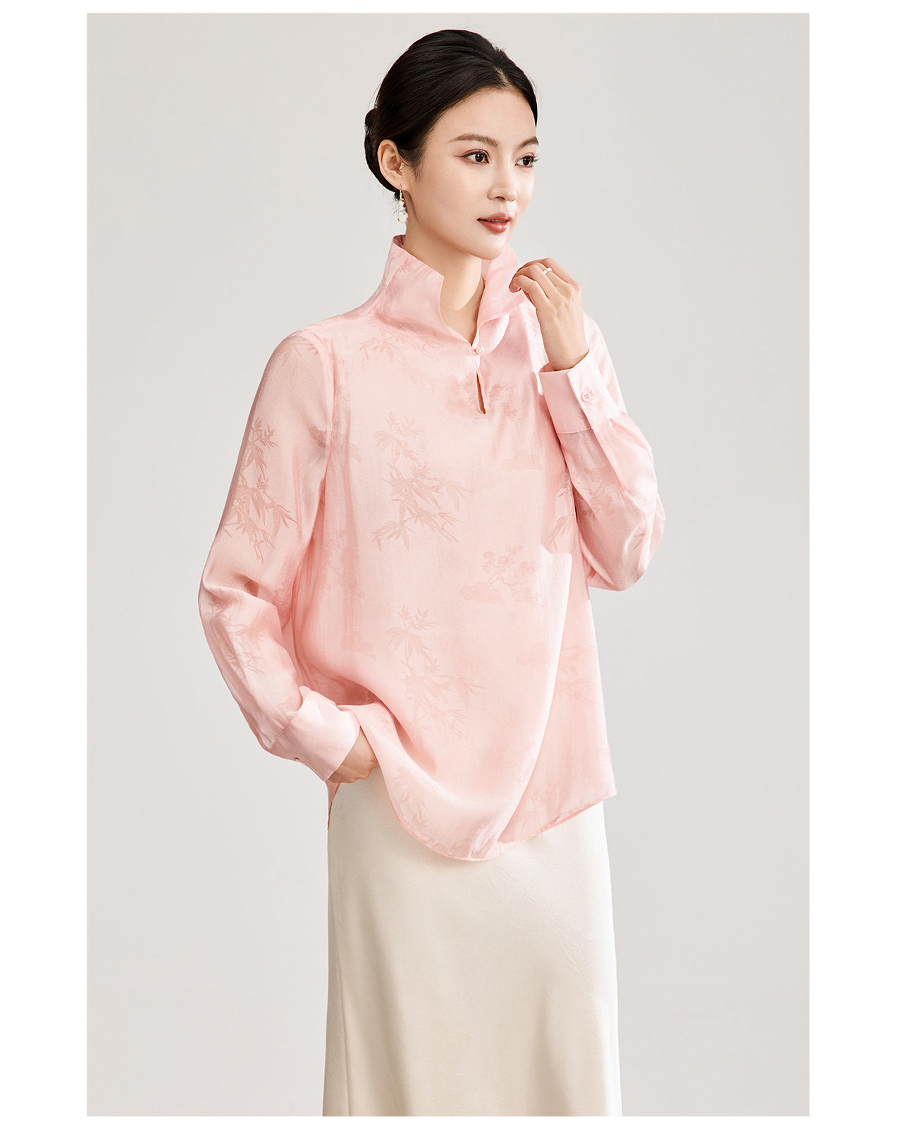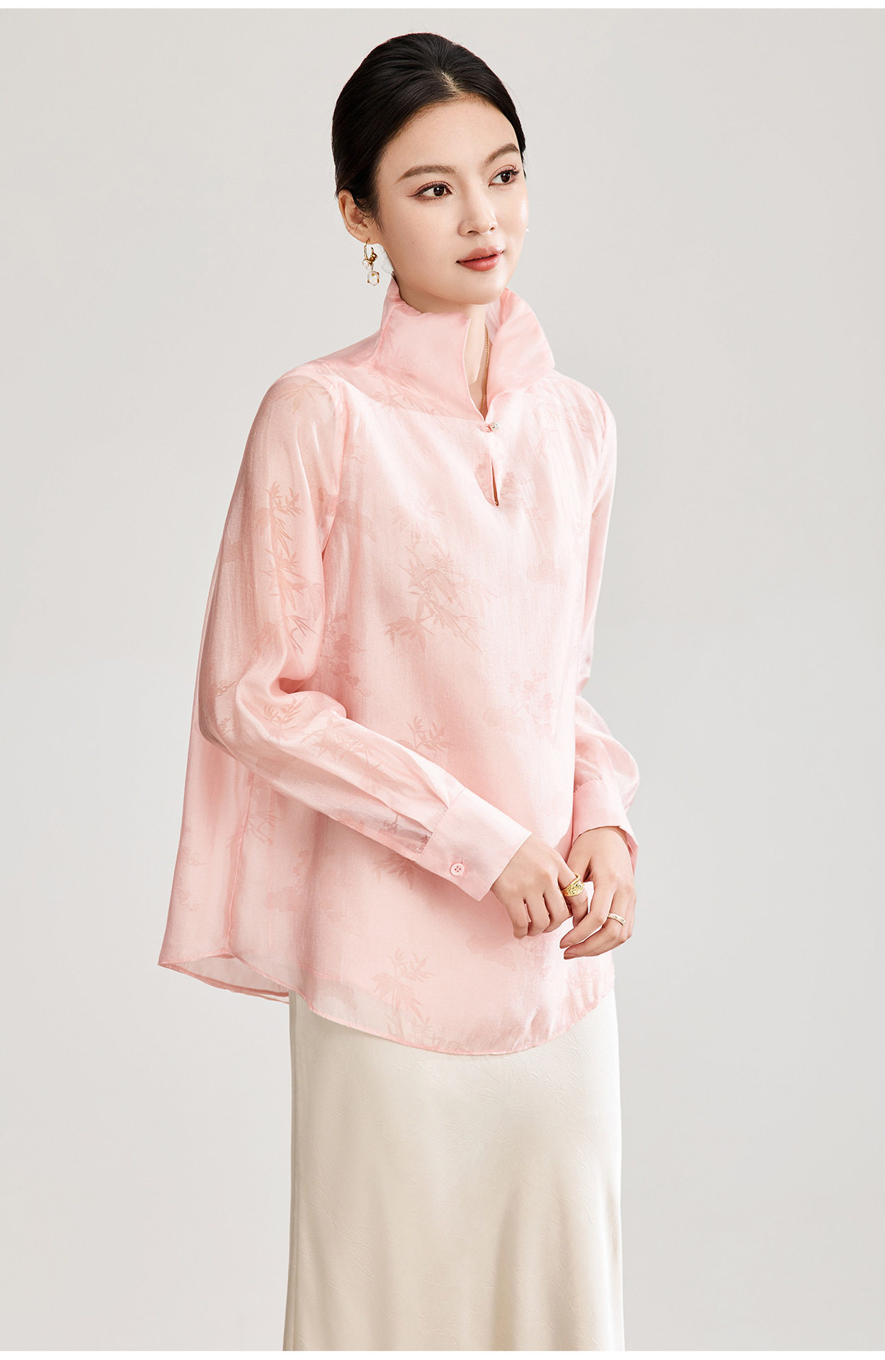 「高货wl」全新升级【铂金会员257/天猫339/差价82】(00913)洛诗琳新中式人丝提花上衣2026春季新款立领国风衬衫女