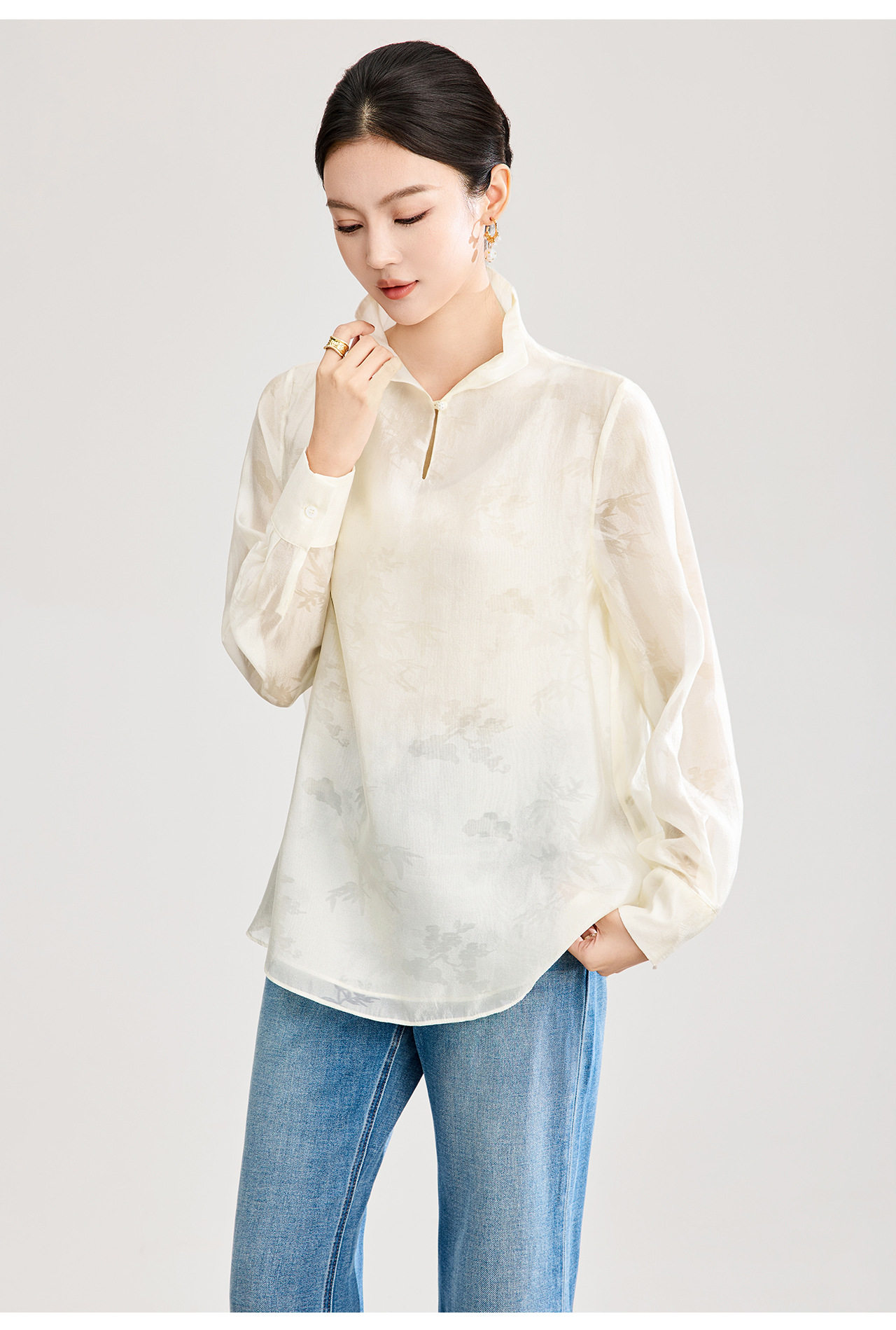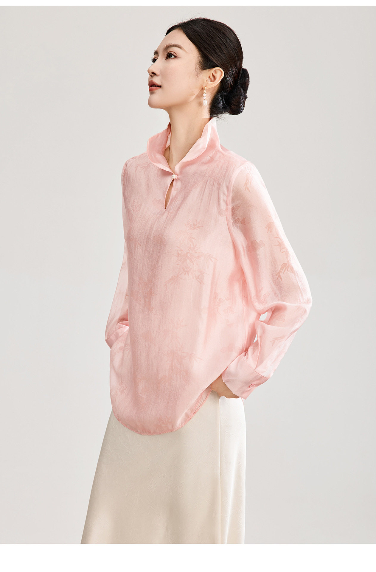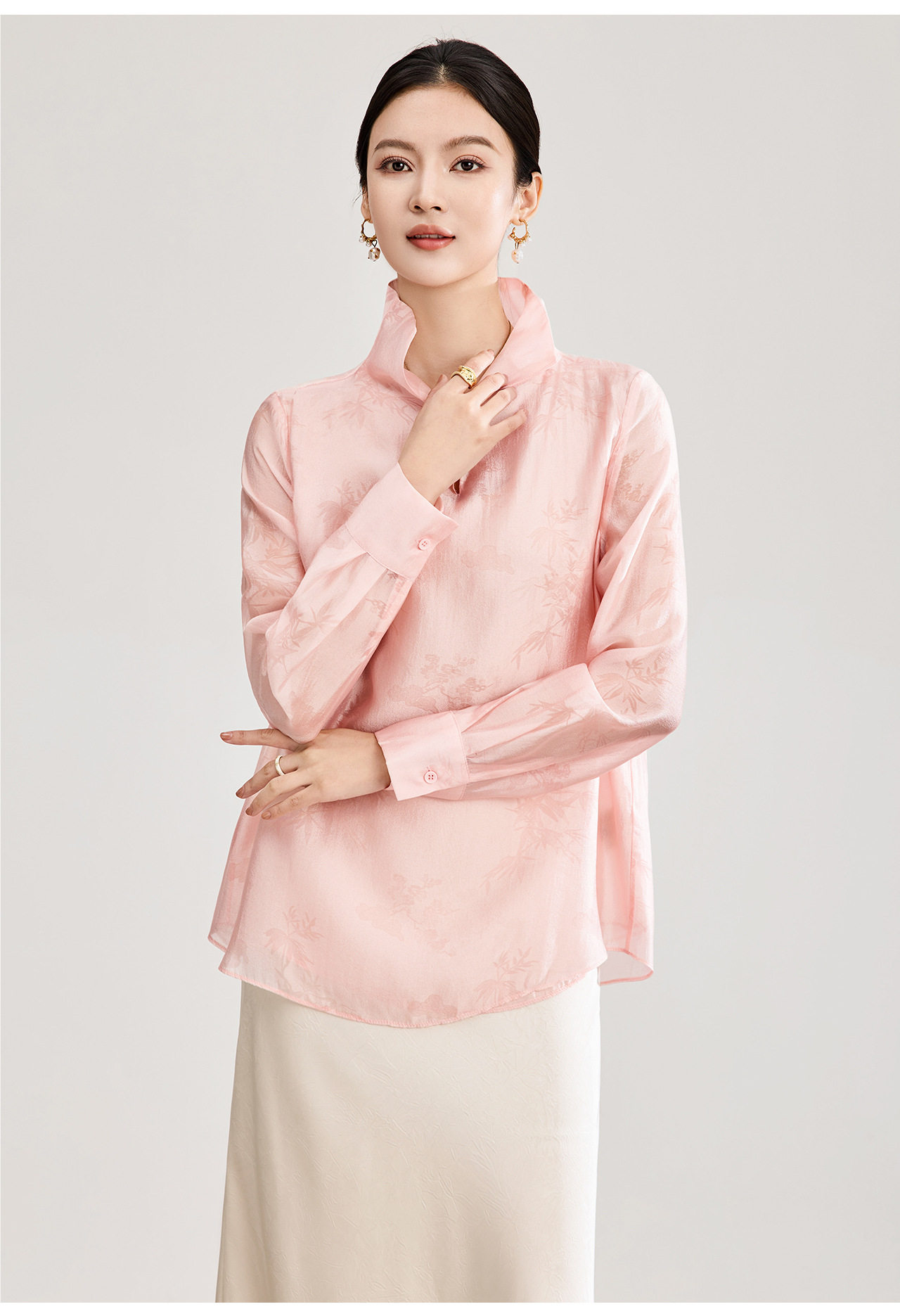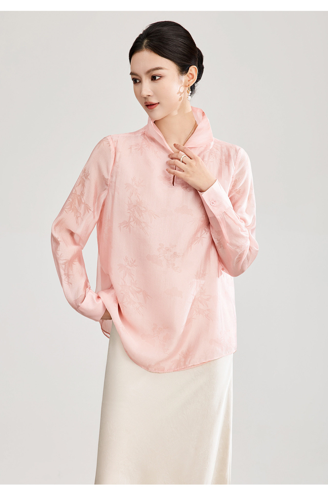 「高货wl」全新升级【铂金会员257/天猫339/差价82】(00913)洛诗琳新中式人丝提花上衣2026春季新款立领国风衬衫女