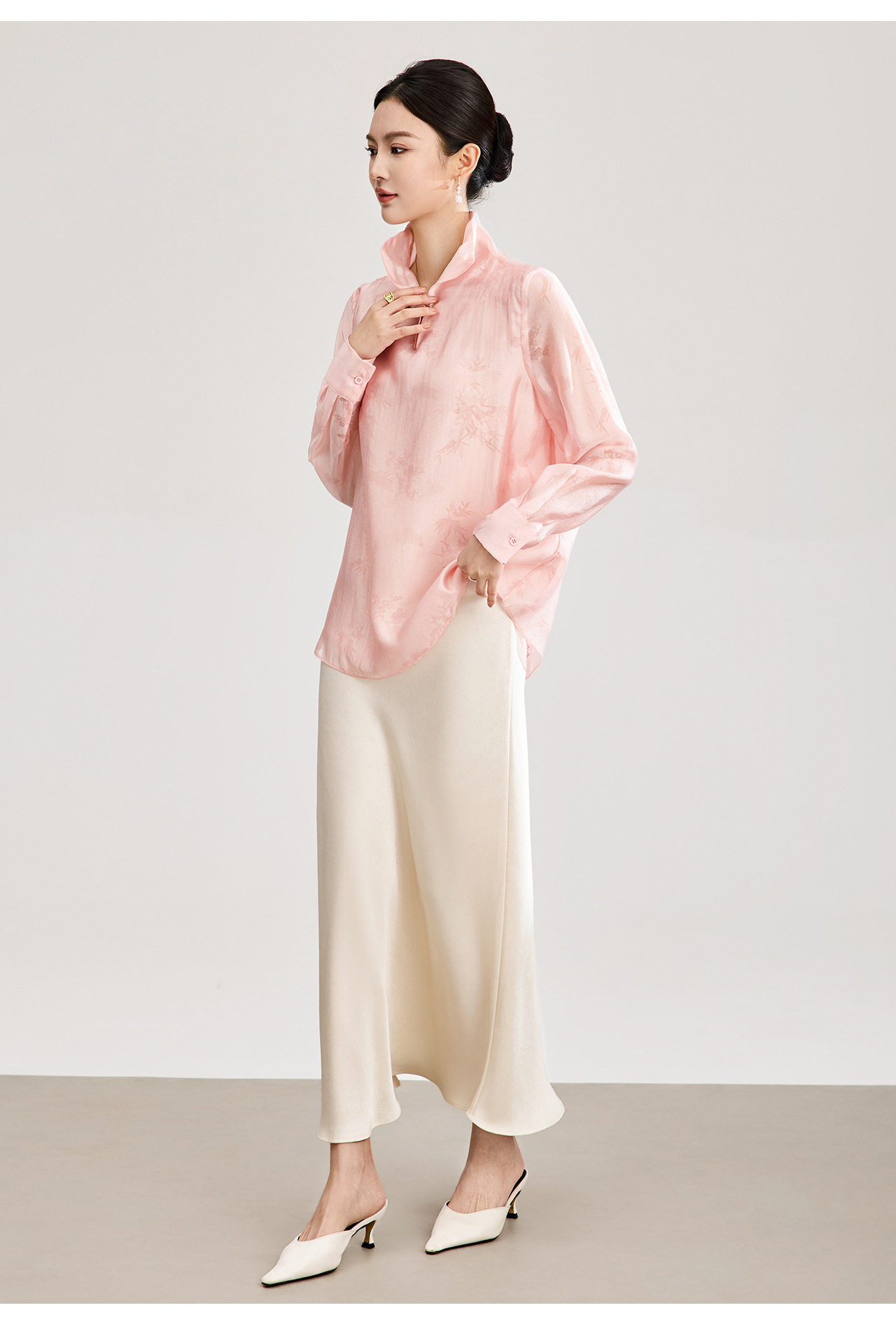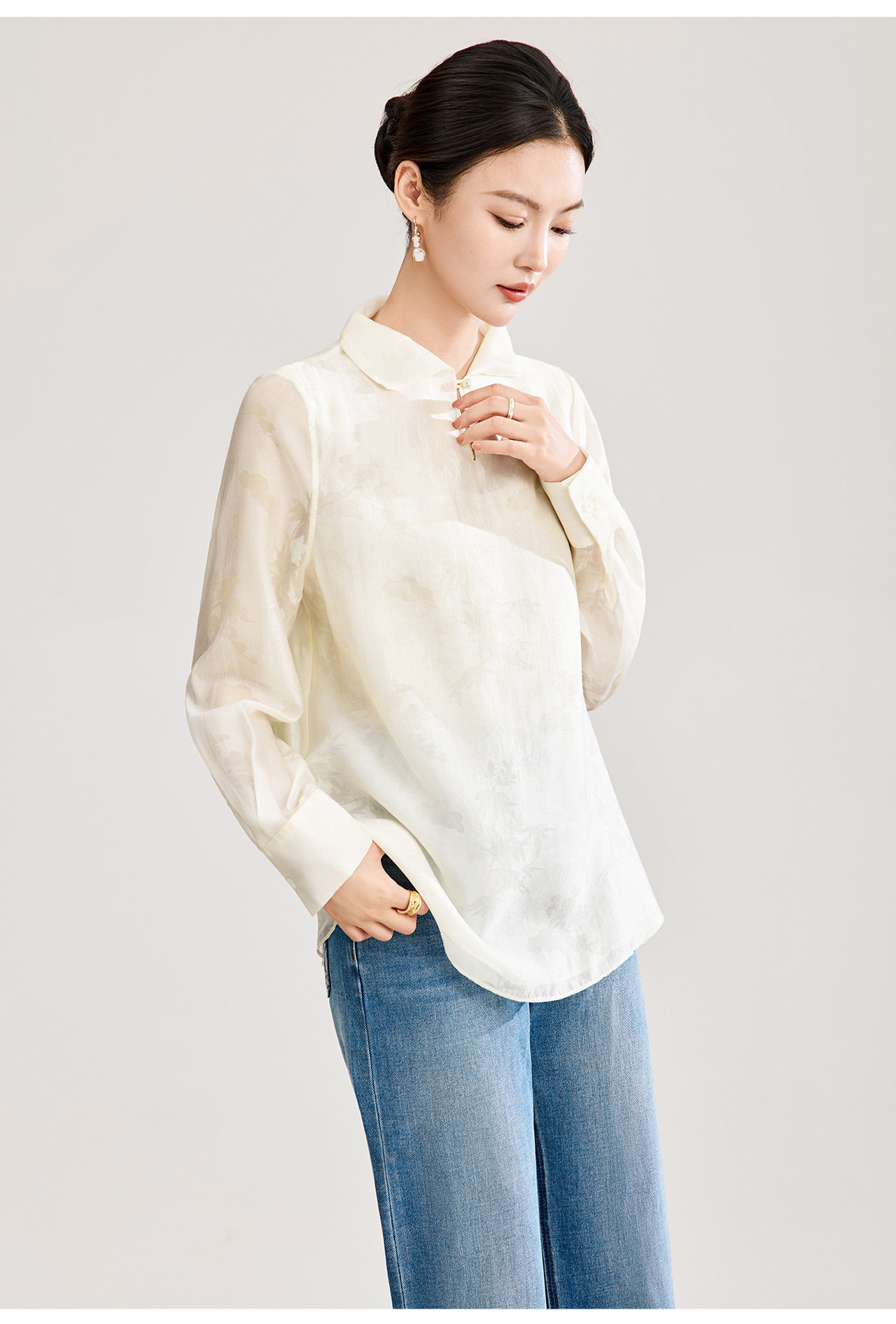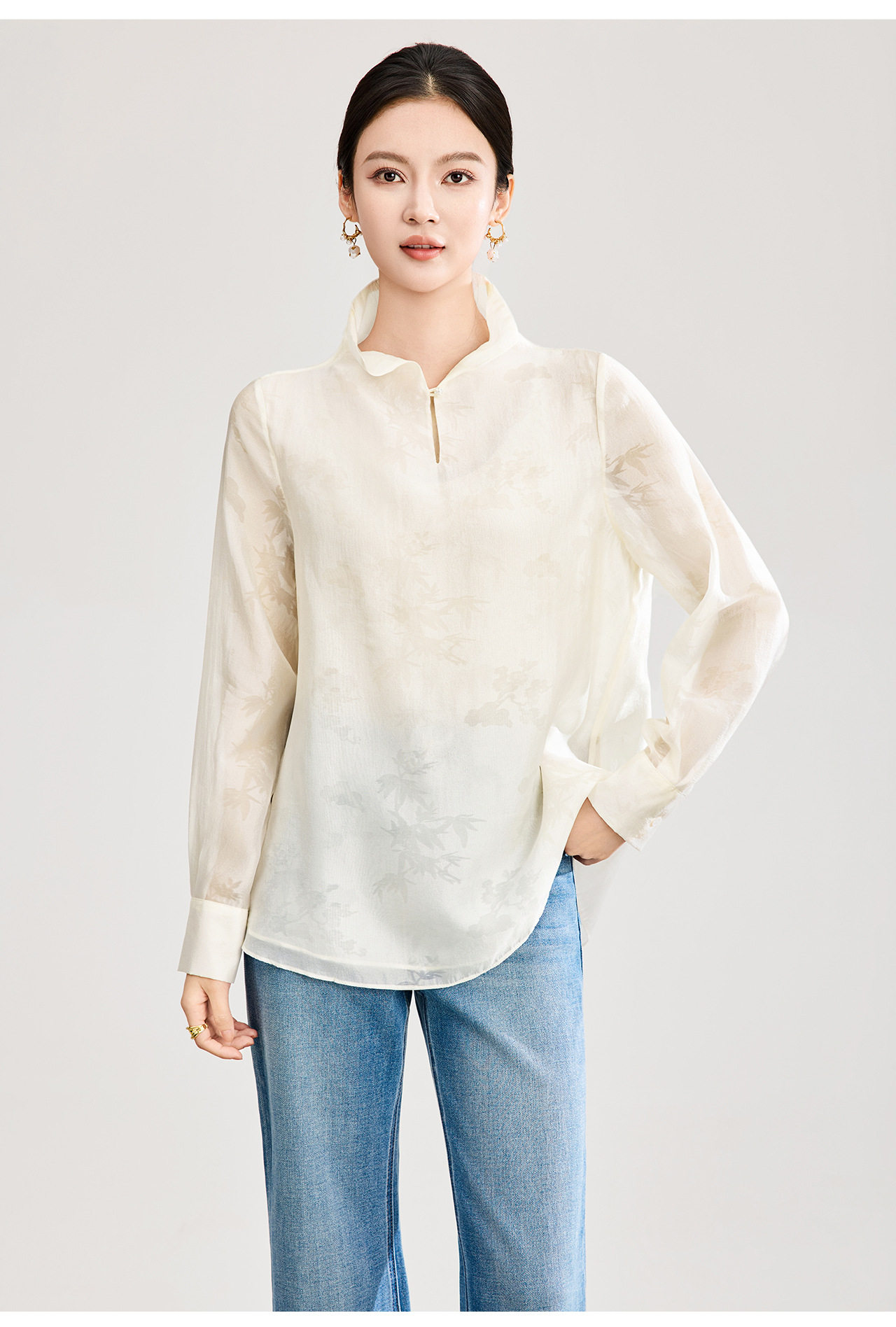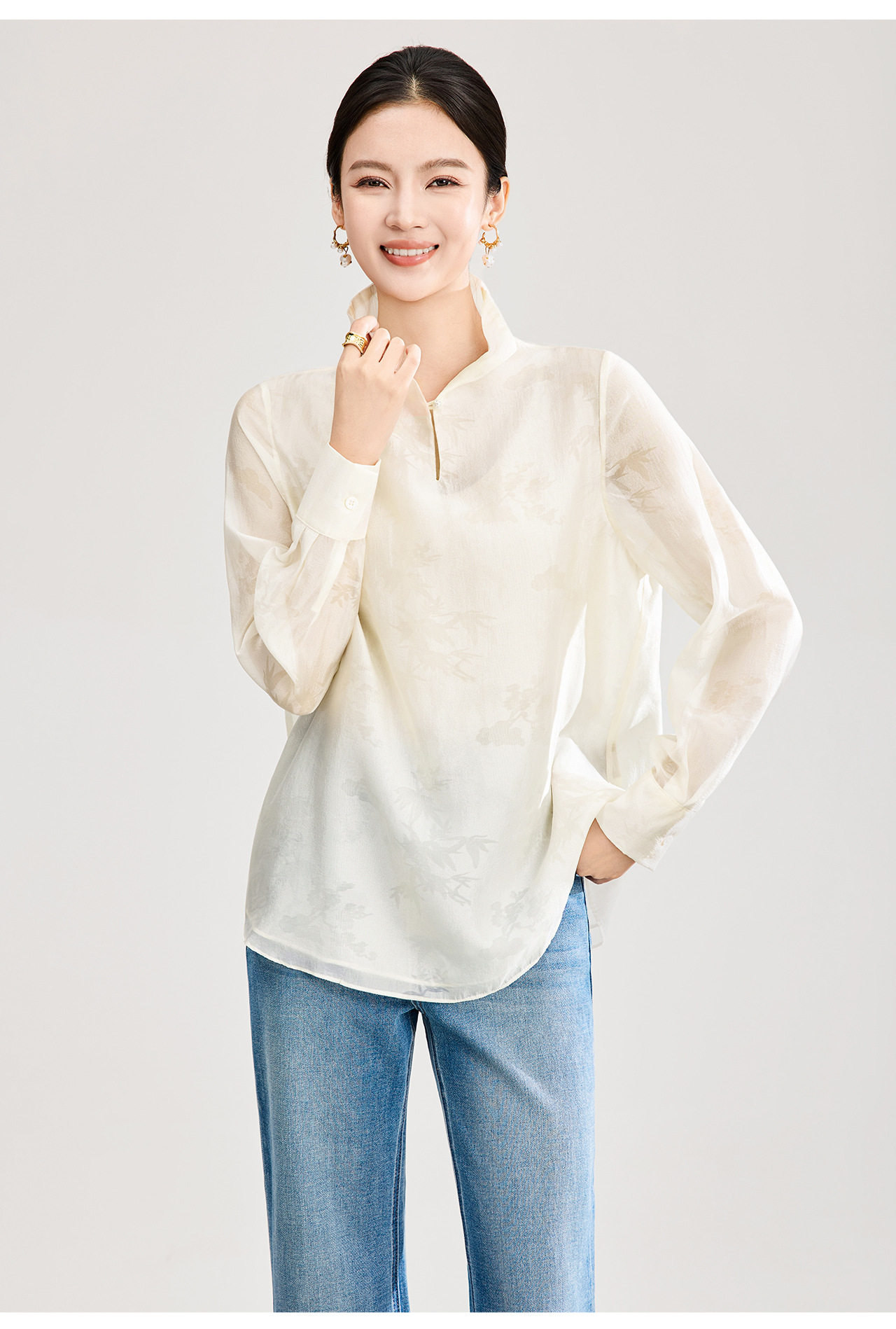 「高货wl」全新升级【铂金会员257/天猫339/差价82】(00913)洛诗琳新中式人丝提花上衣2026春季新款立领国风衬衫女