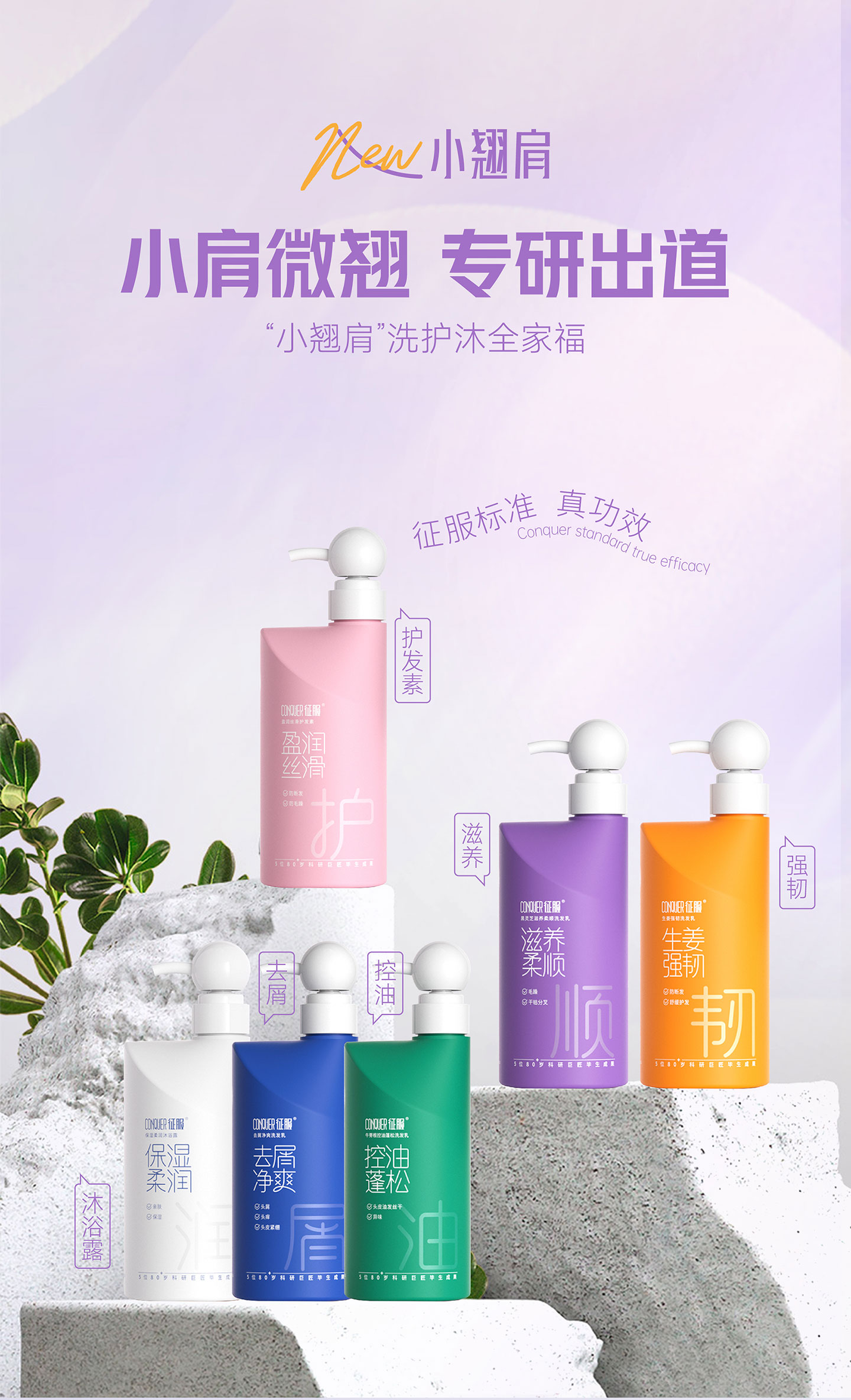 第3代新升级!2026新款 征服青蒿止痒洗发水小翘肩系列,生姜强韧、去屑净爽、控油蓬松、滋养柔顺系列洗发乳