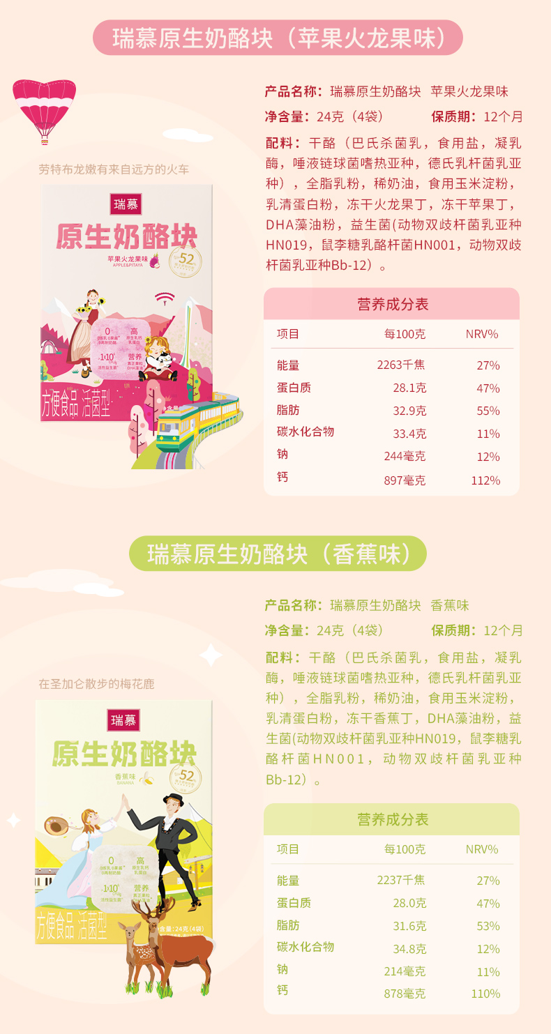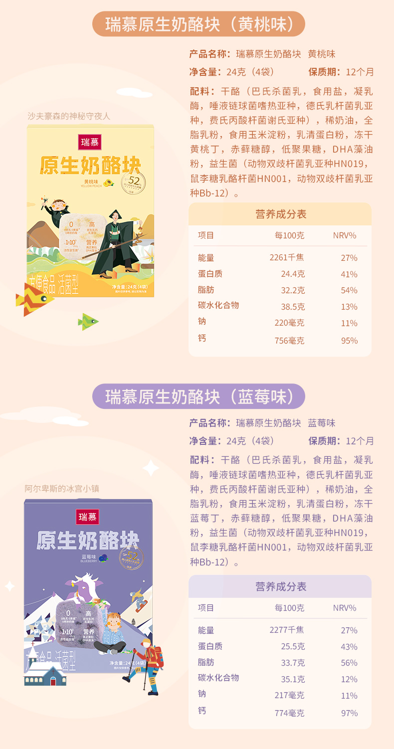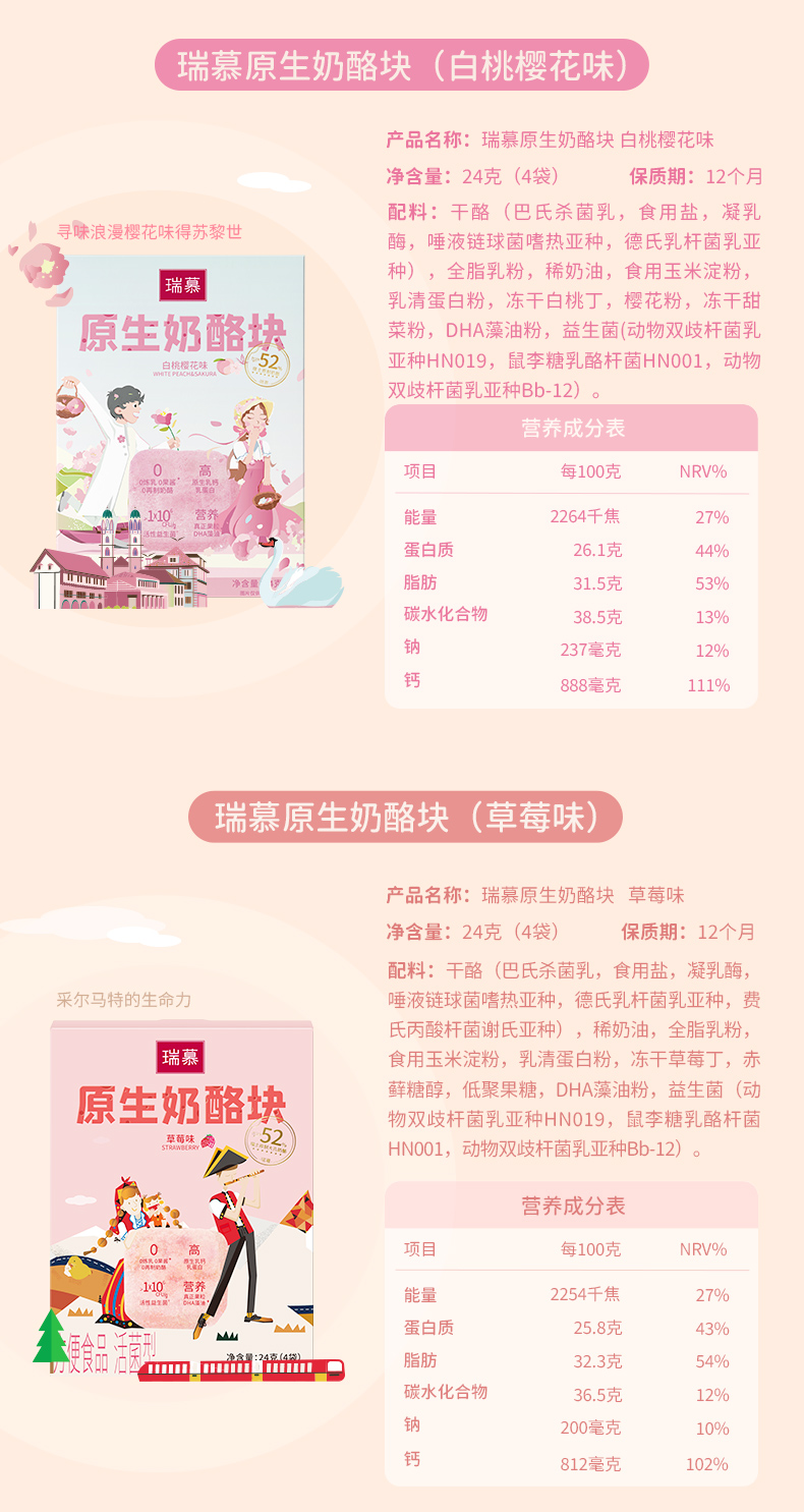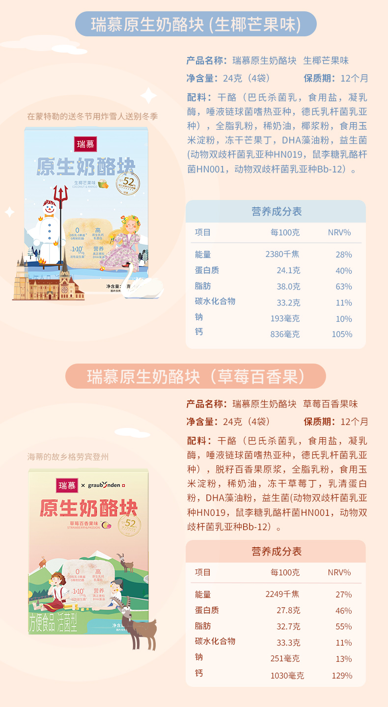 瑞慕原生奶酪块儿童零食芝士块常温奶酪独立包装24g