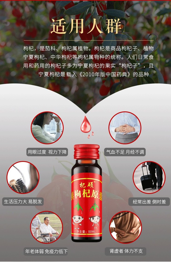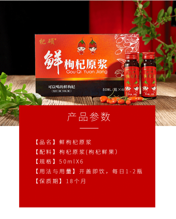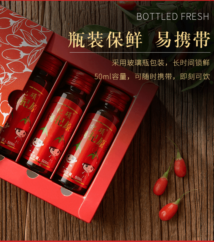 杞硕 枸杞原浆头茬鲜枸杞汁宁夏枸杞子鲜果枸杞原液便携开盖即食 鲜枸杞原浆1盒(1盒共50ml*6瓶)