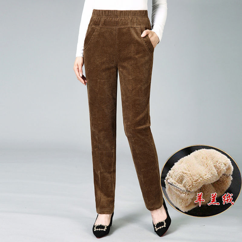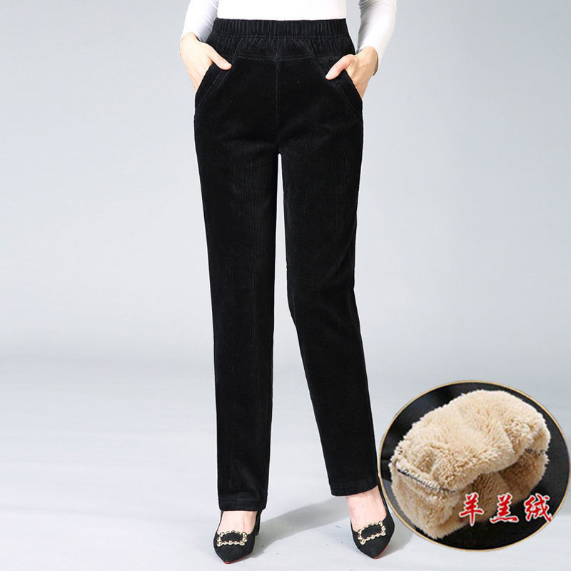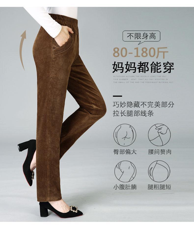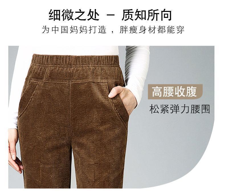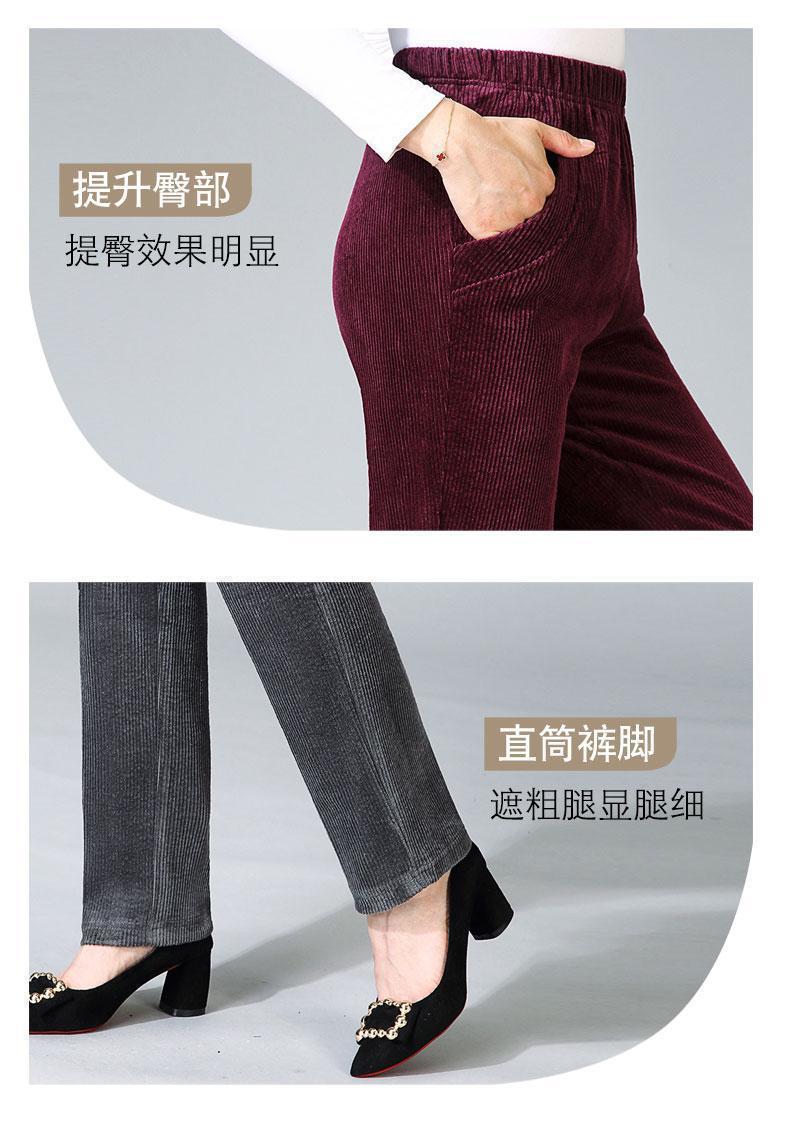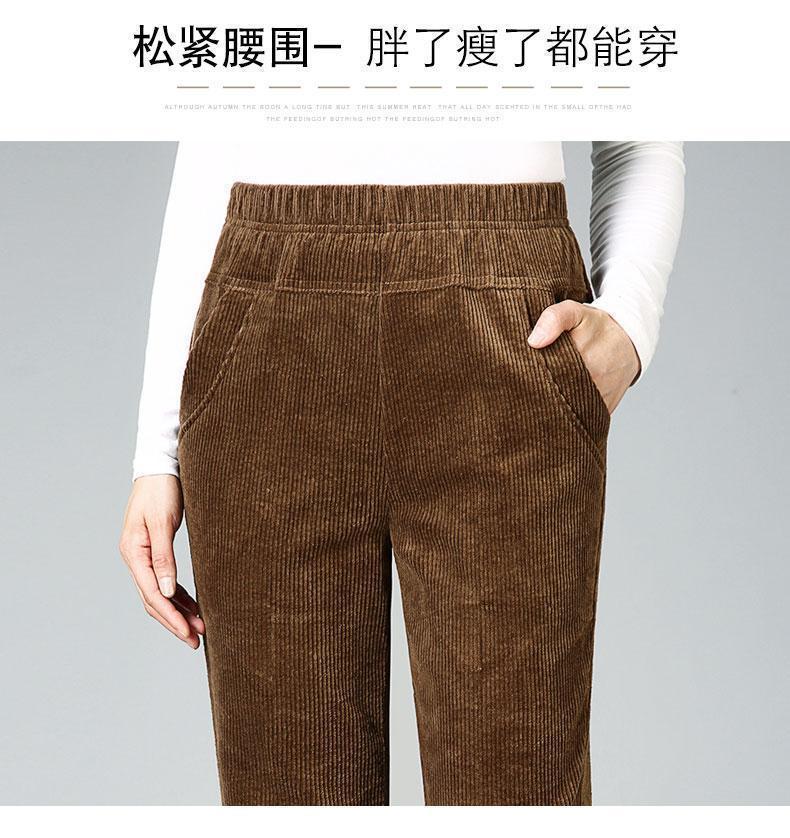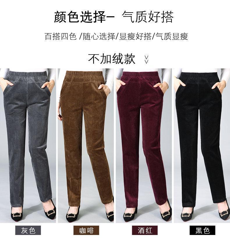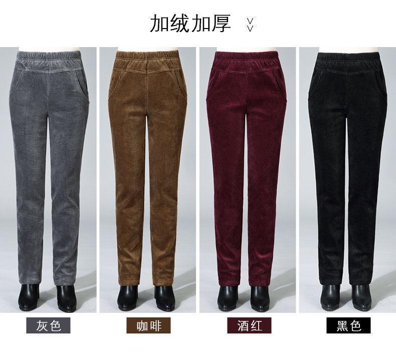 TZW-加绒加厚秋冬季灯芯绒裤子女妈妈装高腰中老年女裤条绒休闲直筒裤