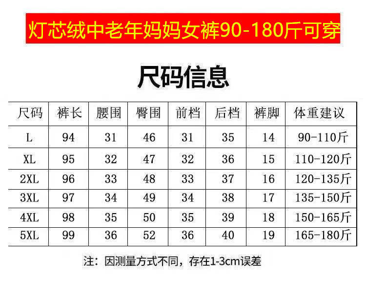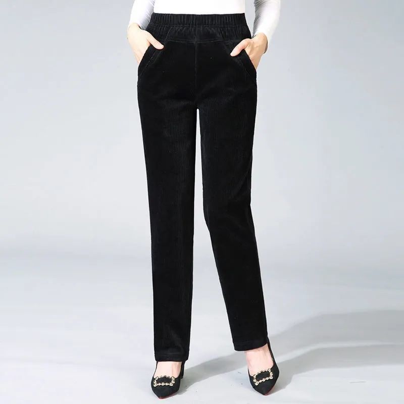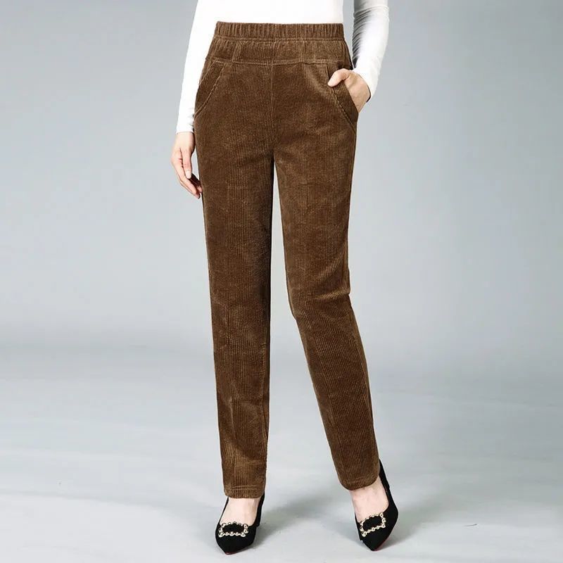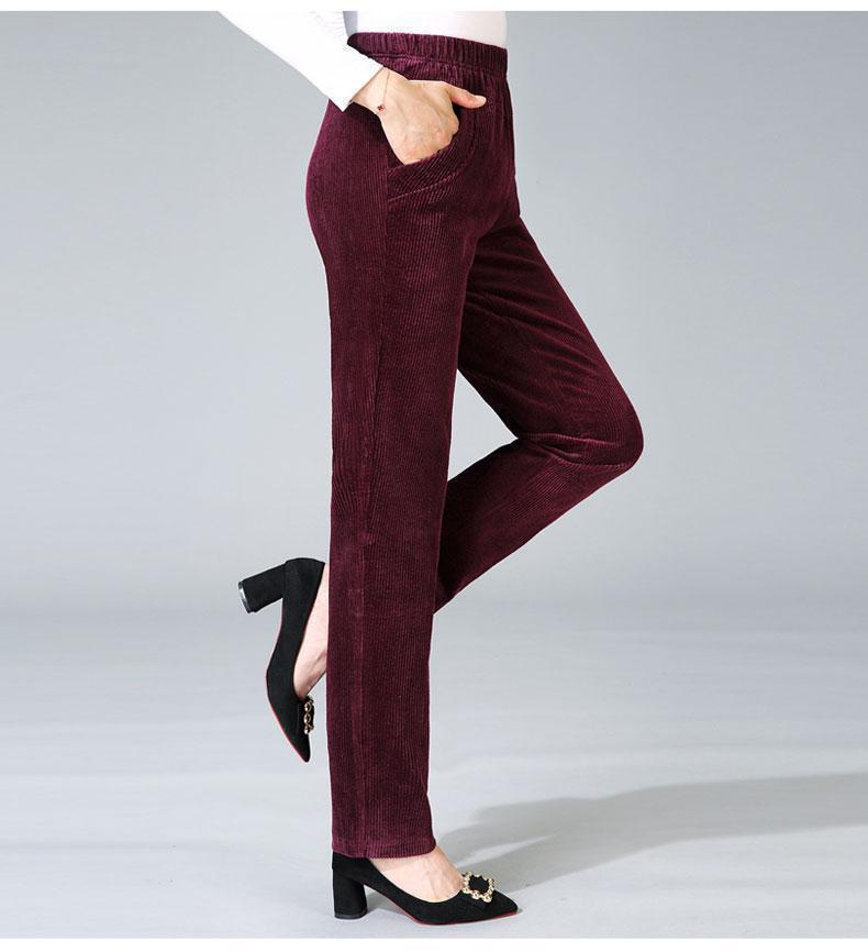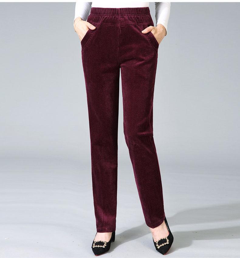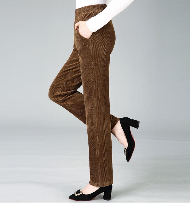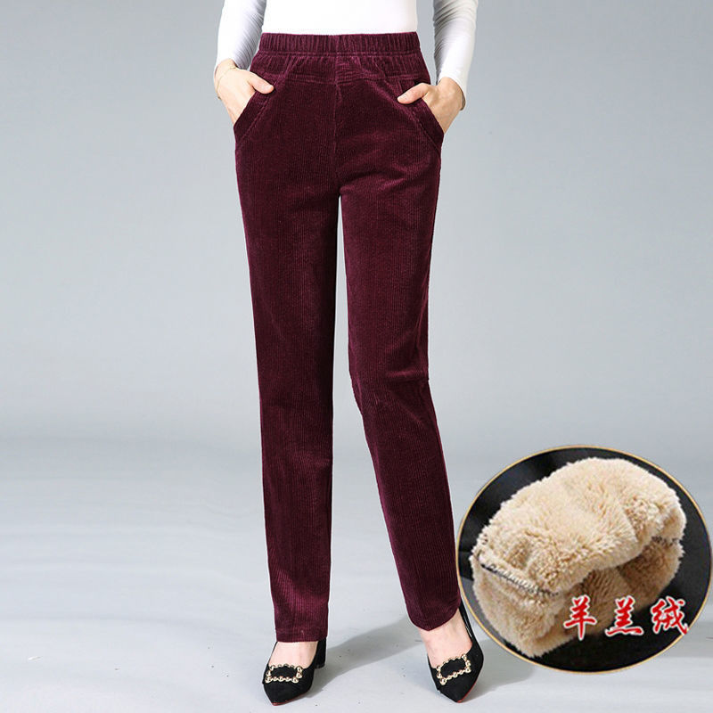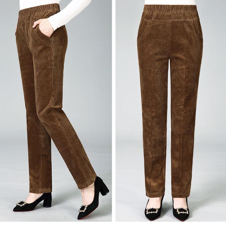 TZW-加绒加厚秋冬季灯芯绒裤子女妈妈装高腰中老年女裤条绒休闲直筒裤