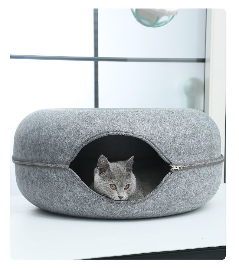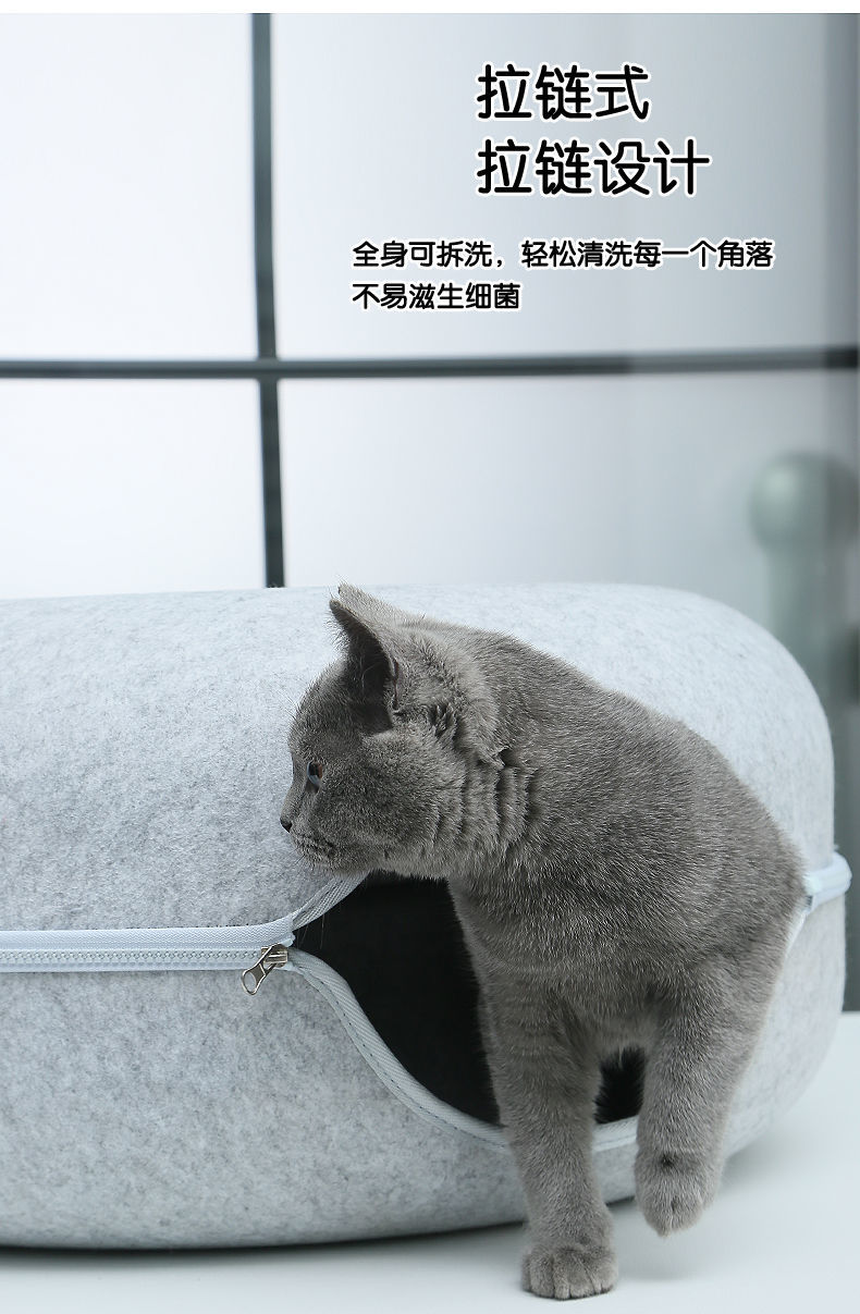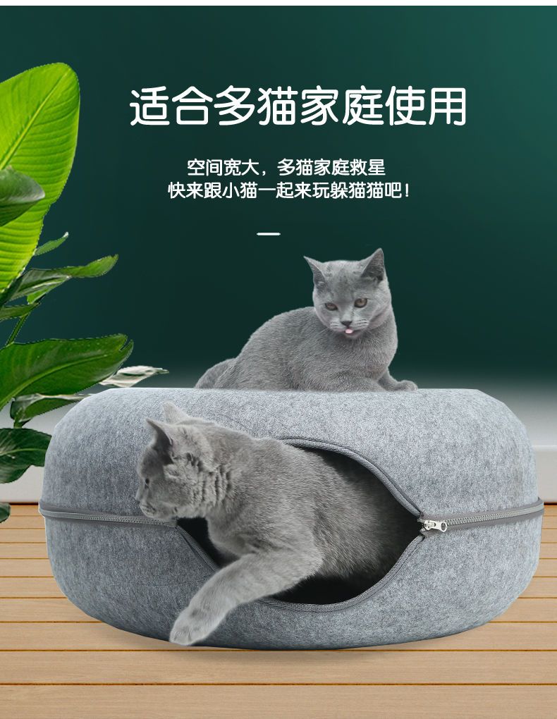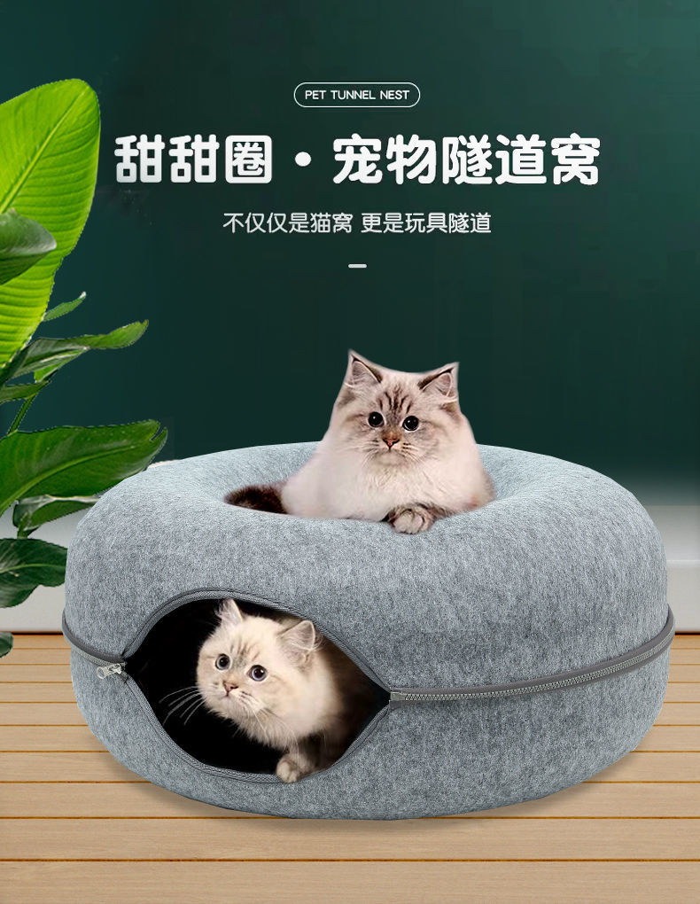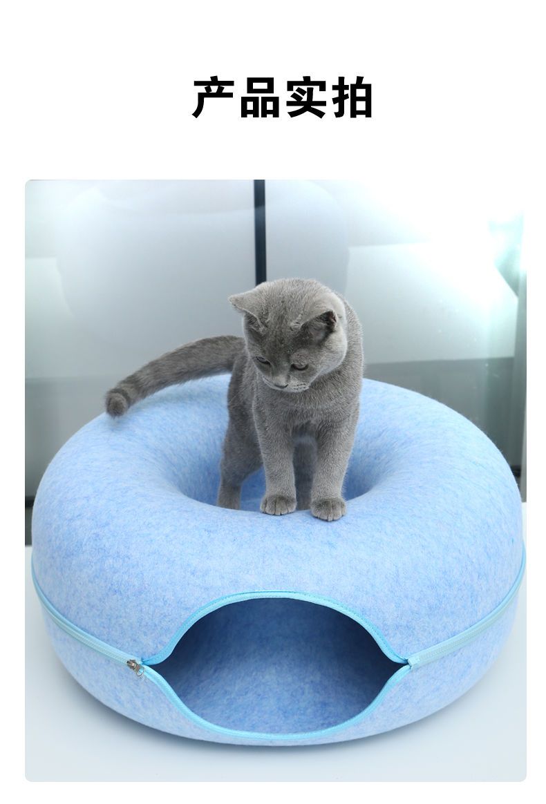 春艺甜甜圈隧道猫窝四季通用半封闭式钻洞猫可拆洗冬季保暖幼猫咪用品-W仓