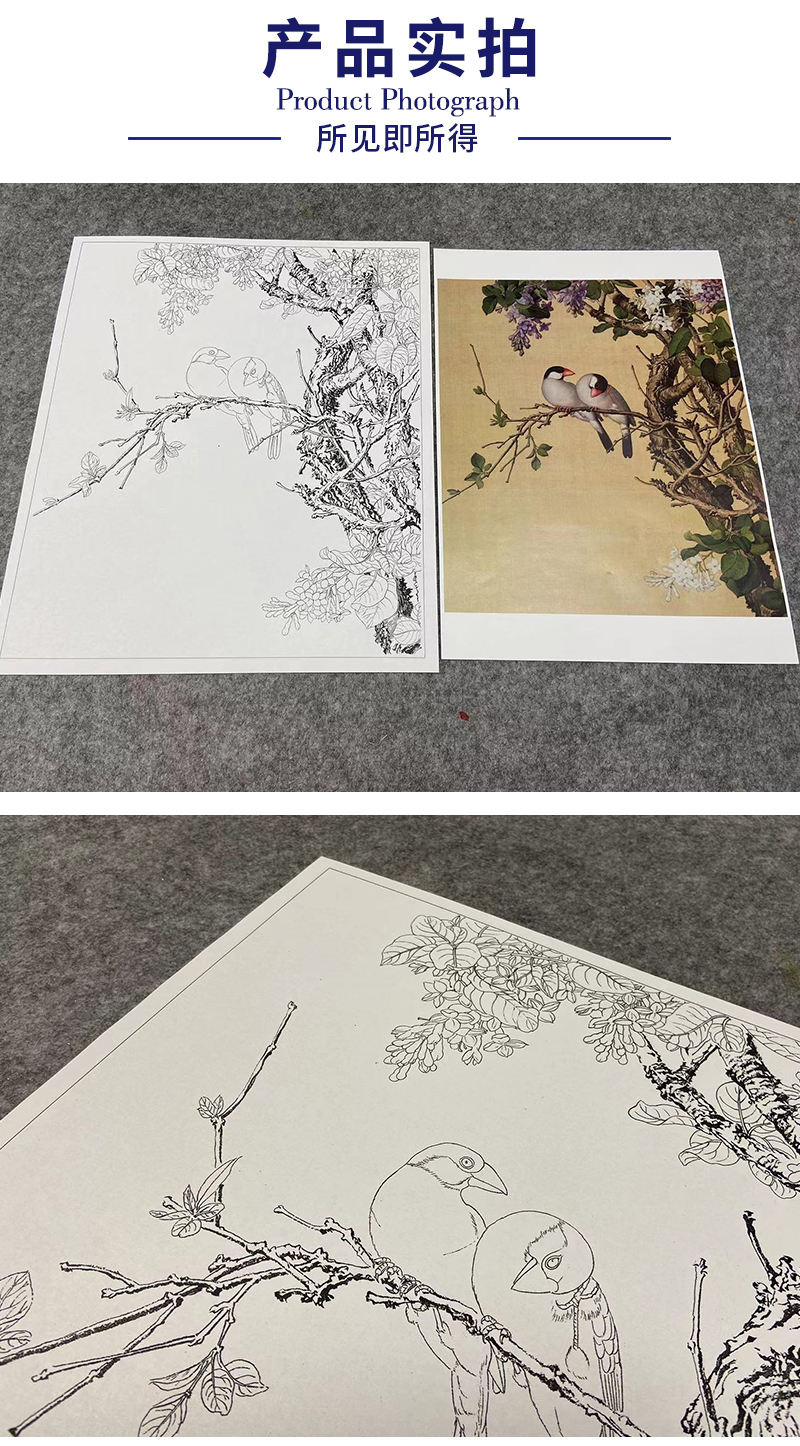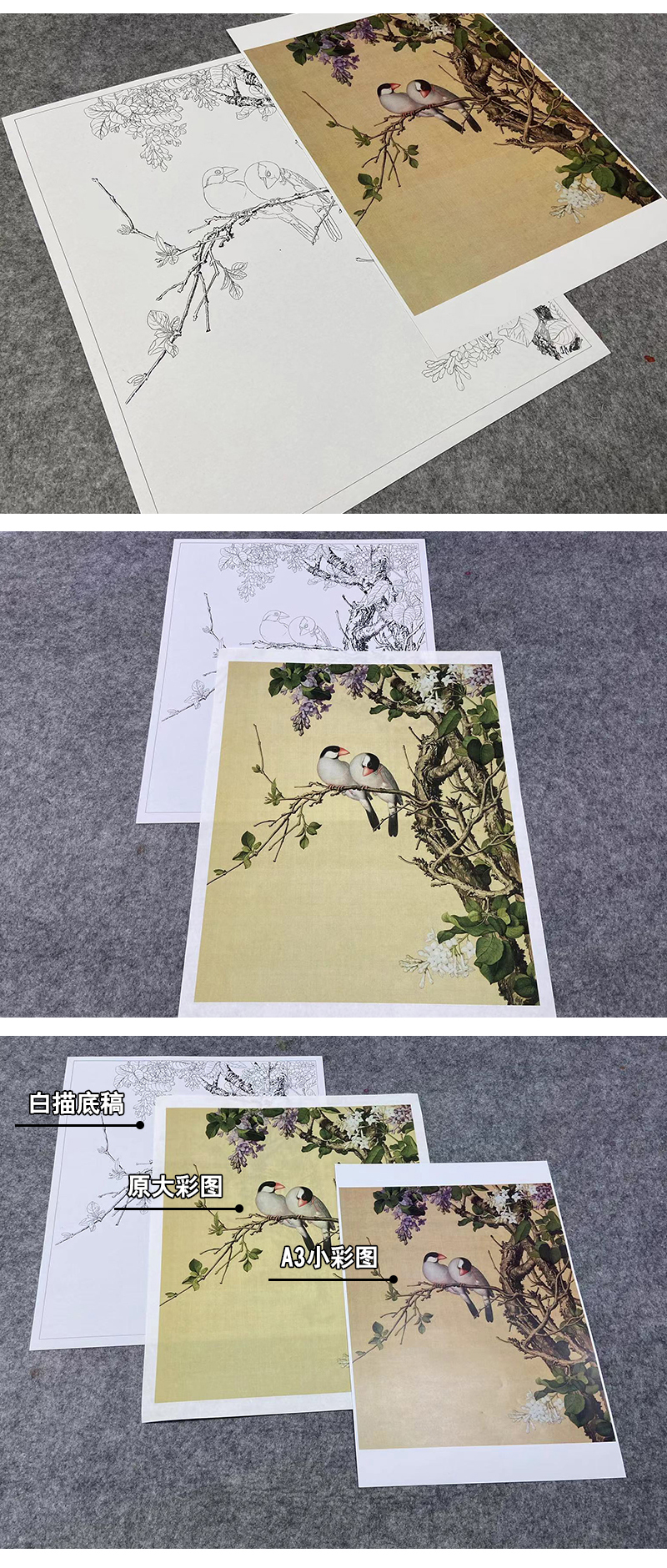【大彩图】郎世宁工笔画白描底稿小品《仙萼长春册》紫白丁香临摹勾线高清打印稿LT10