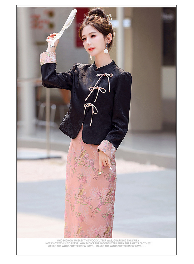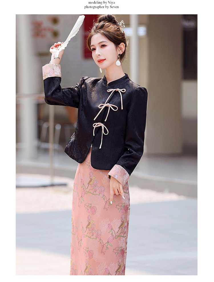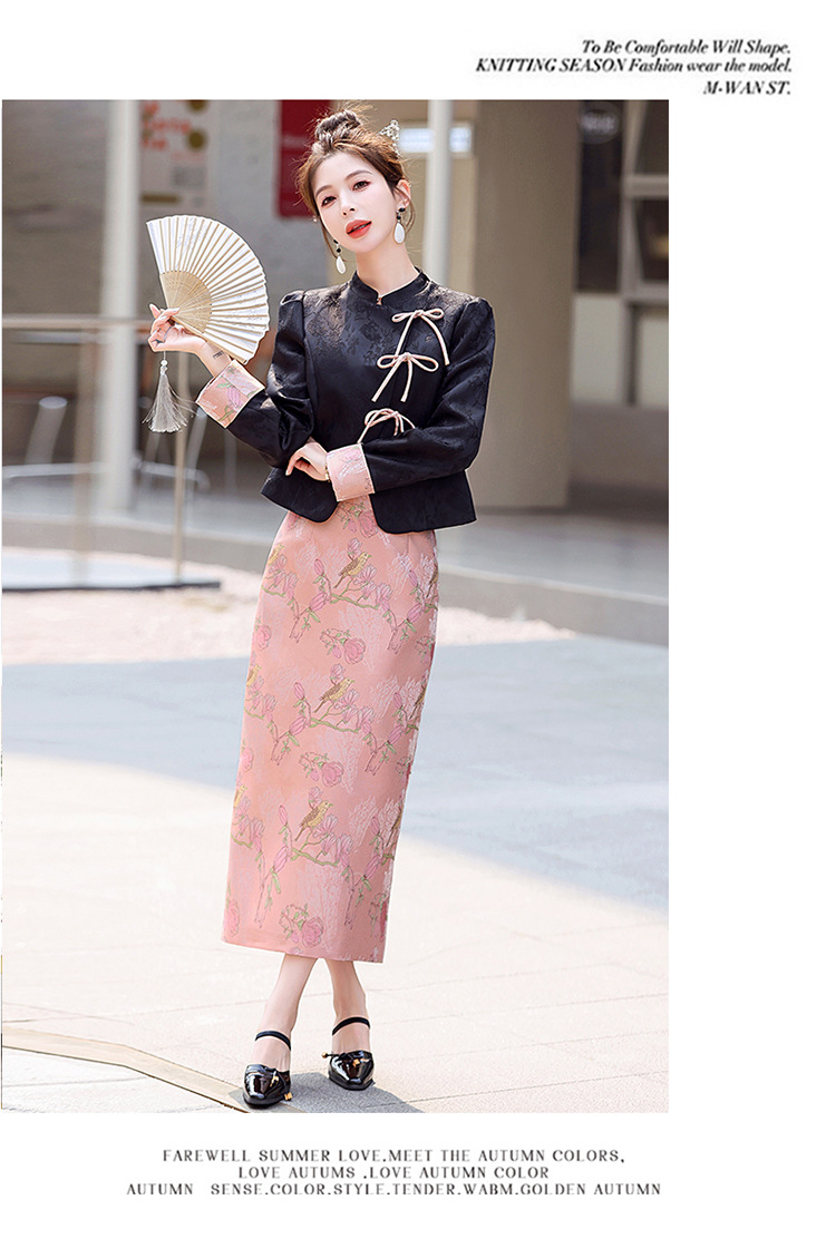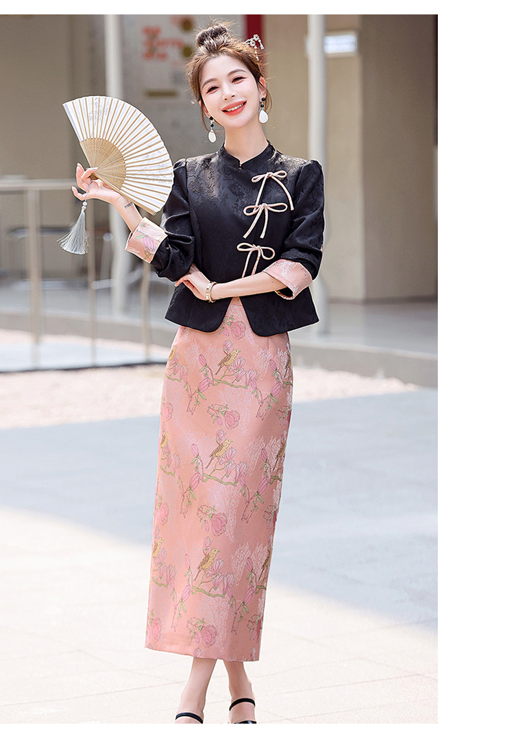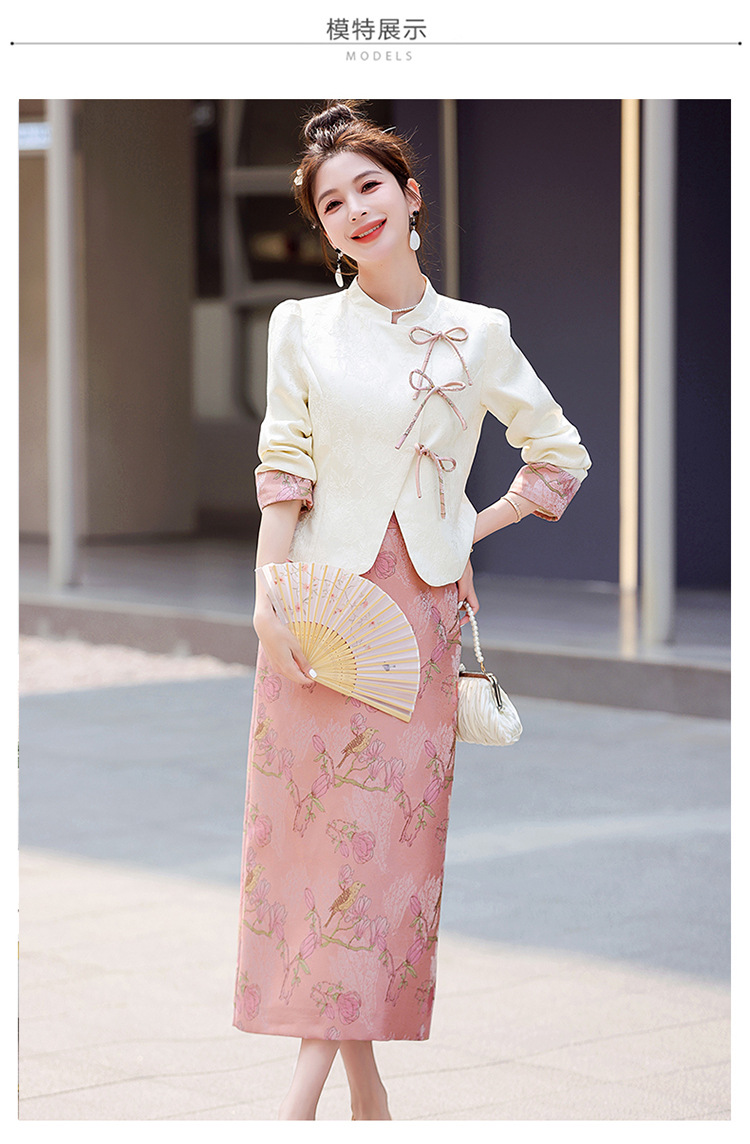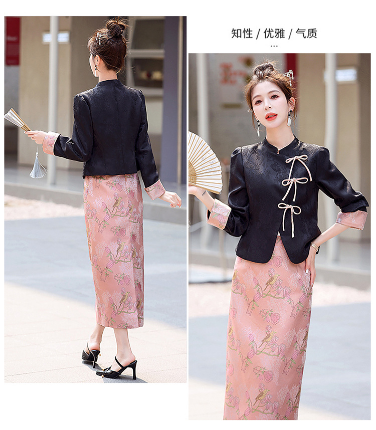 HR MEIQIN6025新中式优雅气质提花套装复古国风盘扣上衣半身裙两件套 商品图5