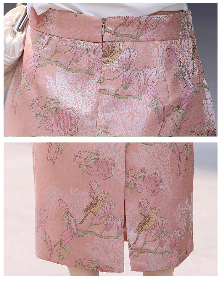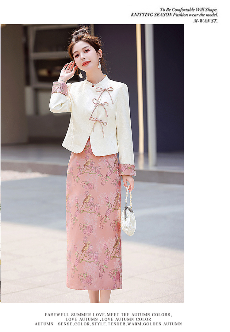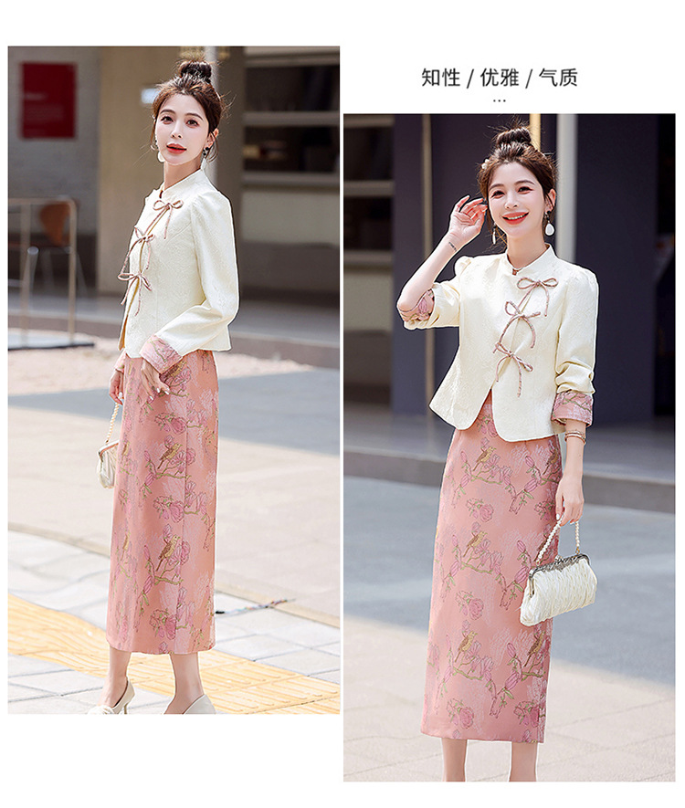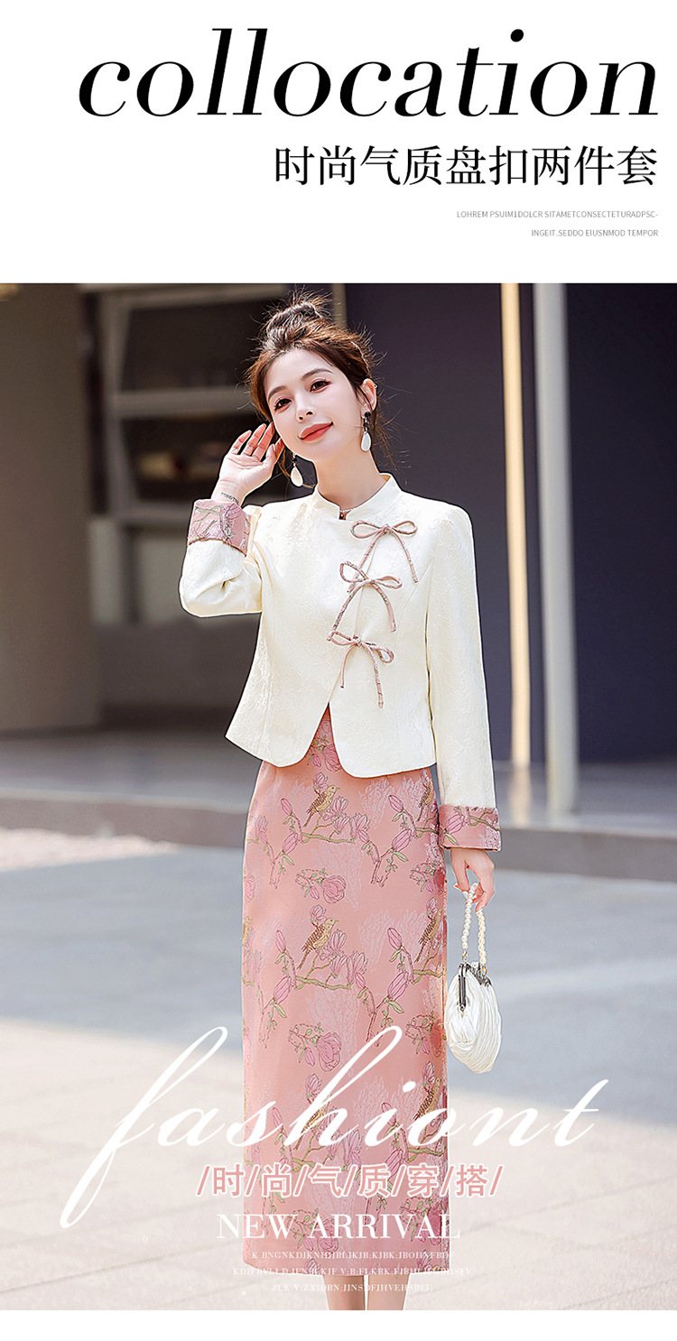 HR MEIQIN6025新中式优雅气质提花套装复古国风盘扣上衣半身裙两件套 商品图1