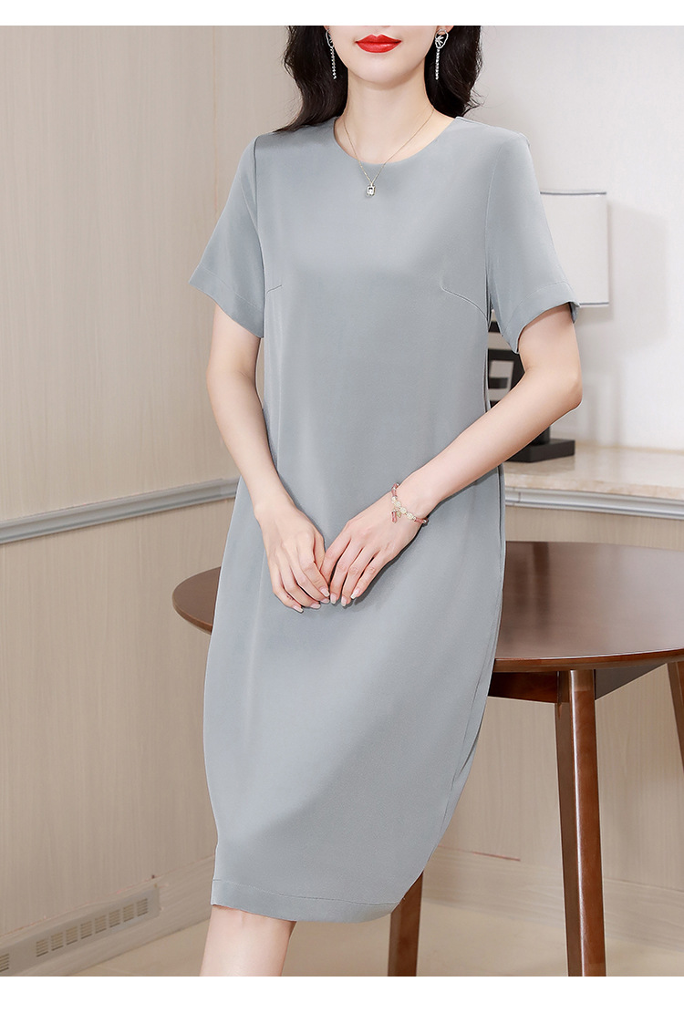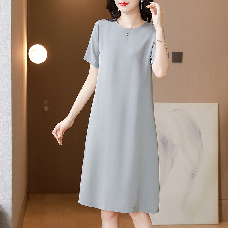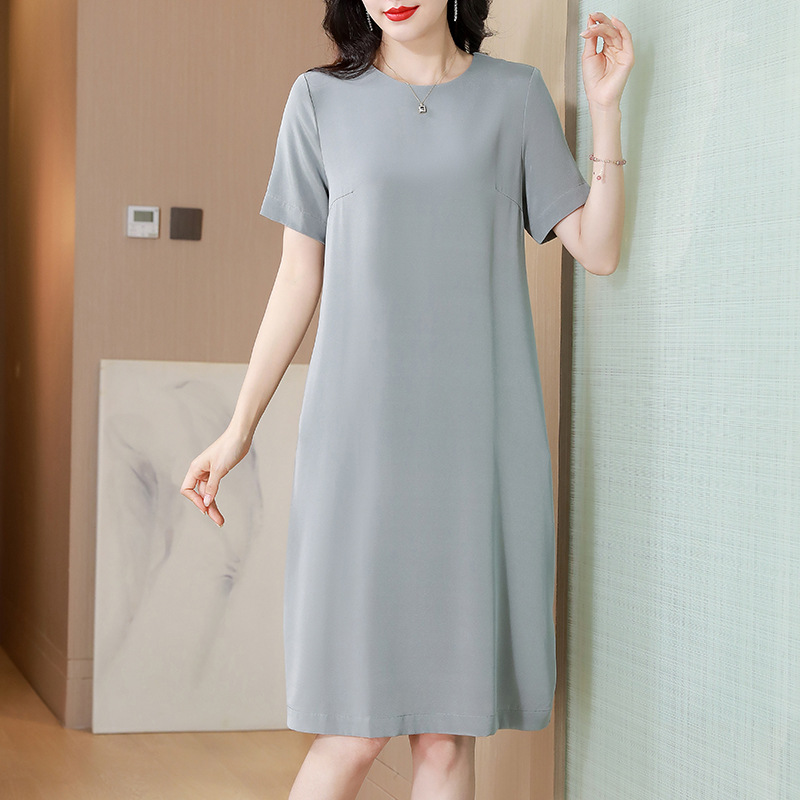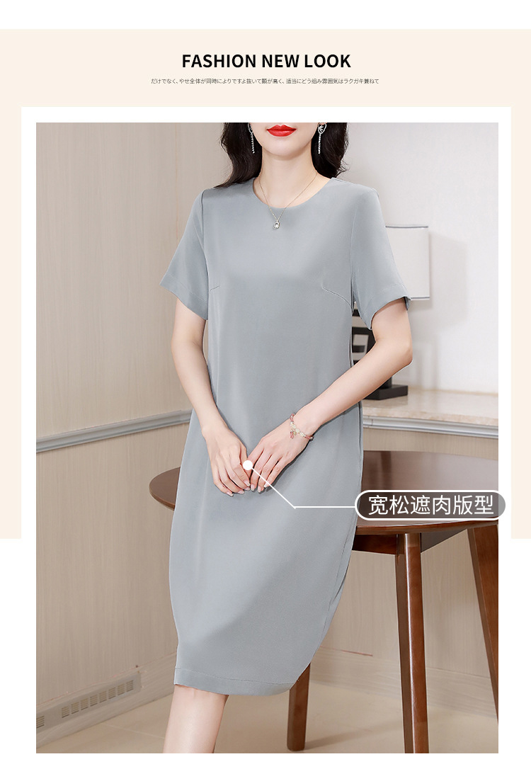 AHM xyz3331纯色圆领法式气质连衣裙时尚宽松显瘦裙 商品图1
