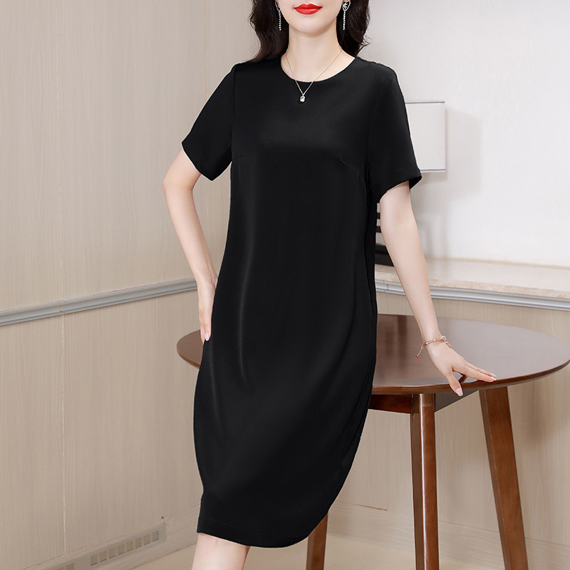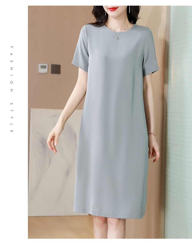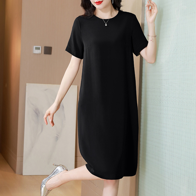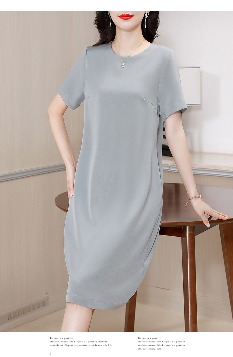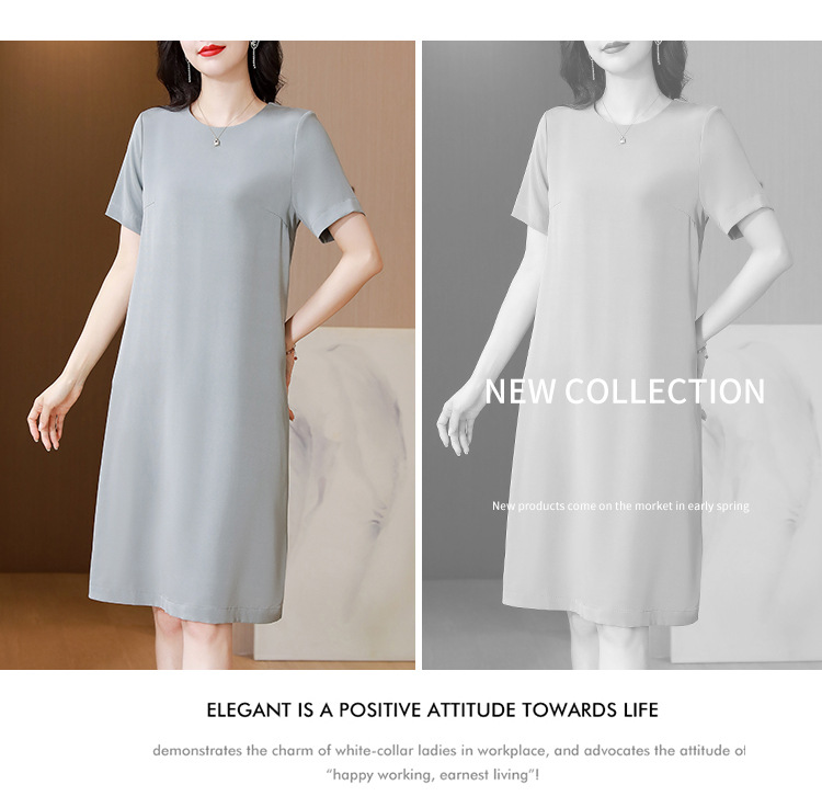 AHM xyz3331纯色圆领法式气质连衣裙时尚宽松显瘦裙 商品图1