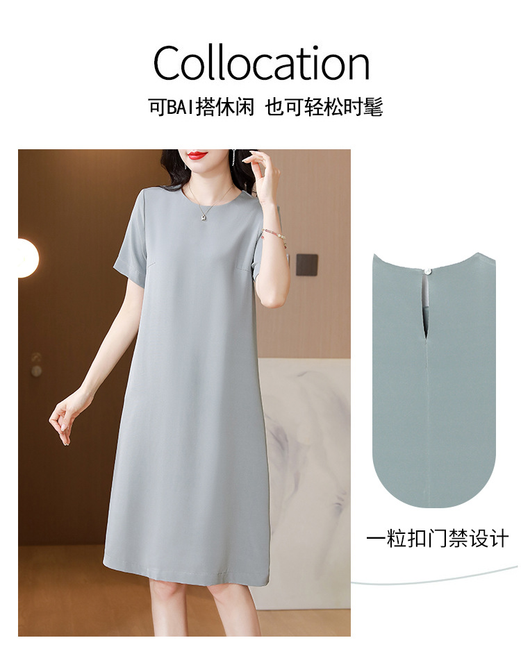 AHM xyz3331纯色圆领法式气质连衣裙时尚宽松显瘦裙 商品图2