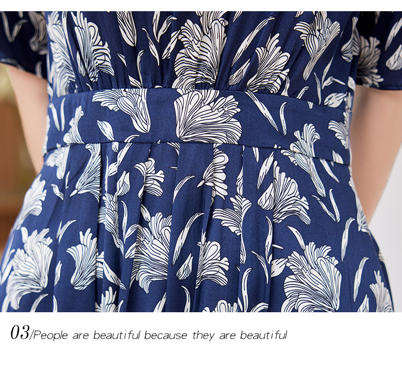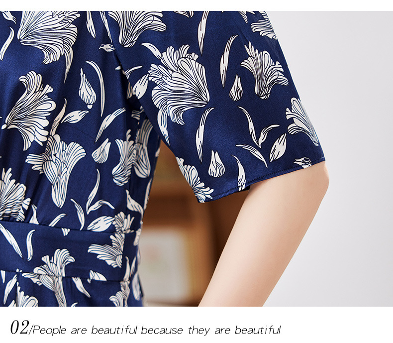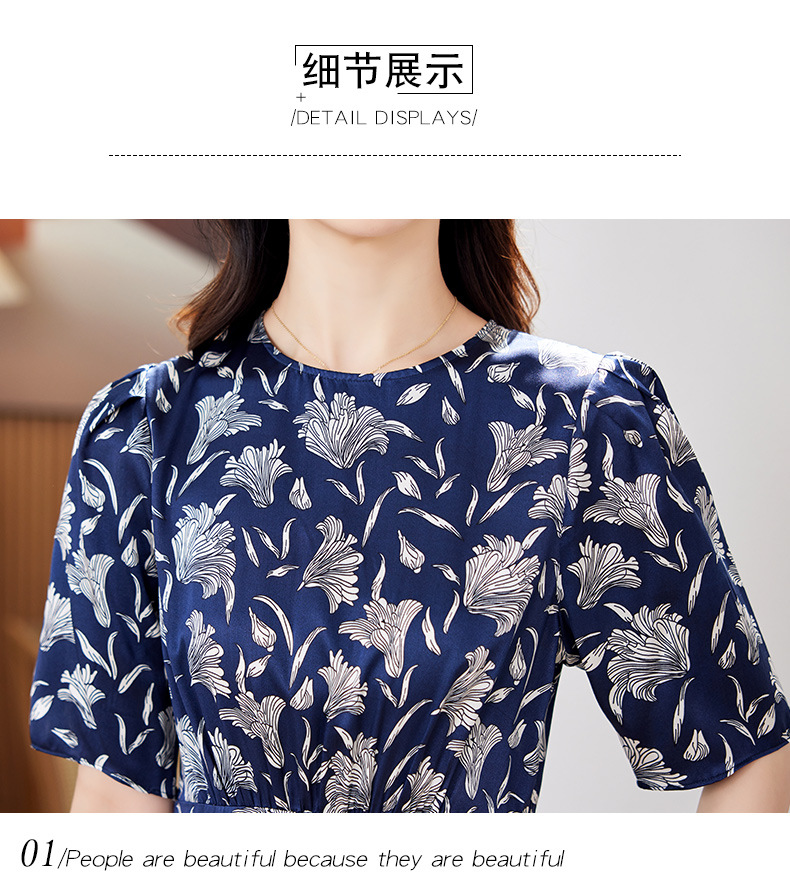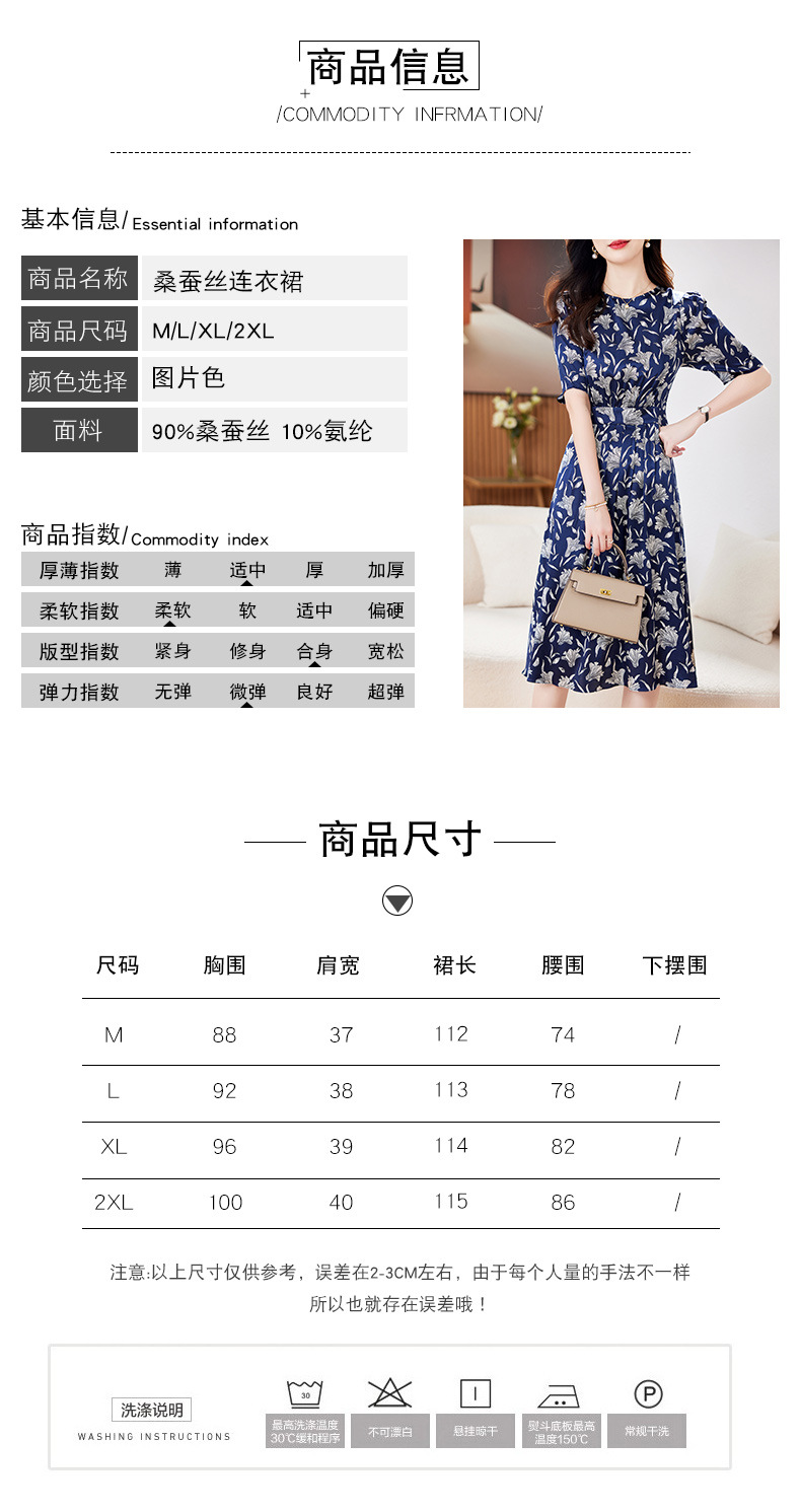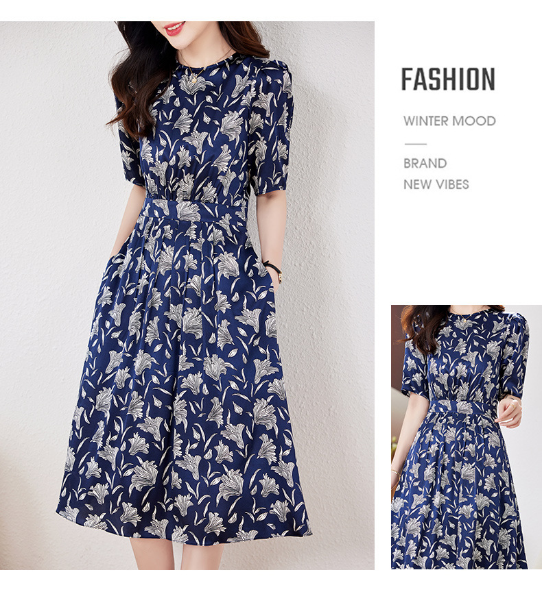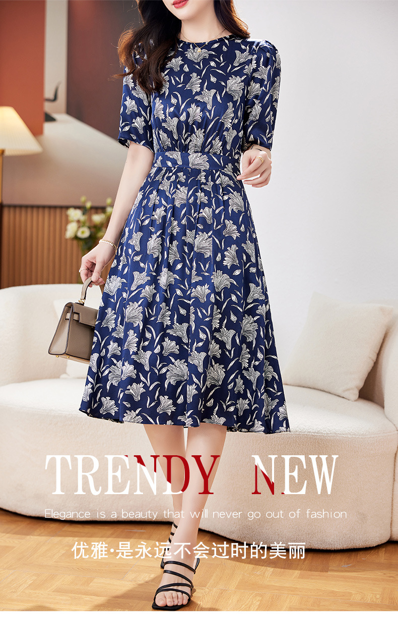 HR LQSM6228优雅气质碎花收腰显瘦真丝连衣裙
