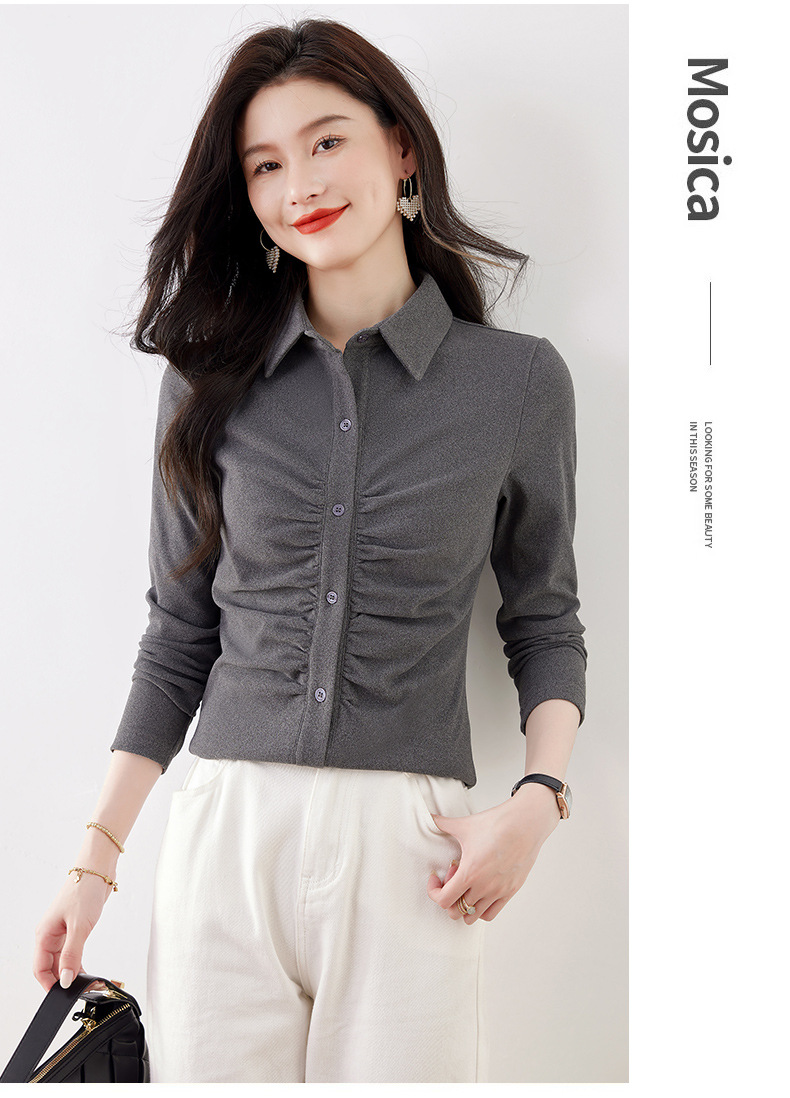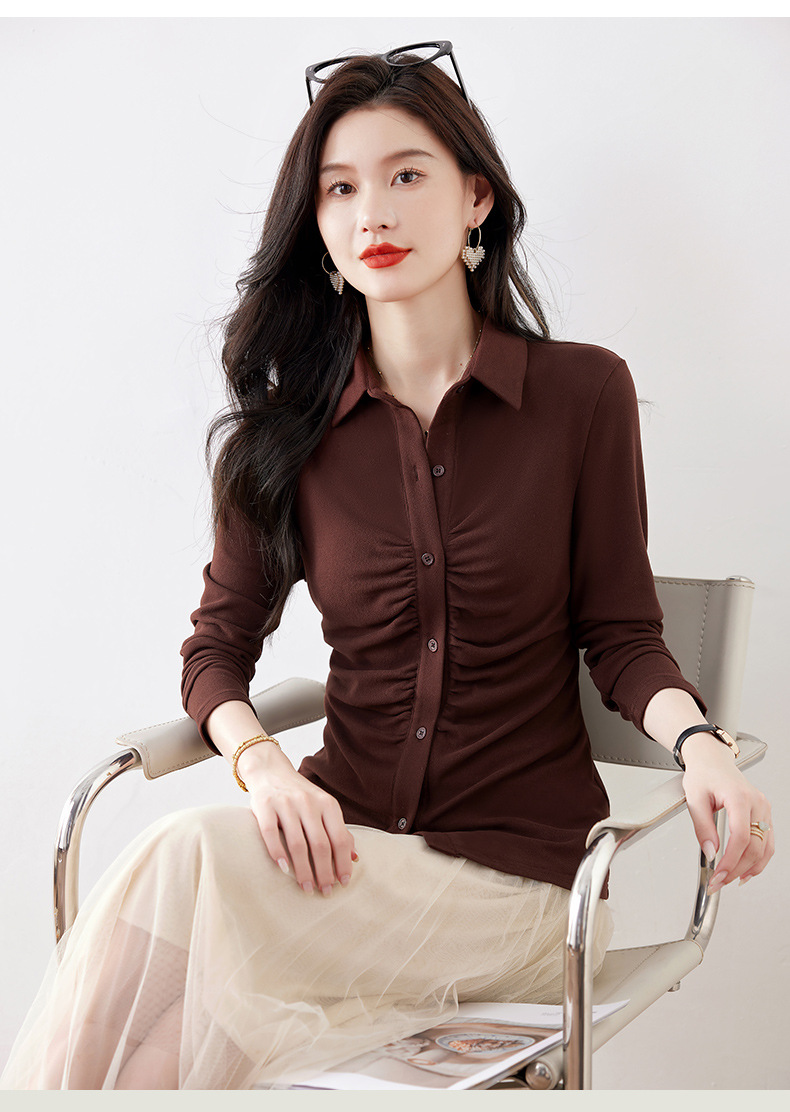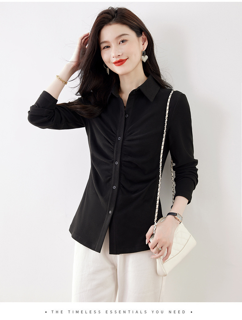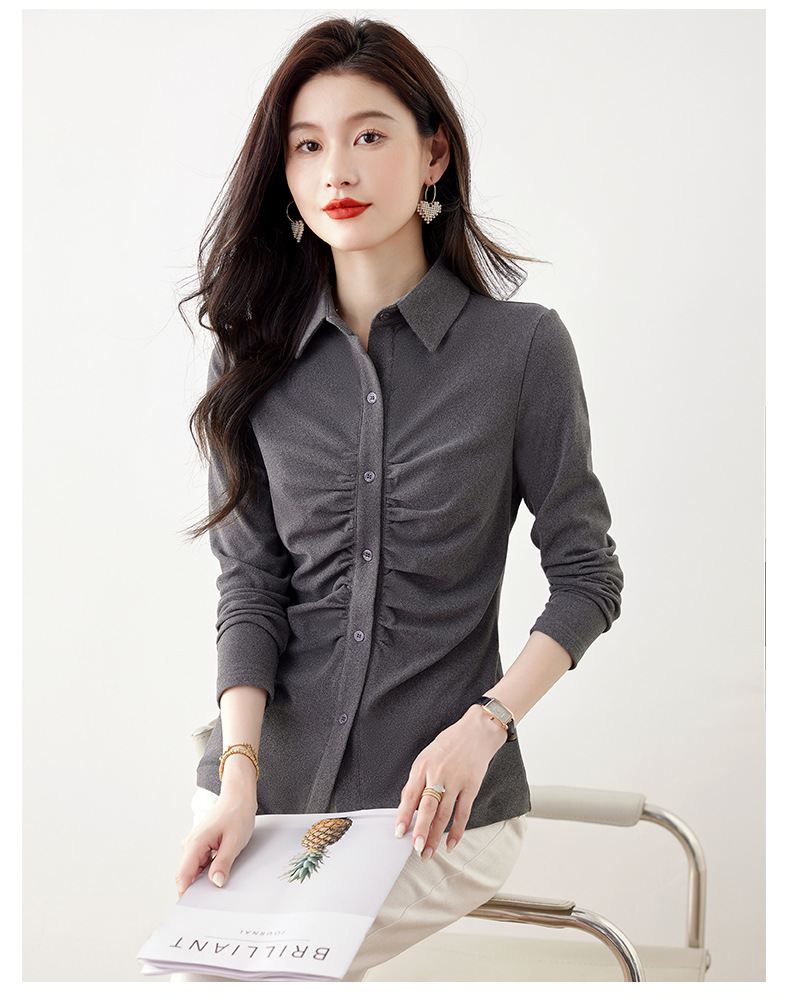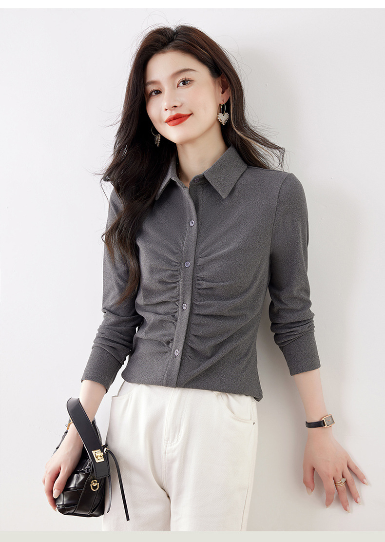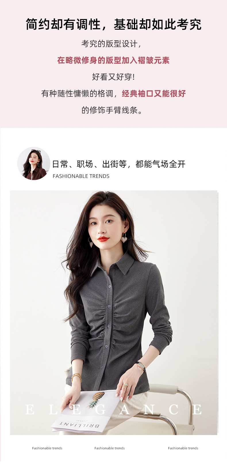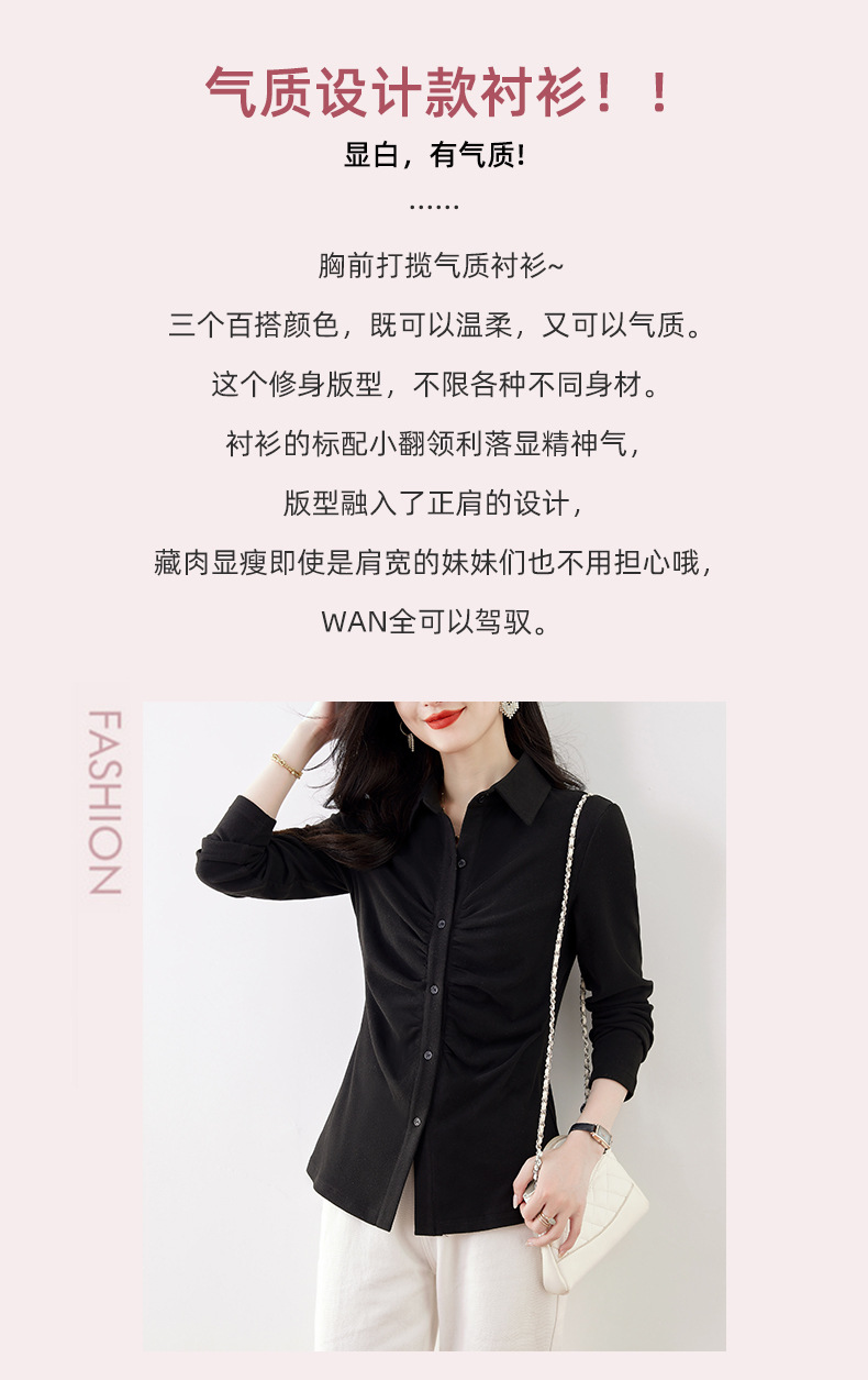 KQL 403H7929纯色衬衫收腰显瘦褶皱洋气气质小衫