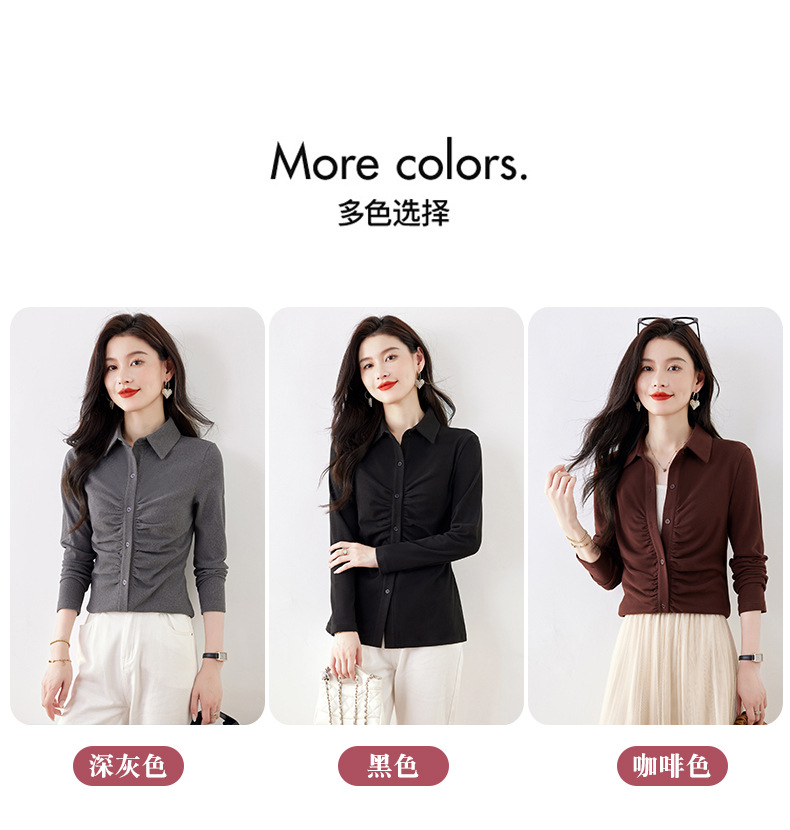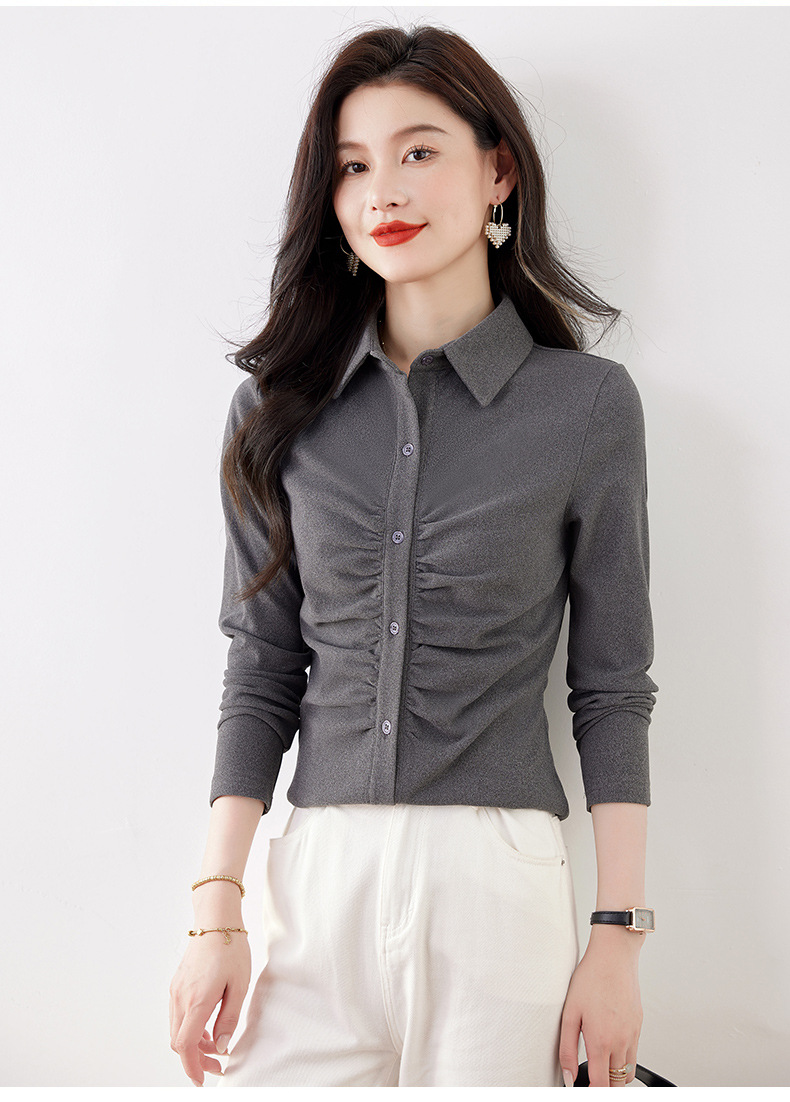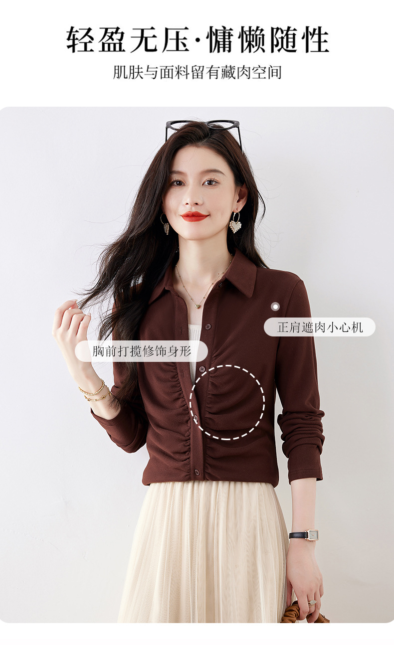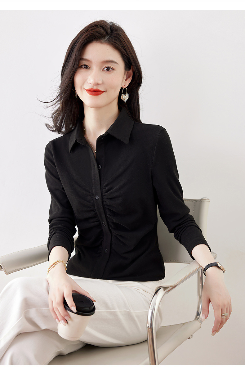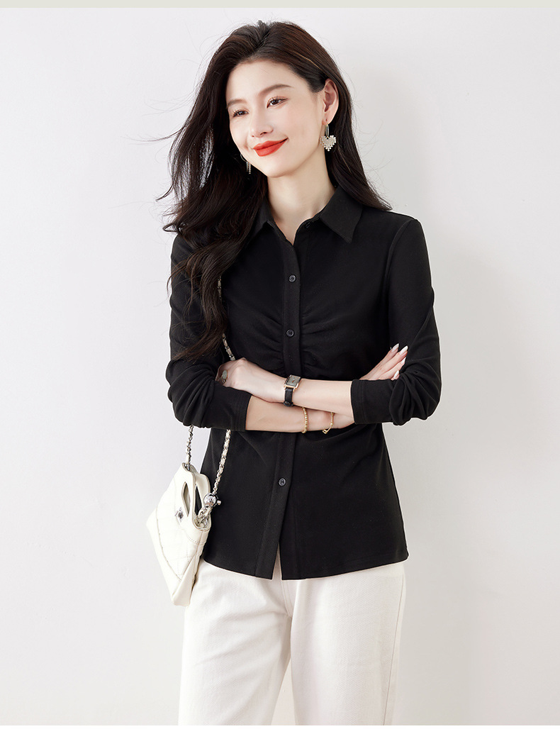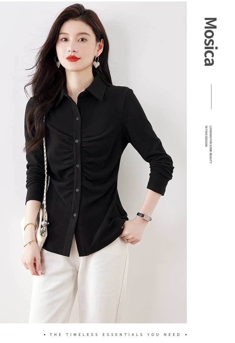 KQL 403H7929纯色衬衫收腰显瘦褶皱洋气气质小衫