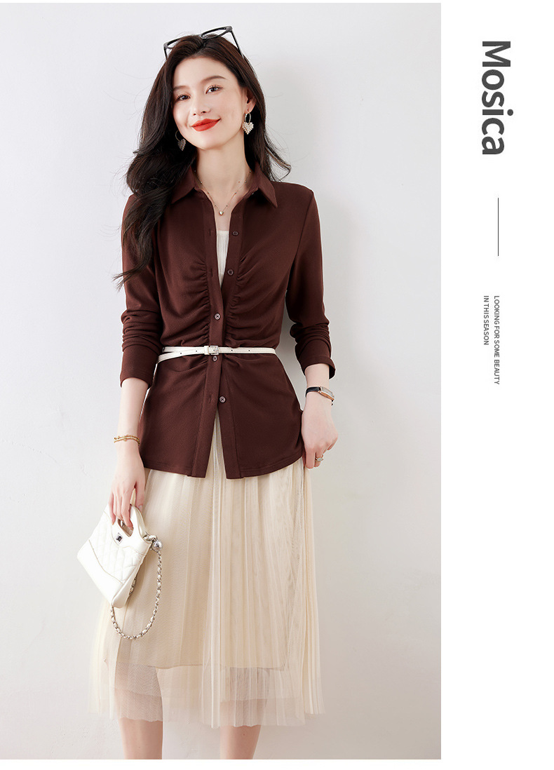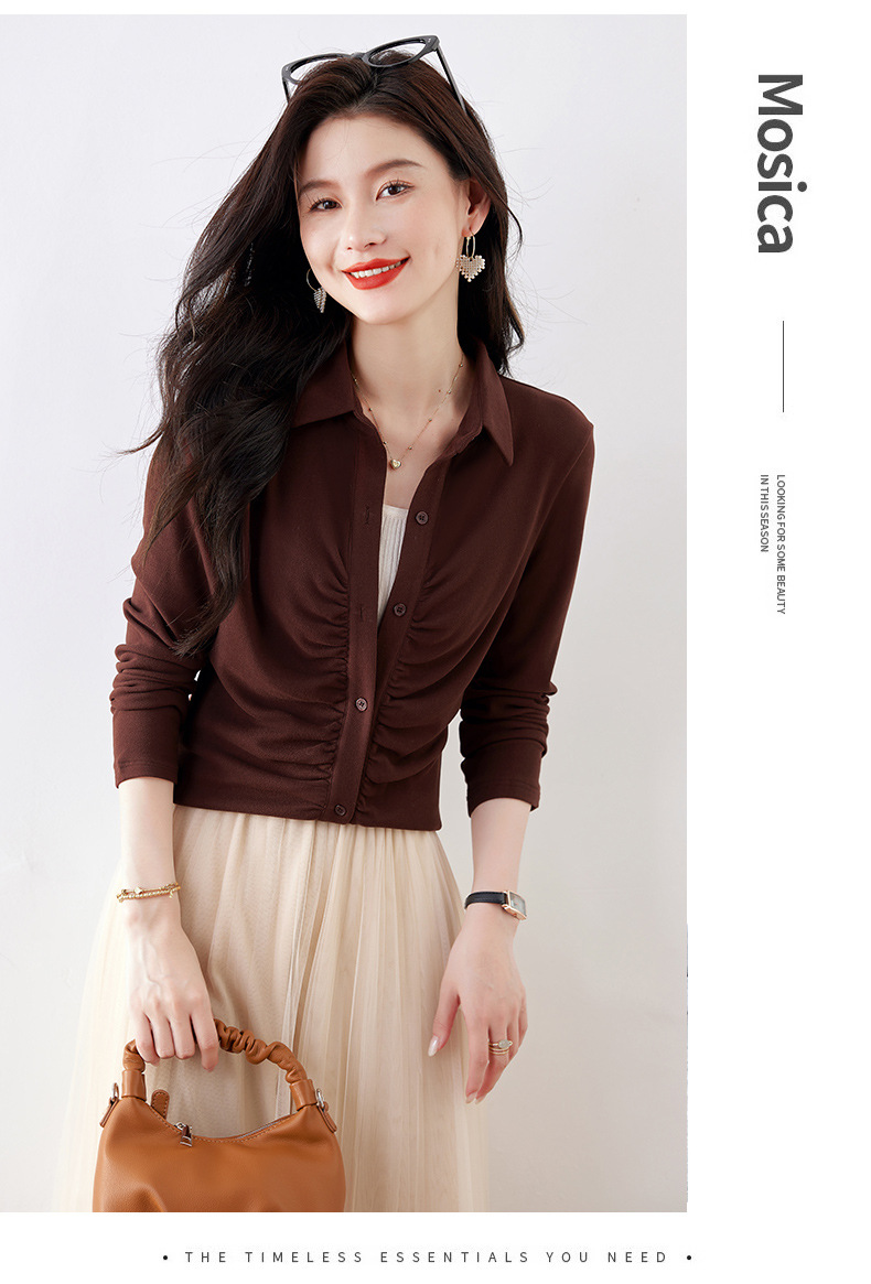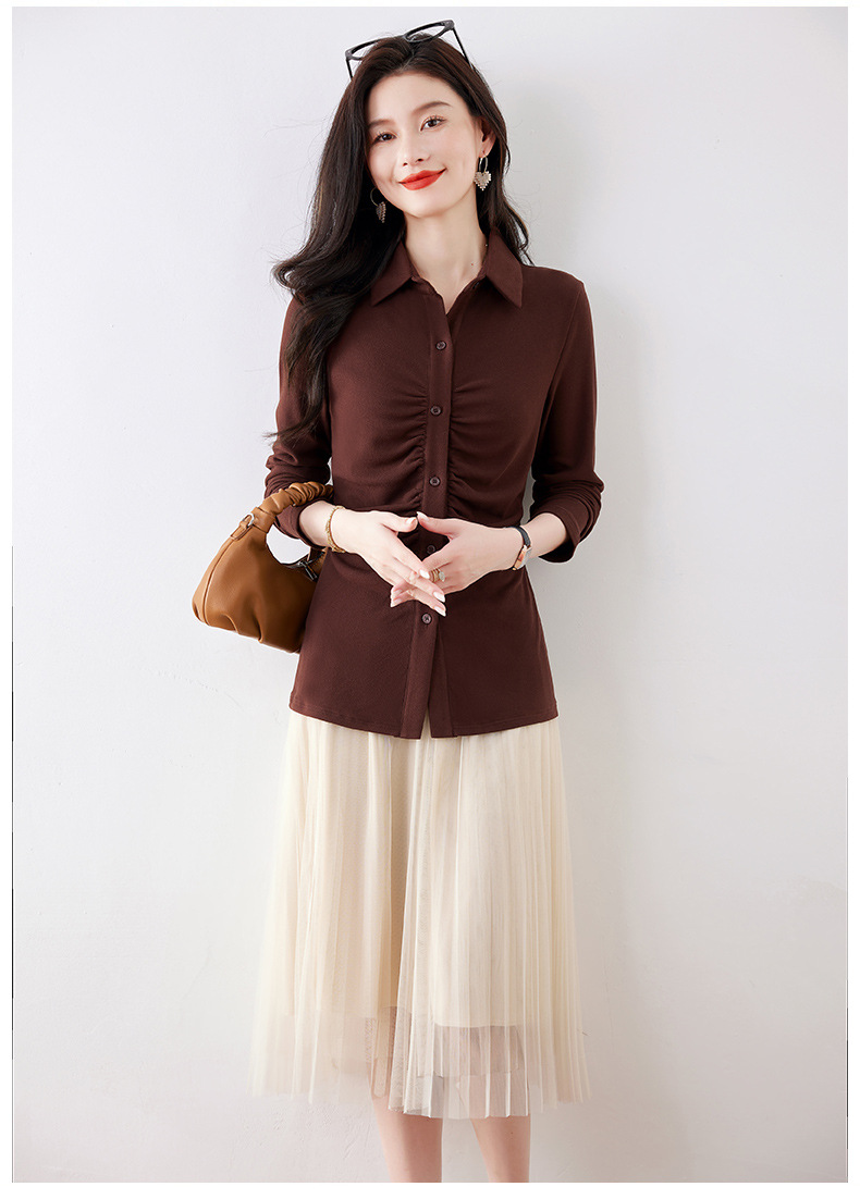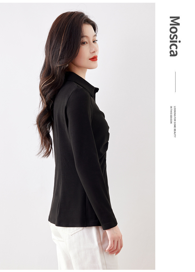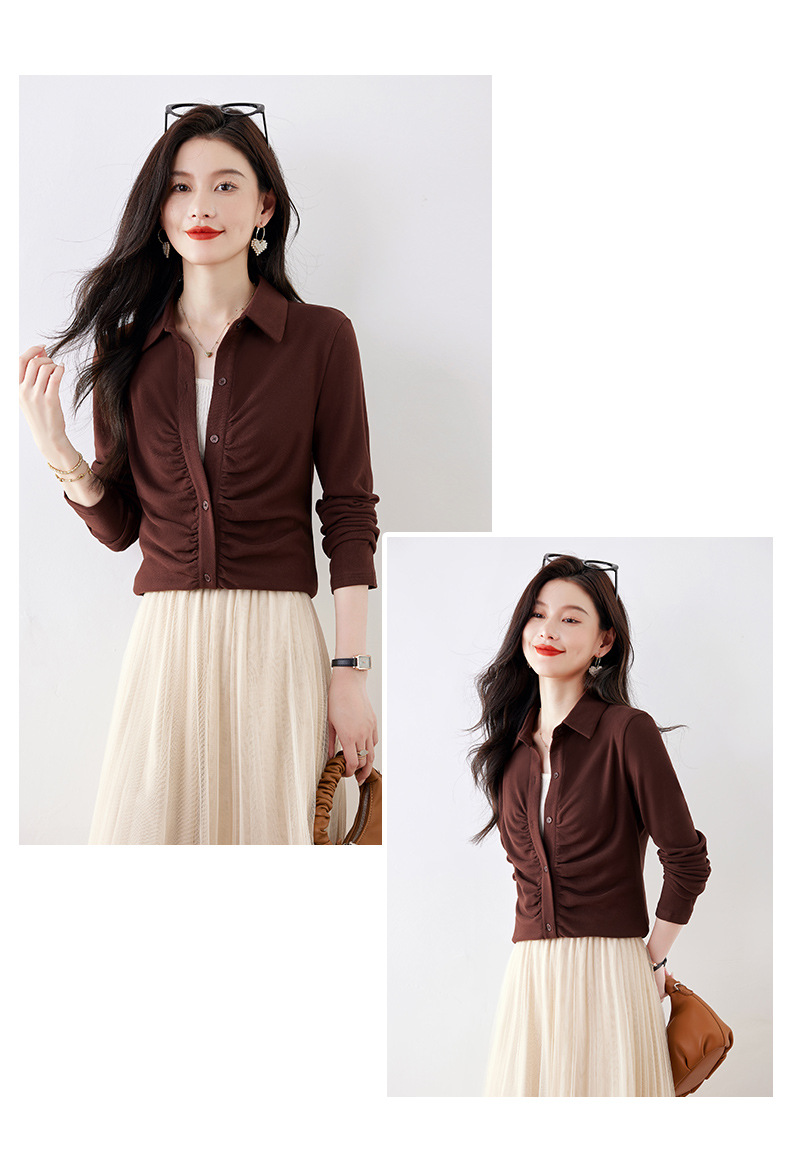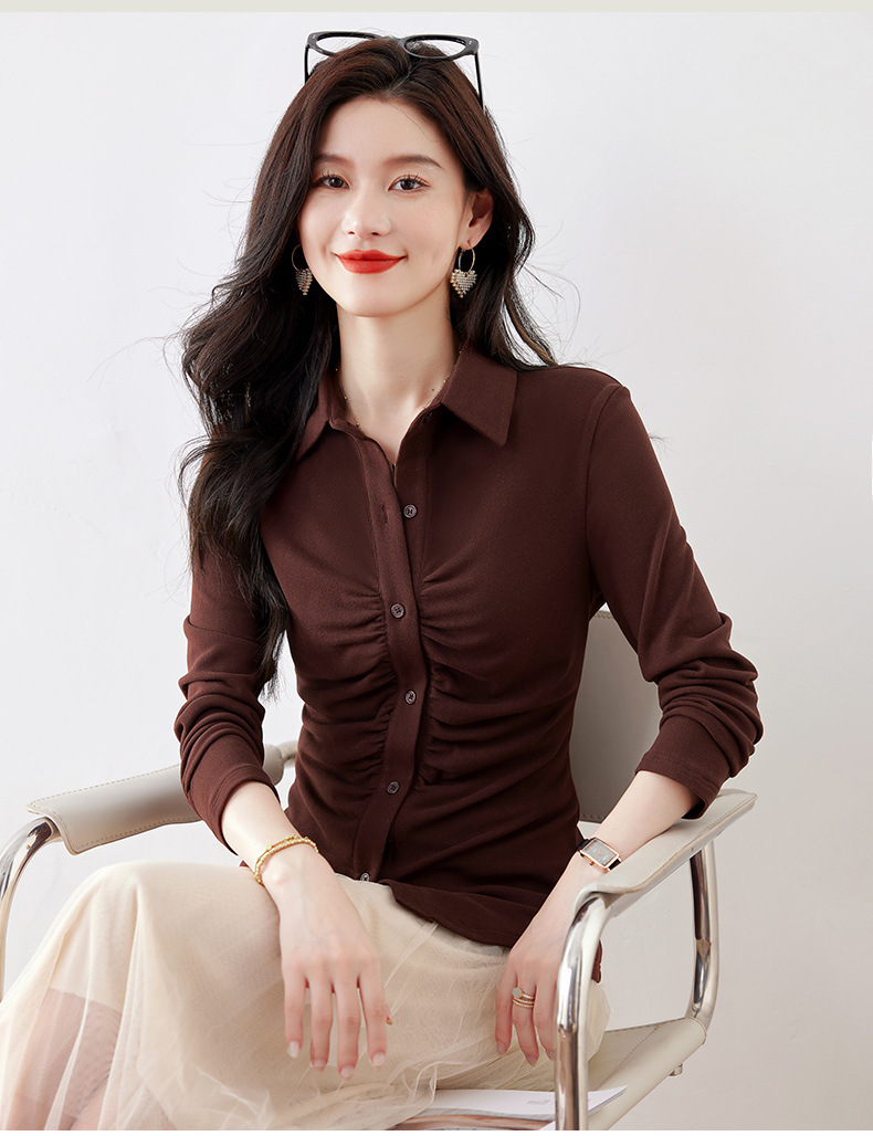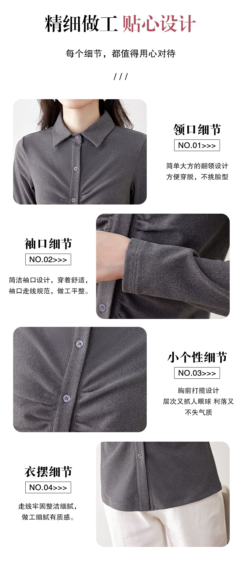 KQL 403H7929纯色衬衫收腰显瘦褶皱洋气气质小衫
