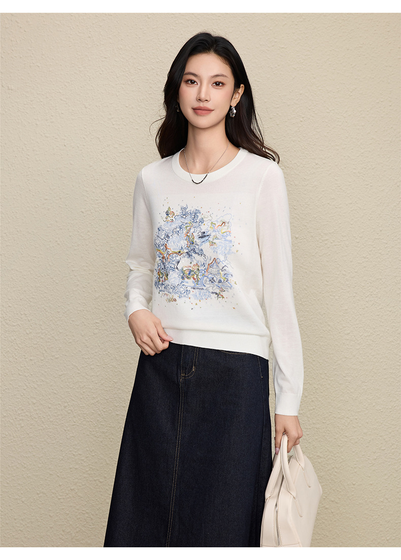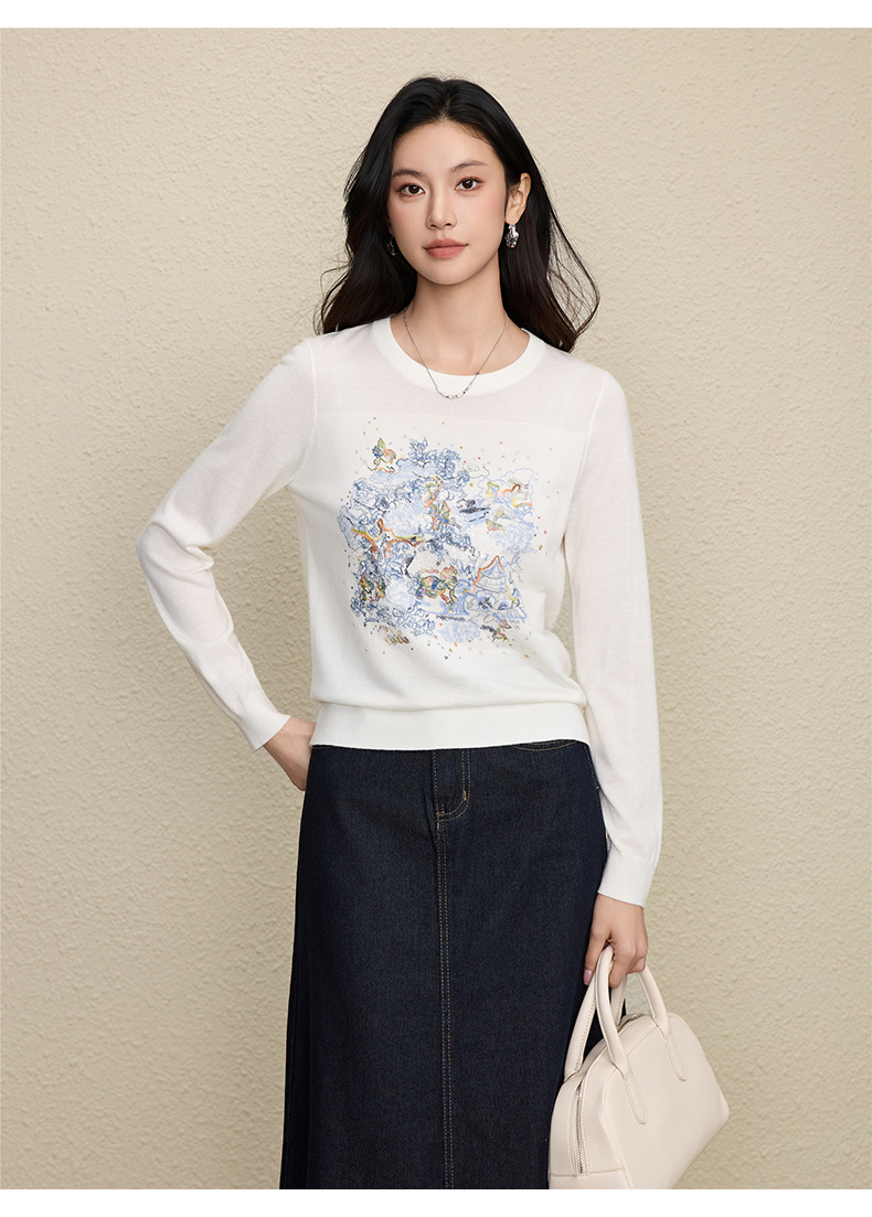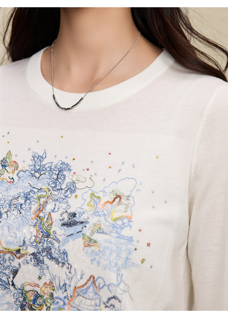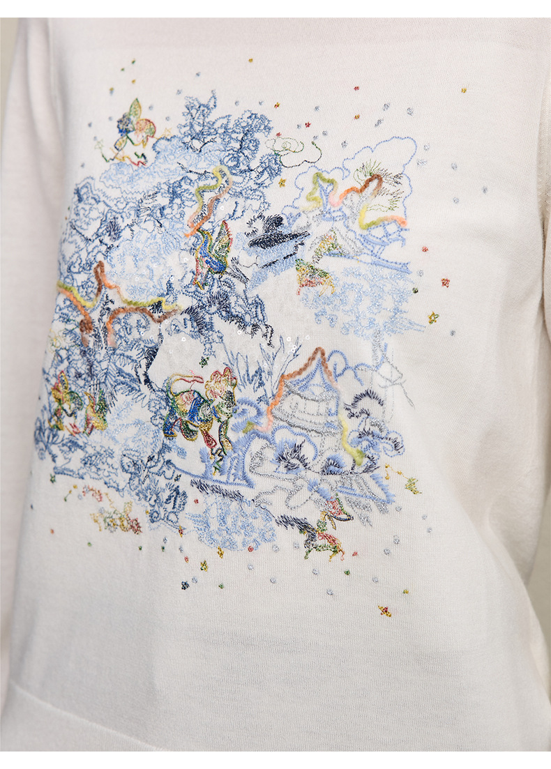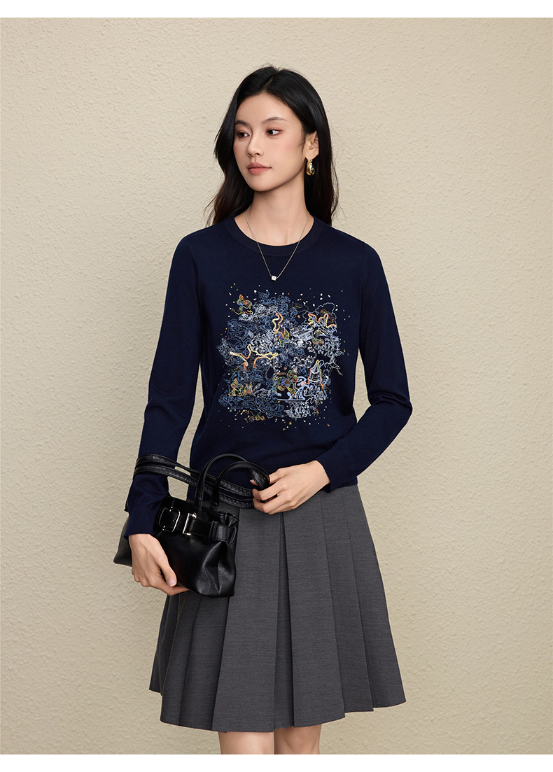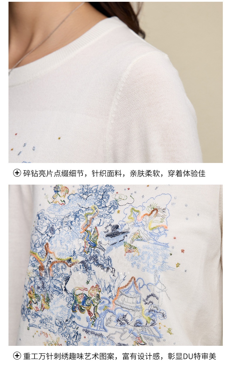 「自」全新升级【铂金会员349/天猫469/差价120】(44330)洛诗琳重工万针刺绣羊毛衫2025秋冬彩绘珠片设计感套头毛衣
