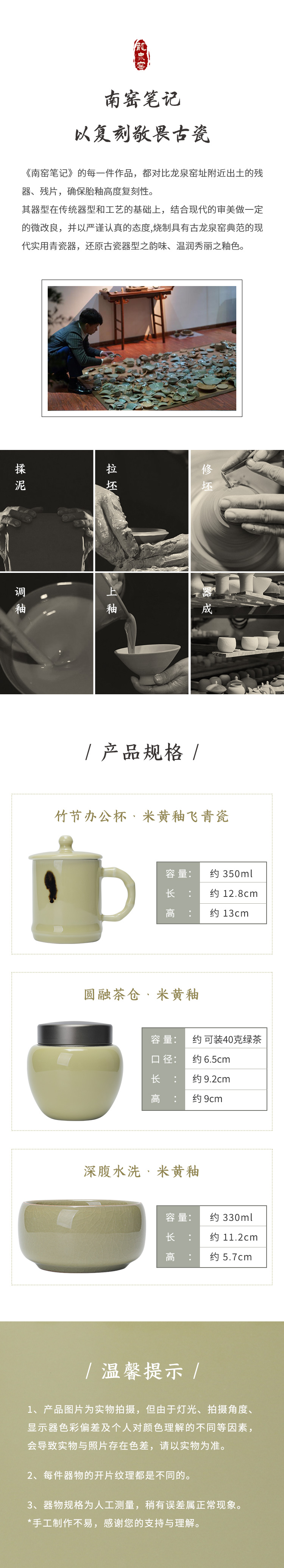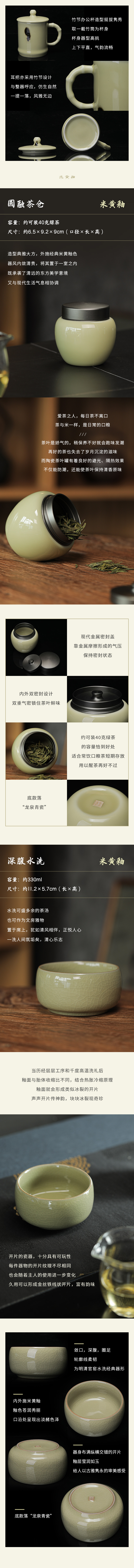 龙泉青瓷米黄釉飞青瓷,办公杯&茶仓&水洗 联合国非遗产名录唯一瓷类,被日本封为国宝的飞青遇见经典米黄釉,烧制具有古龙泉窑典范的现代实用青瓷器