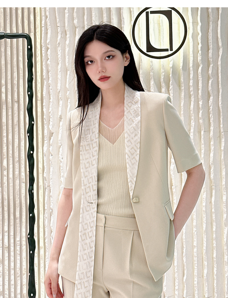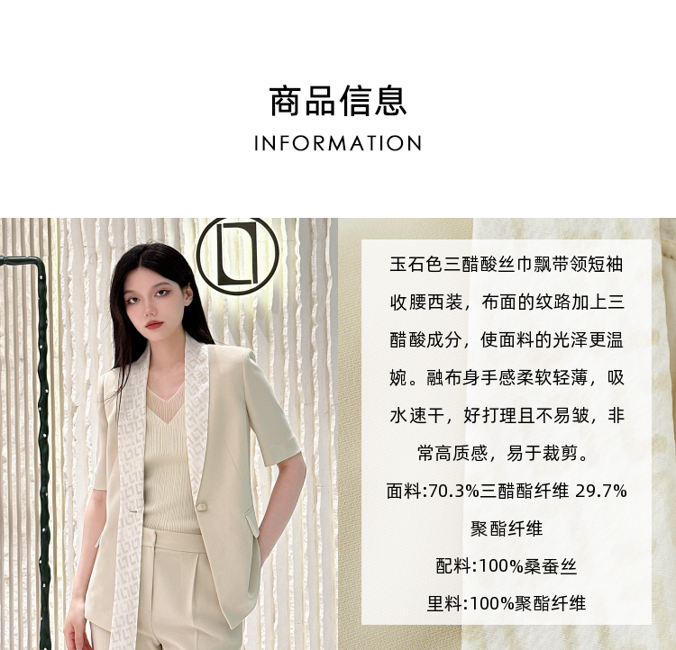 【三醋酸】Laurel劳芮 玉石色丝巾飘带领西装 LWL343T07400