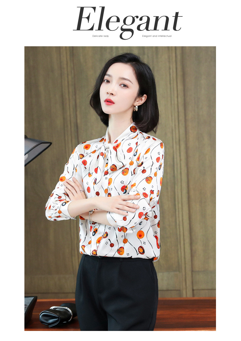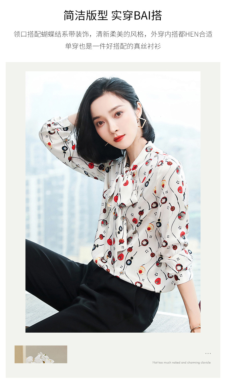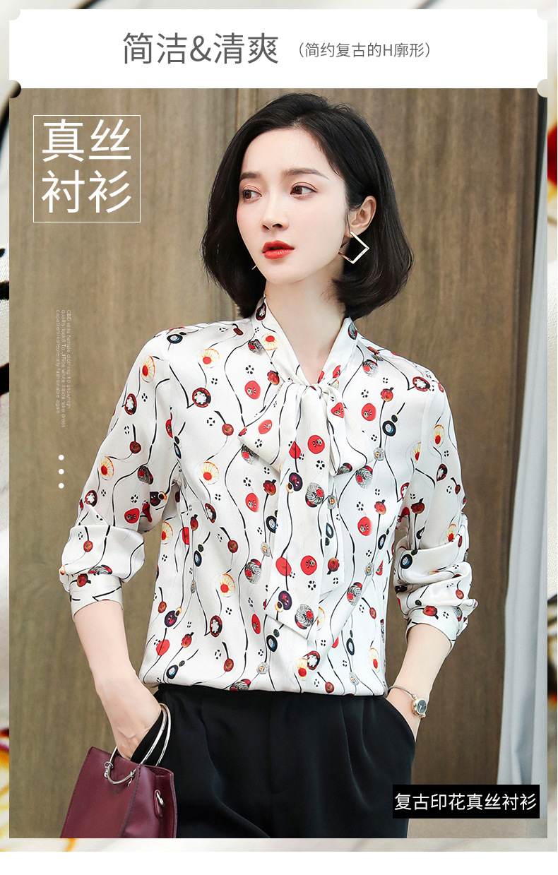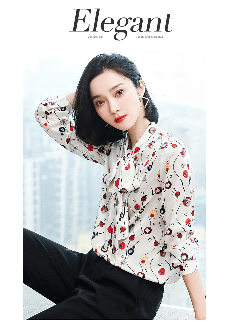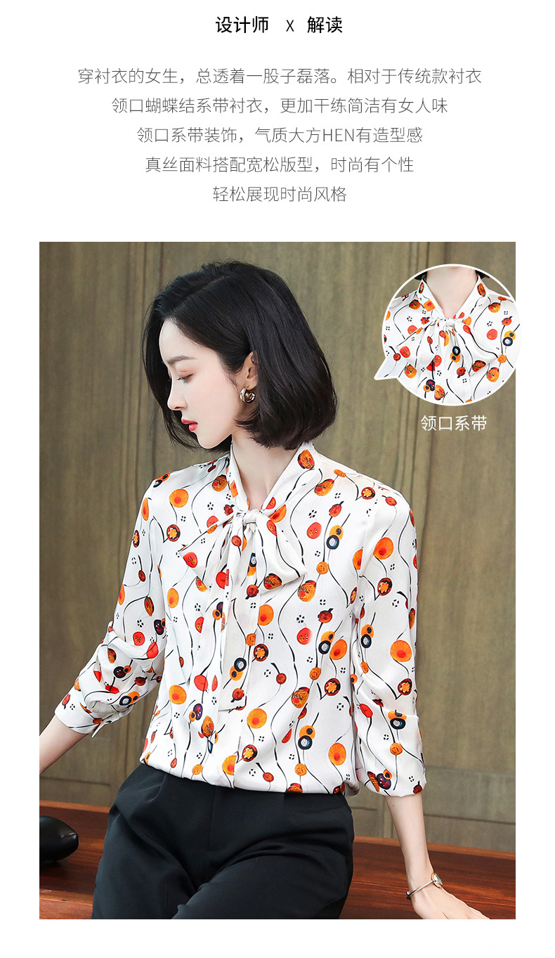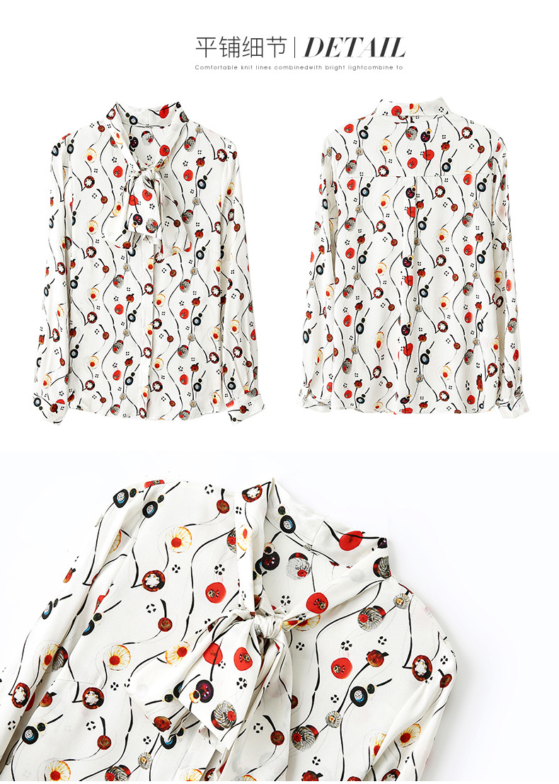 上海旗袍厂ASE-9089系带印花真丝衬衫