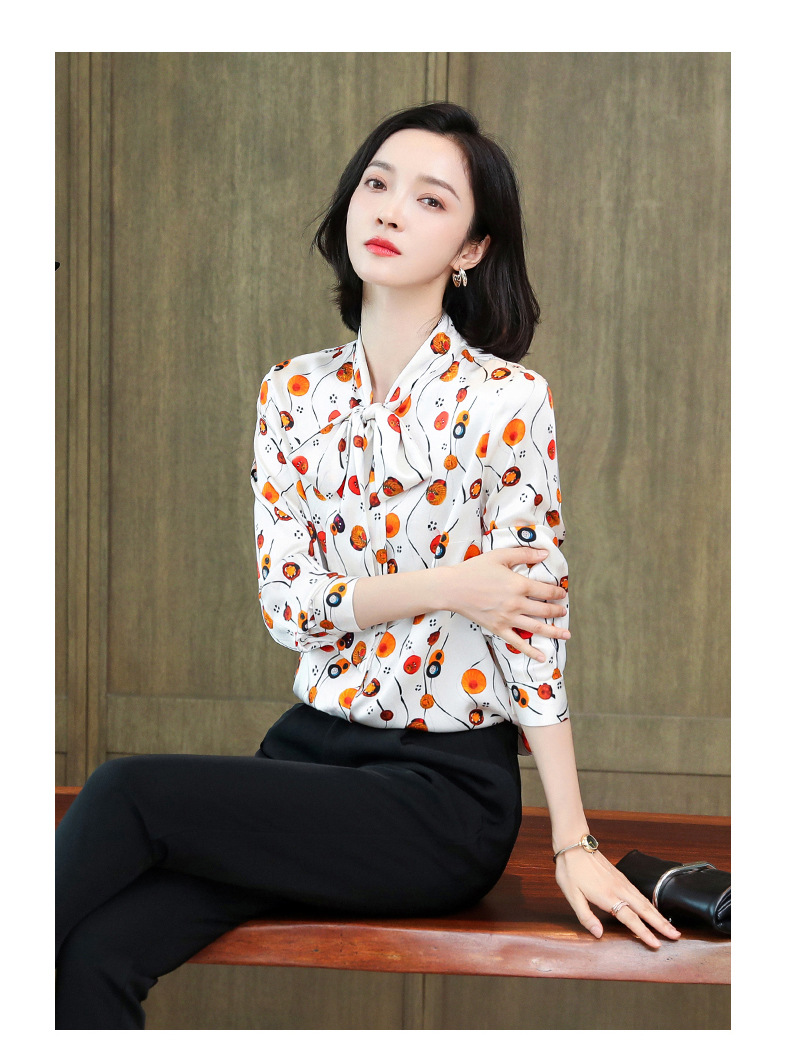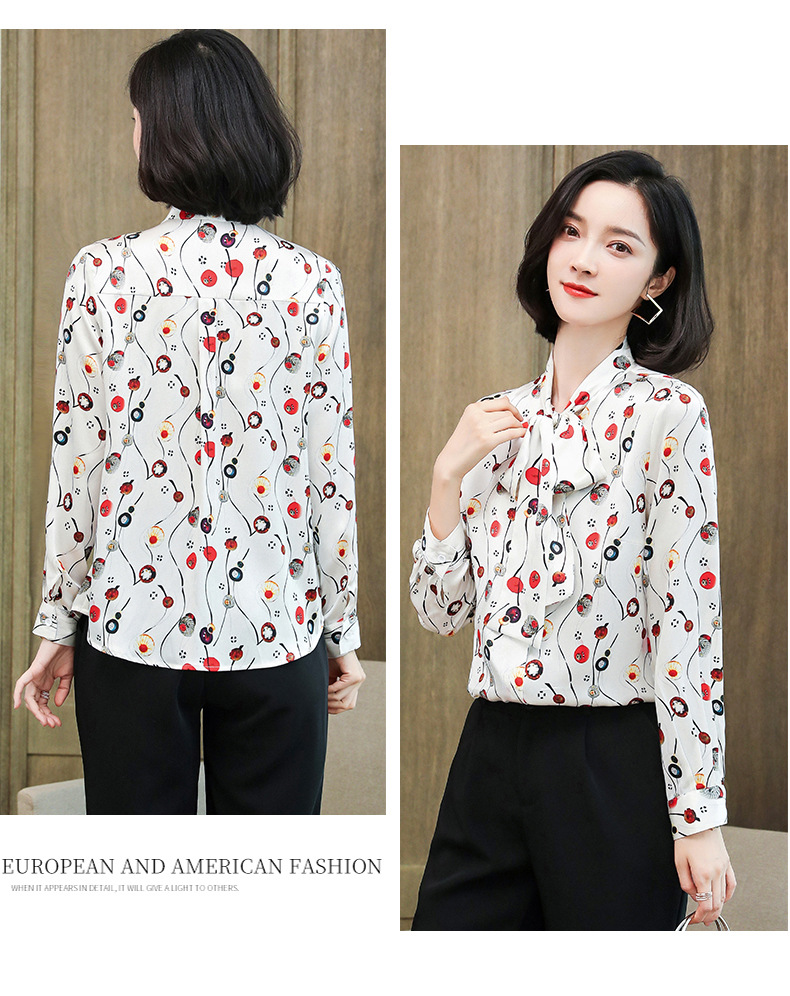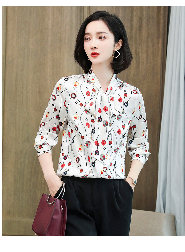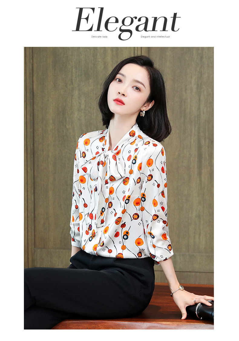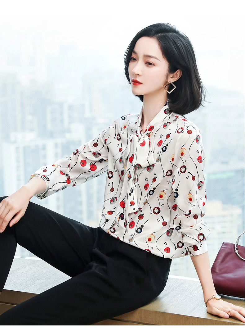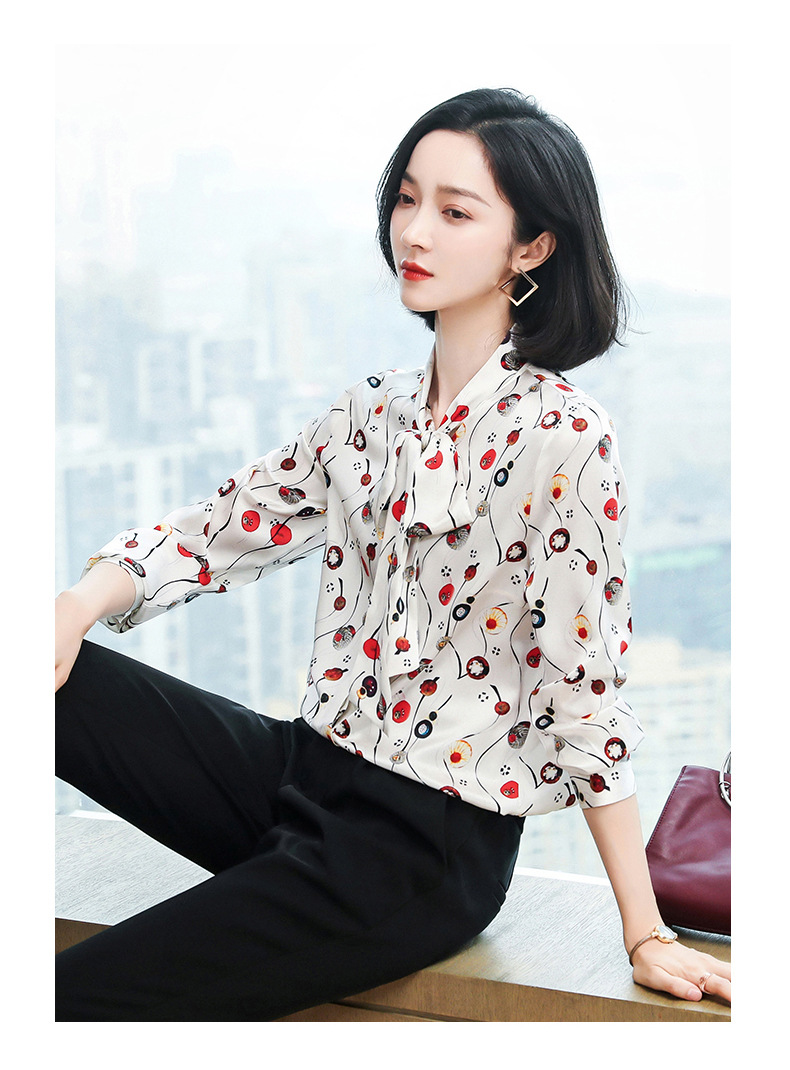 上海旗袍厂ASE-9089系带印花真丝衬衫