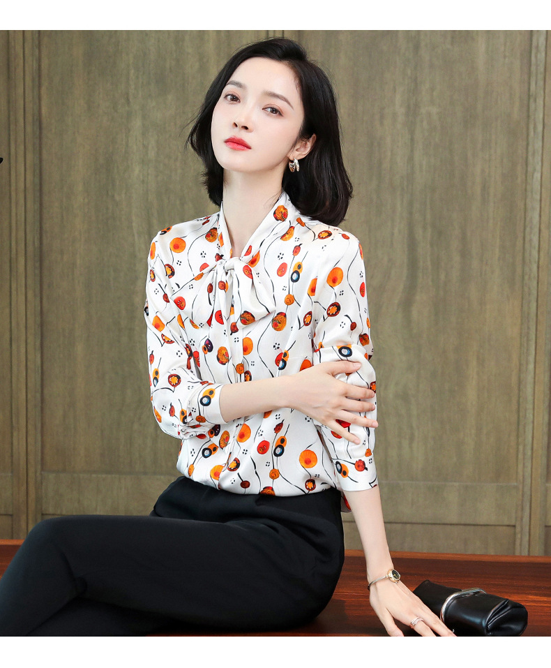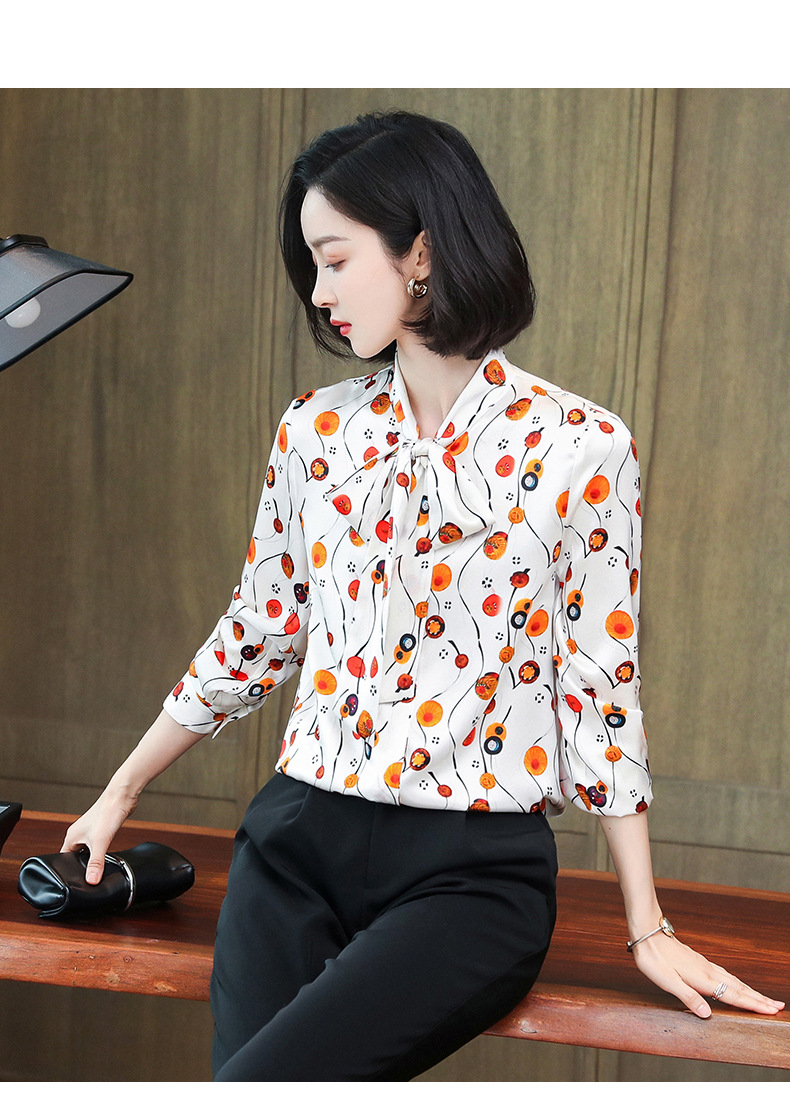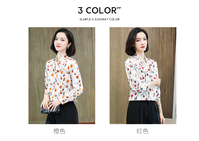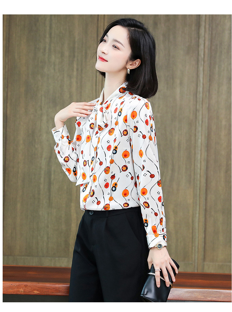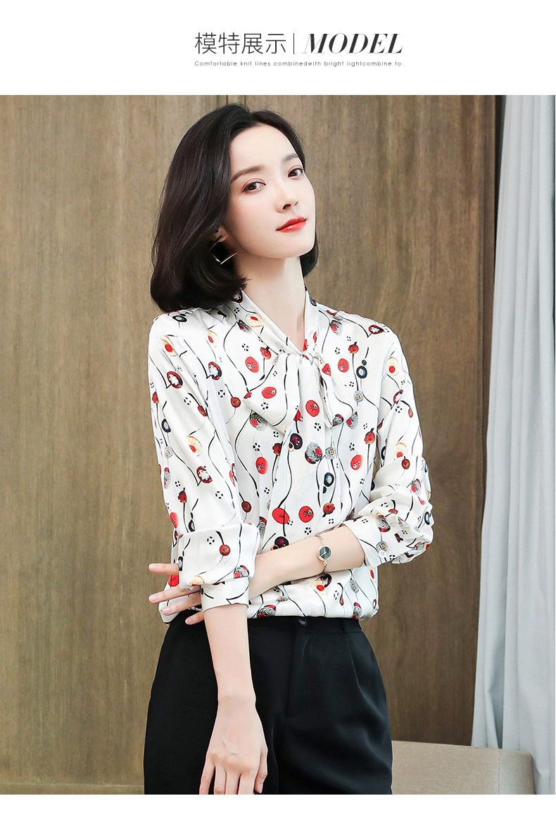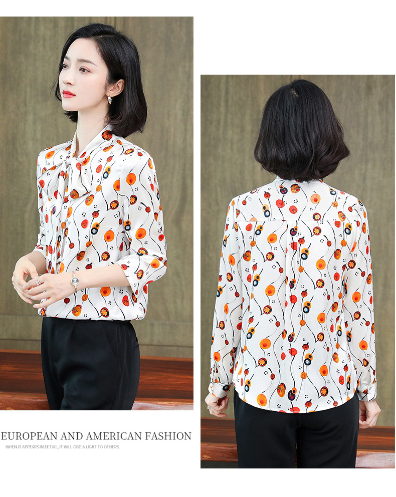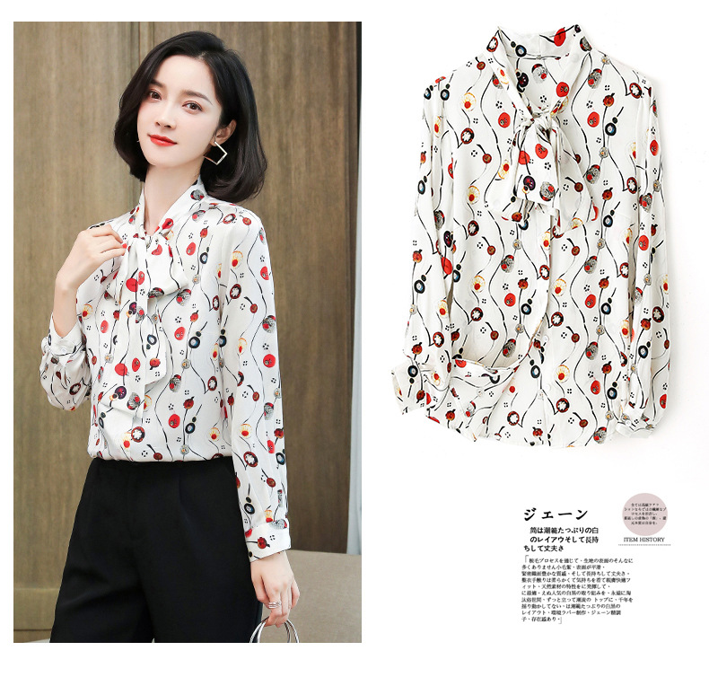 上海旗袍厂ASE-9089系带印花真丝衬衫
