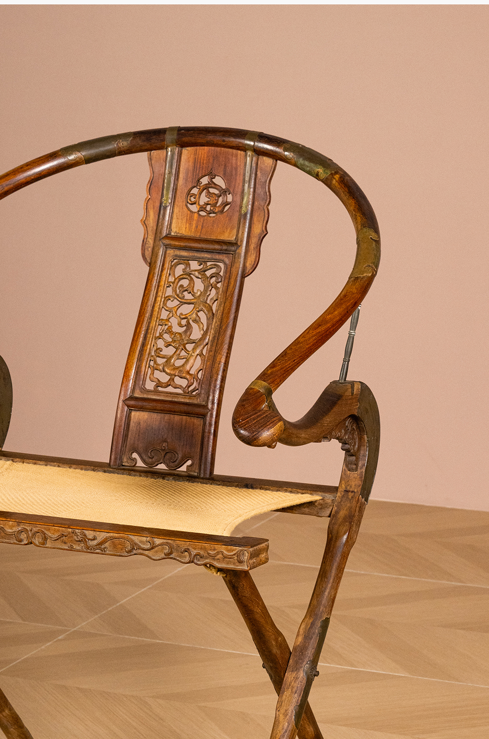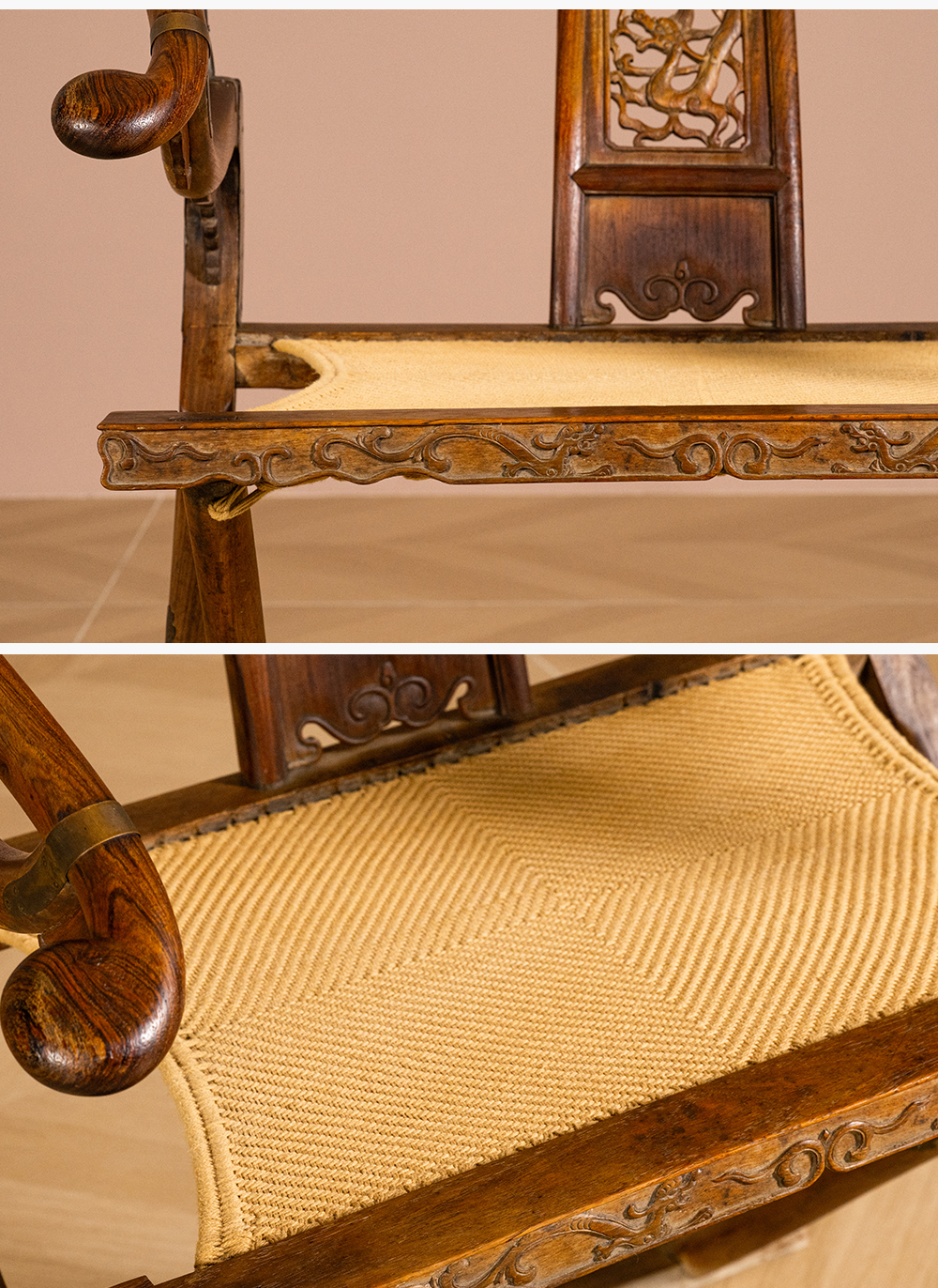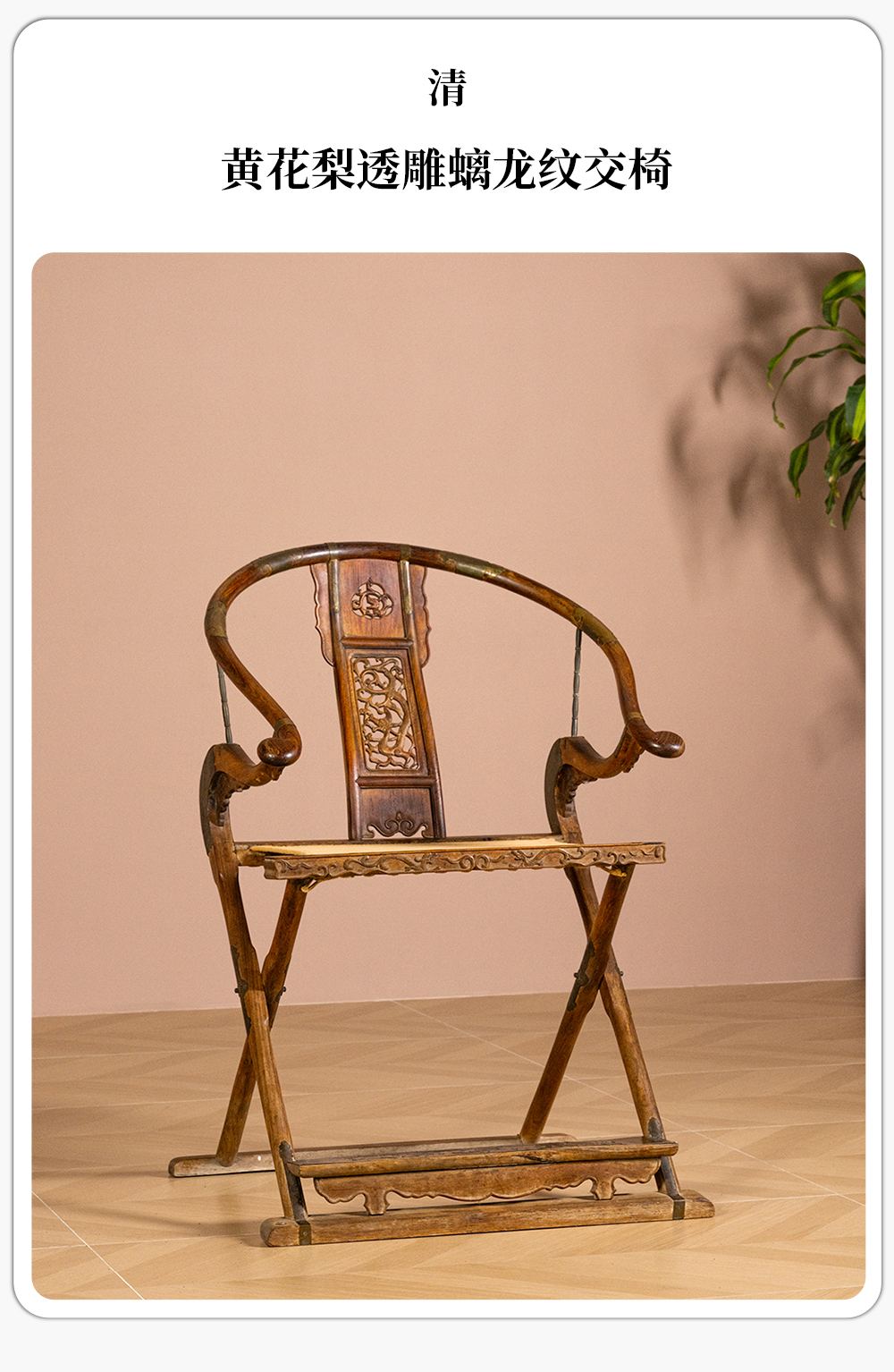 清 黄花梨透雕螭龙纹交椅