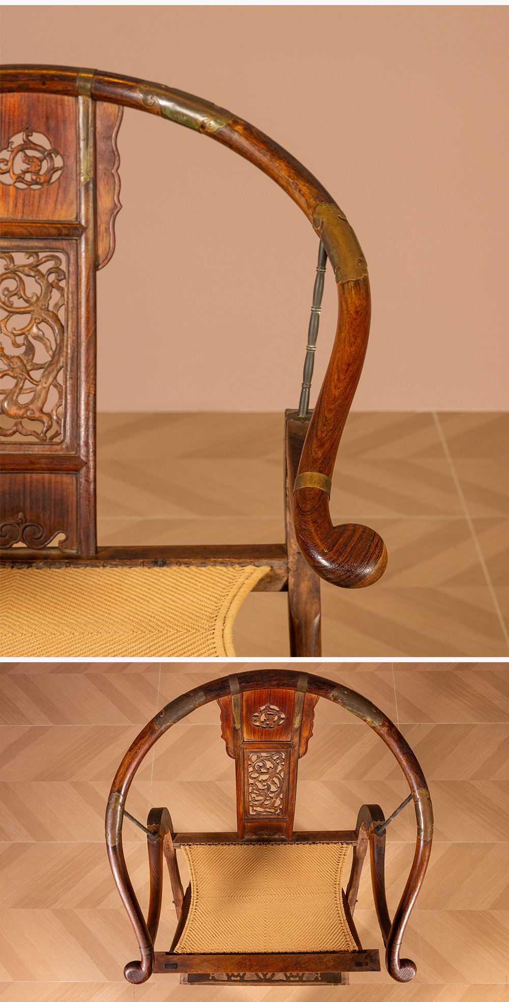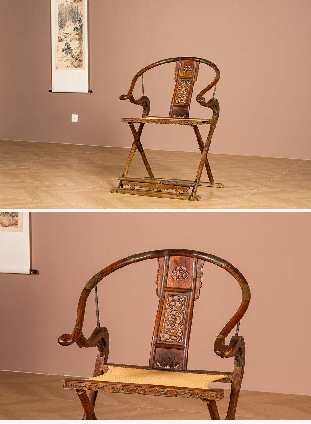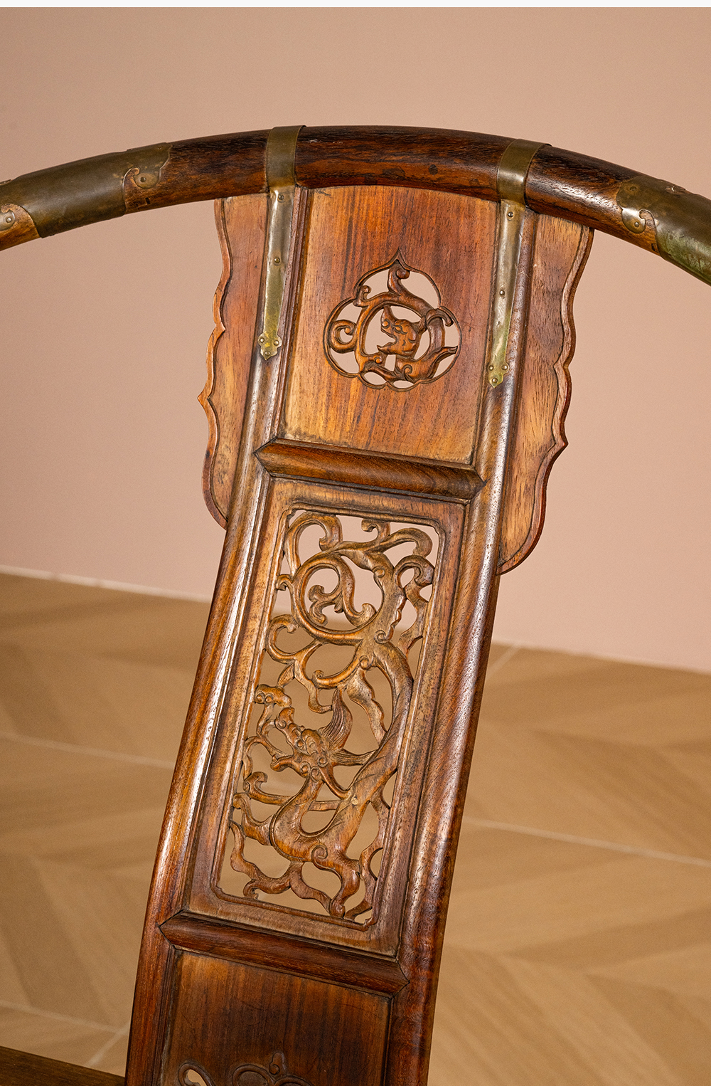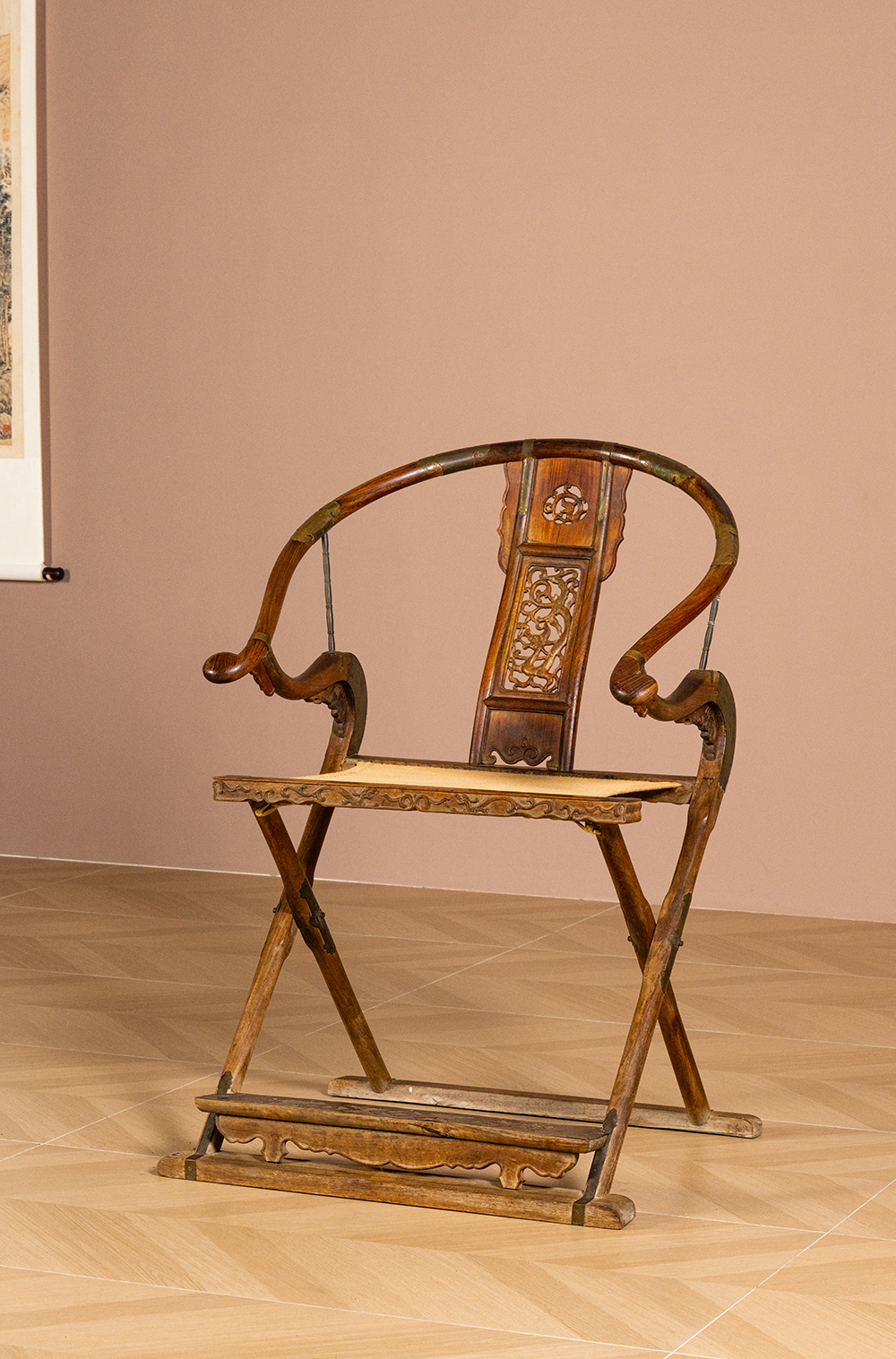 清 黄花梨透雕螭龙纹交椅