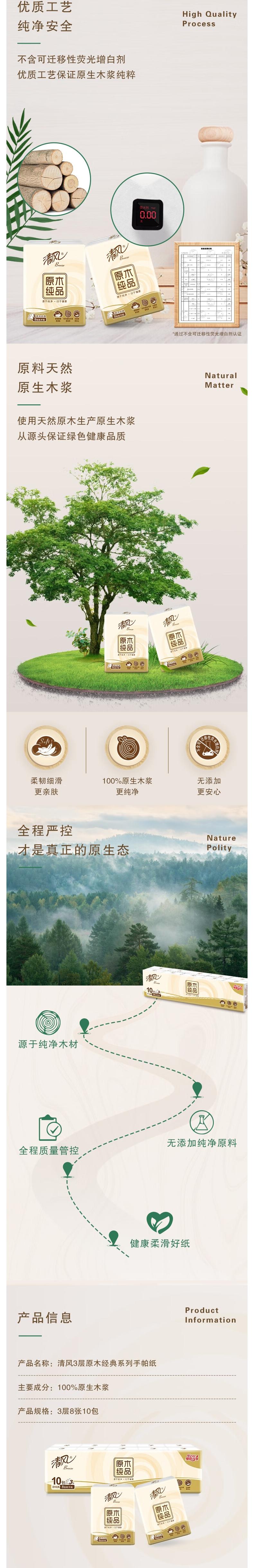 清风 原木纯品手帕纸8张10包*5条 B0MP10B-05E