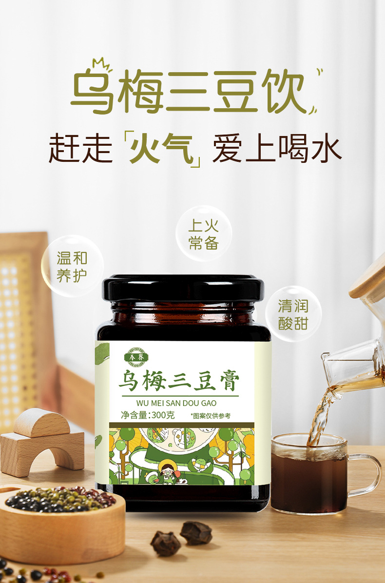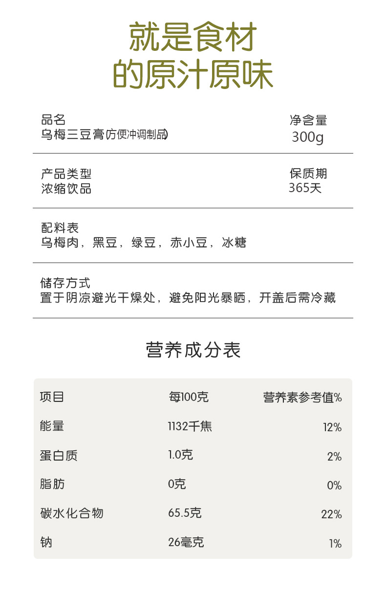 乌梅三豆膏 儿童温和赤小豆绿豆黑豆扁鹊三豆饮四季常备
