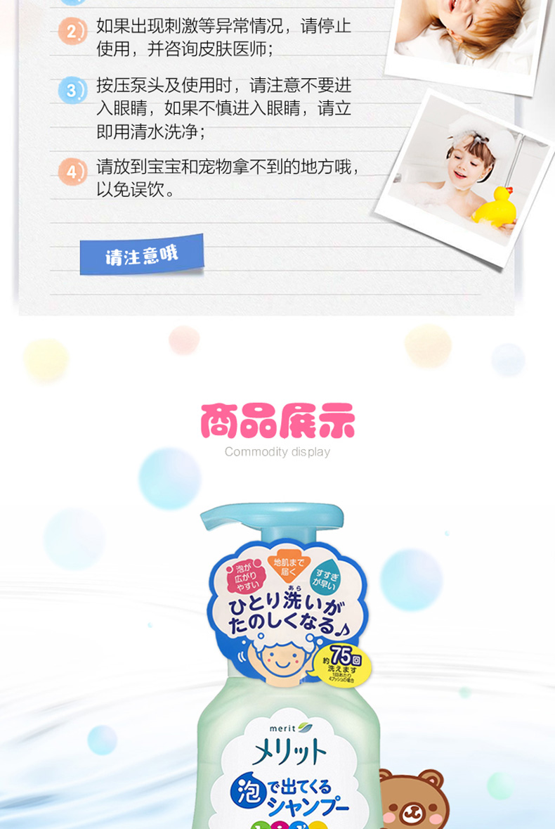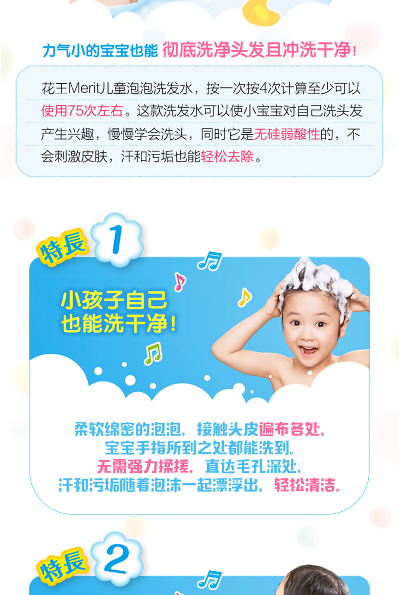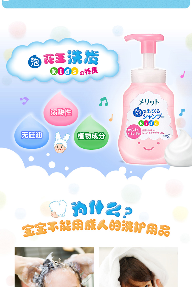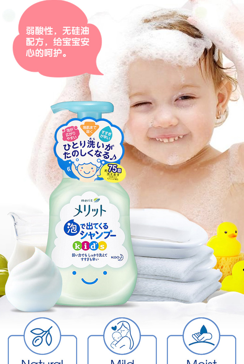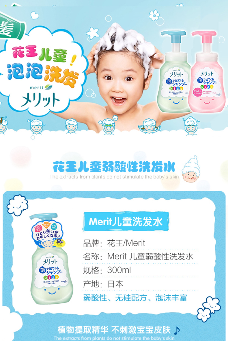 日本KAO花王merit弱酸性儿童宝宝植物精华配方泡沫洗发水洗发露300ml 跨境购