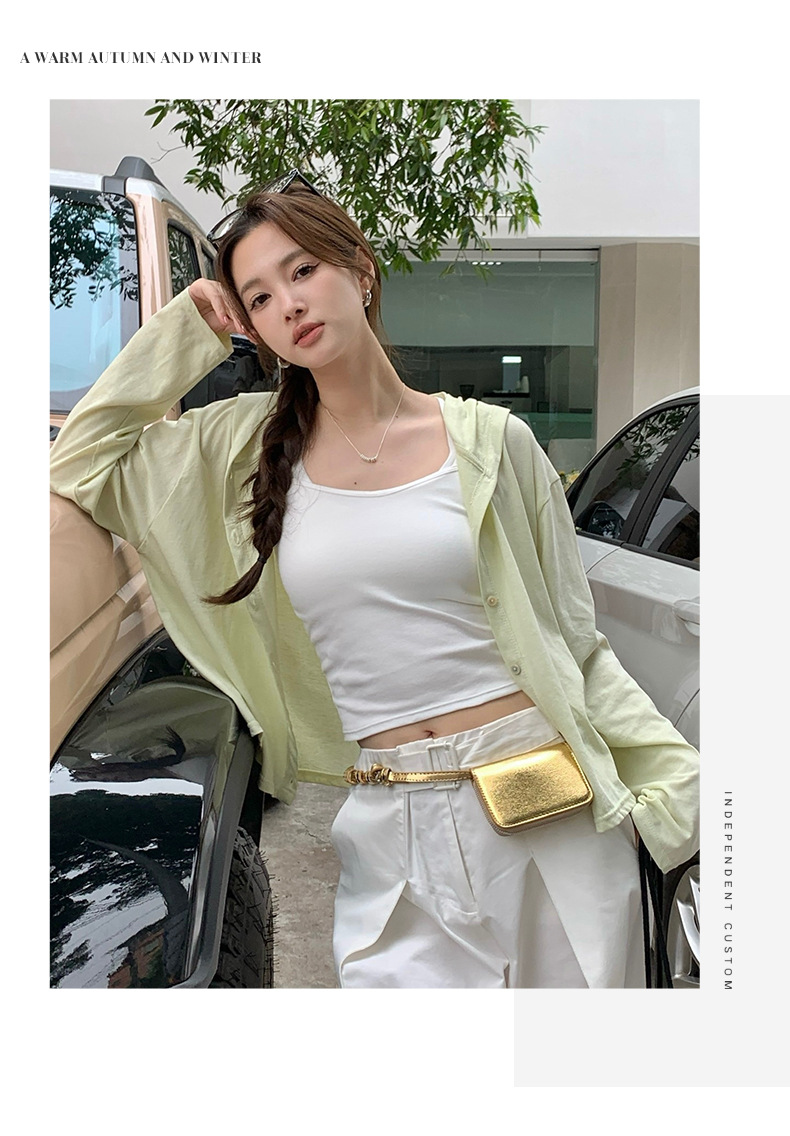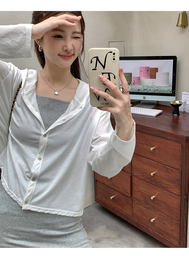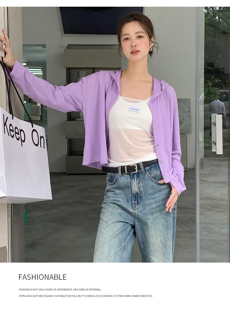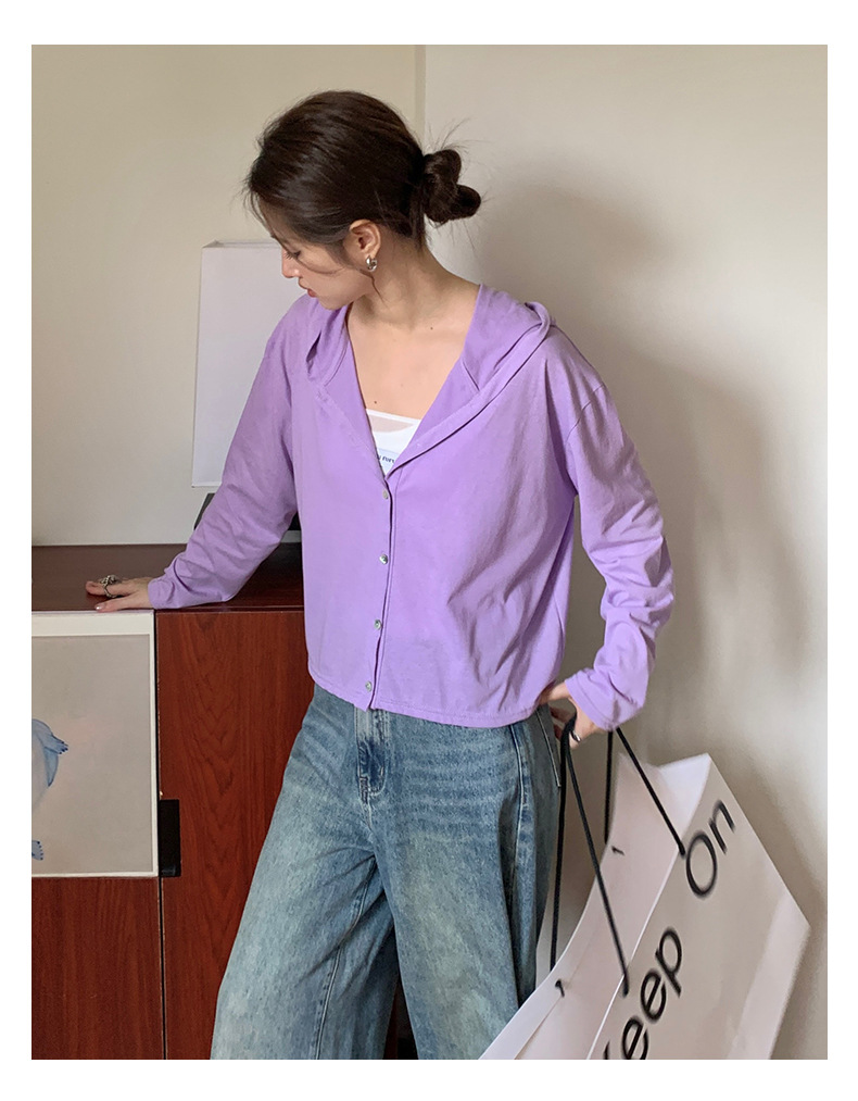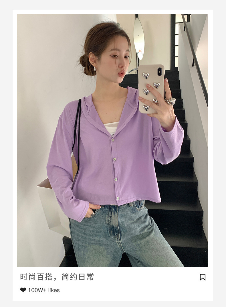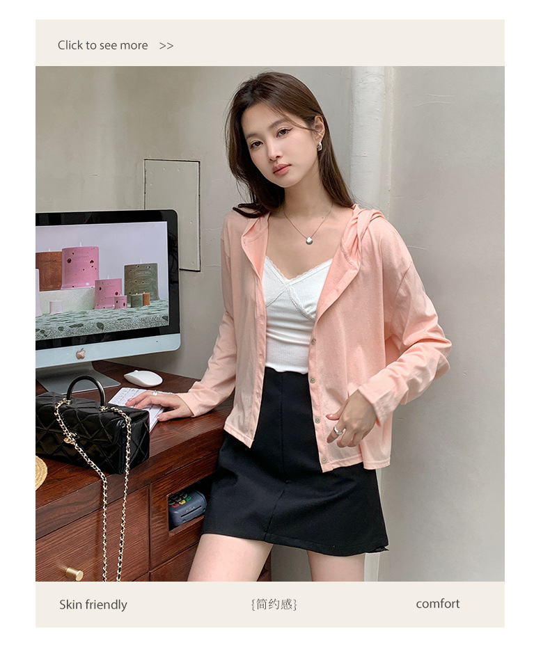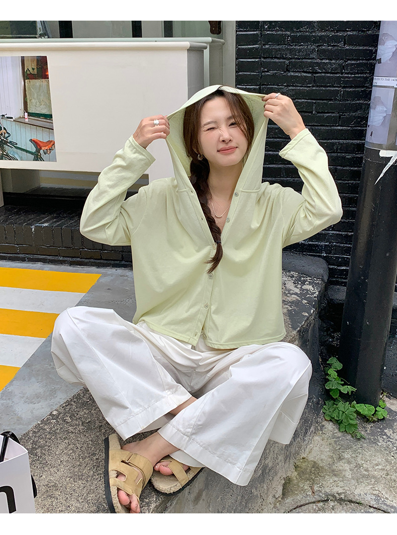 【2026夏季】丝光竹节棉・连帽开衫 时尚连帽空调衫 宽松休闲百搭竹节棉纽扣长袖开衫外穿