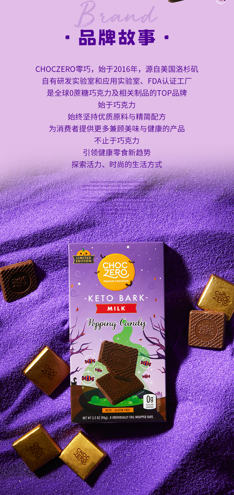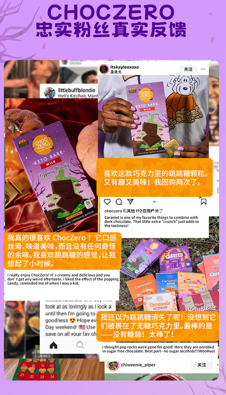 ChocZero 零巧牛奶巧克力跳跳糖方块纯可可脂万圣节美国进口 90g