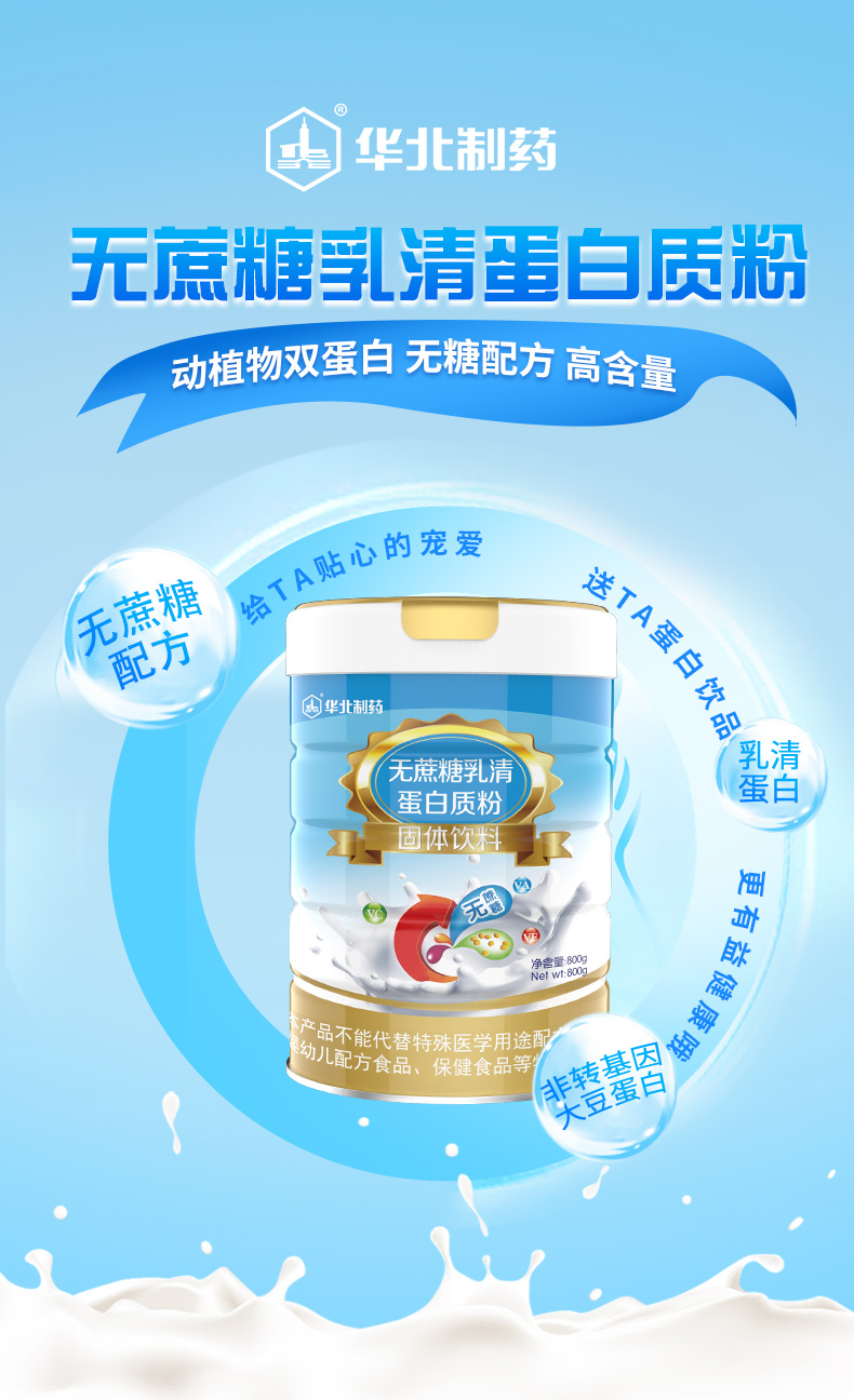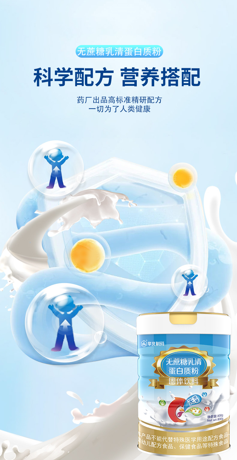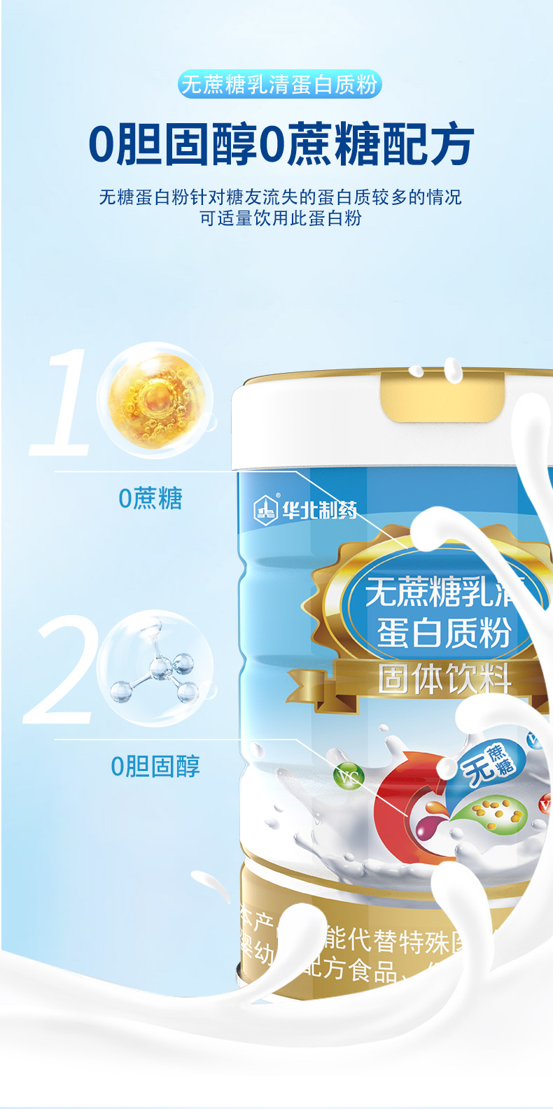华北制药无蔗糖乳清蛋白质粉 800g/桶 非转基因大豆分离蛋白
