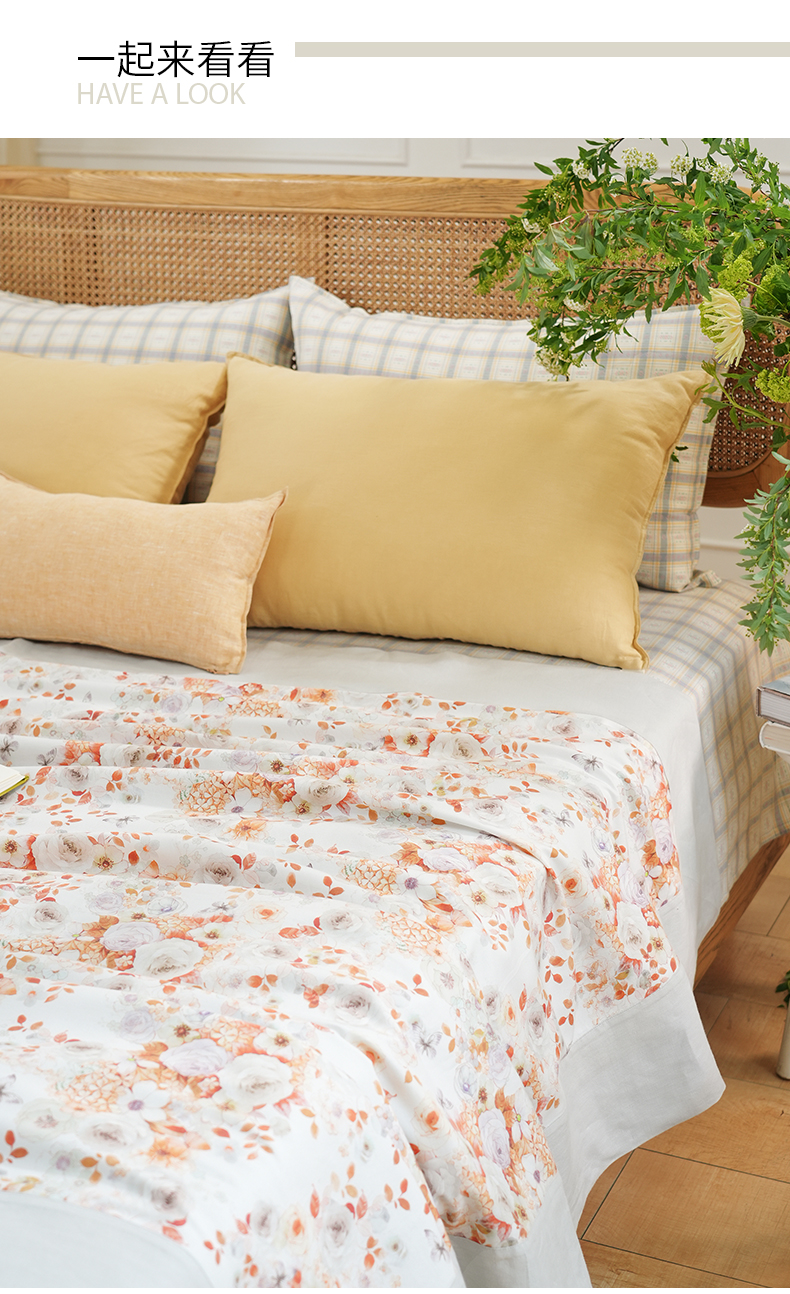 蝴蝶花语系列夏凉盖毯空调被毛巾被凉感家用午睡沙发纯棉成人空调盖毯