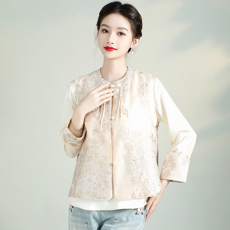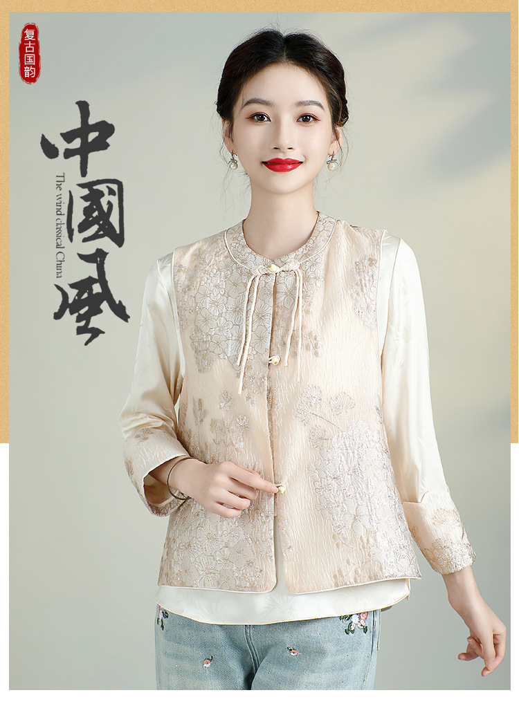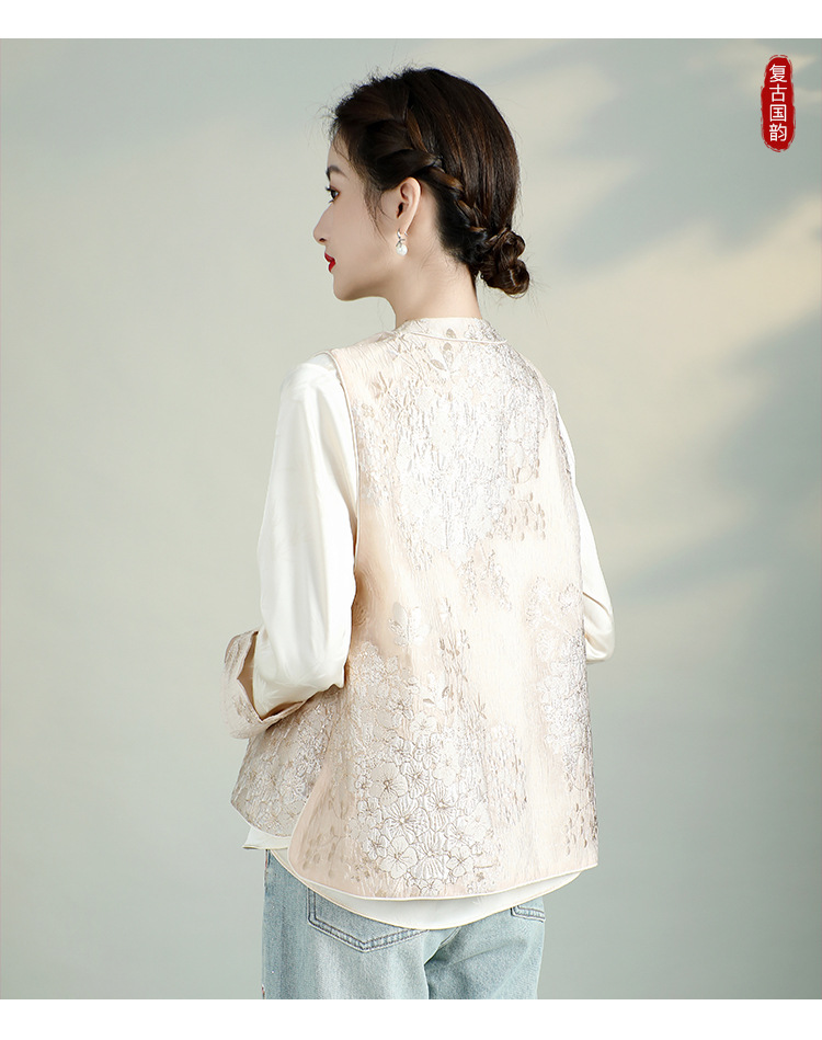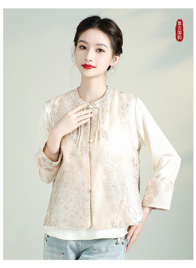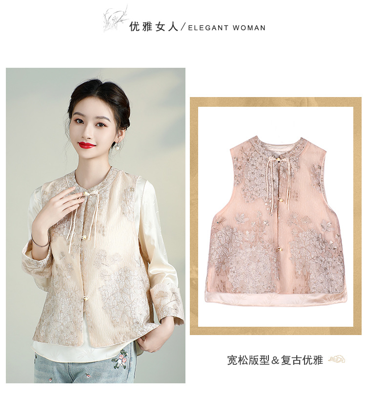 中国风提花织锦马甲,背心新中式复古流苏盘扣坎肩唐装上衣AYK-QF-240109