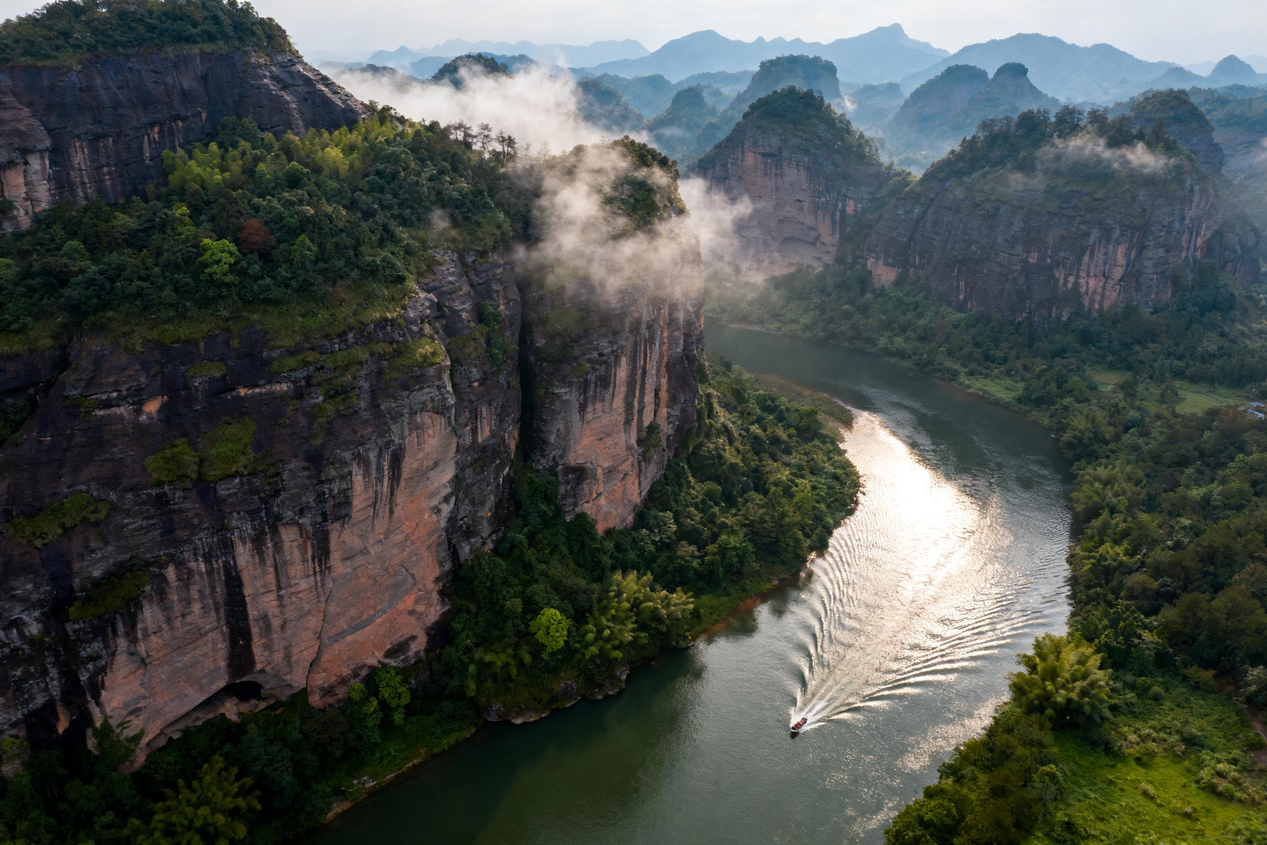 行程安排:清晨 5:30 乘最早班竹筏漂流,船头机位拍摄泸溪晨雾与丹霞山影,途经无蚊村时抓拍炊烟袅袅画面;上午登仙女岩观景台,拍 “大地之母” 丹霞奇观;下午前往大上清宫,拍九龙街 S 形甬道与红石古墙细节,用框架构图拍山门与天空的层次感;傍晚在象鼻山日落观景台,拍夕阳洒在岩壁上的鎏金效果;