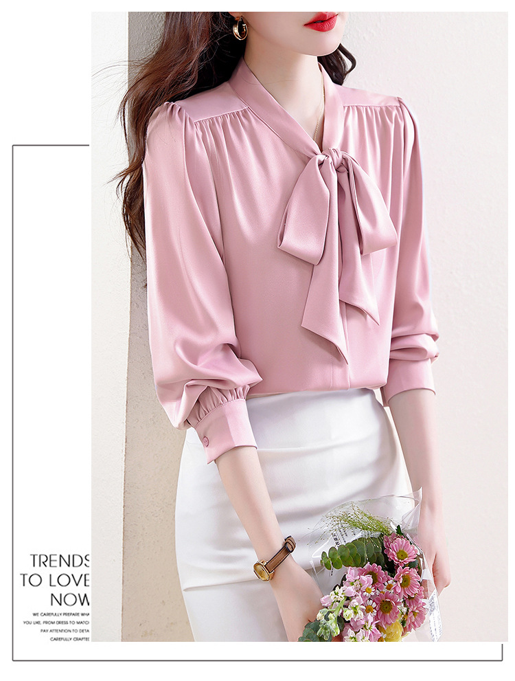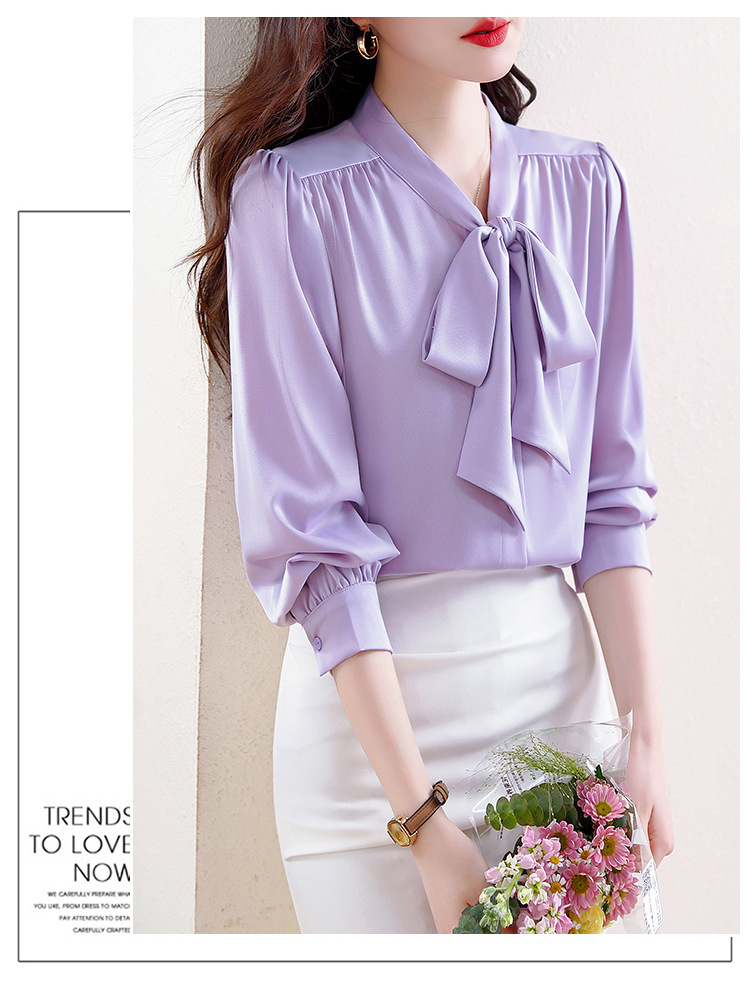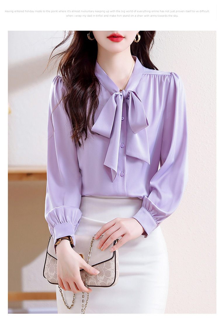 KQL C22N90229时尚韩版系带衬衣休闲通勤单排扣衬衫