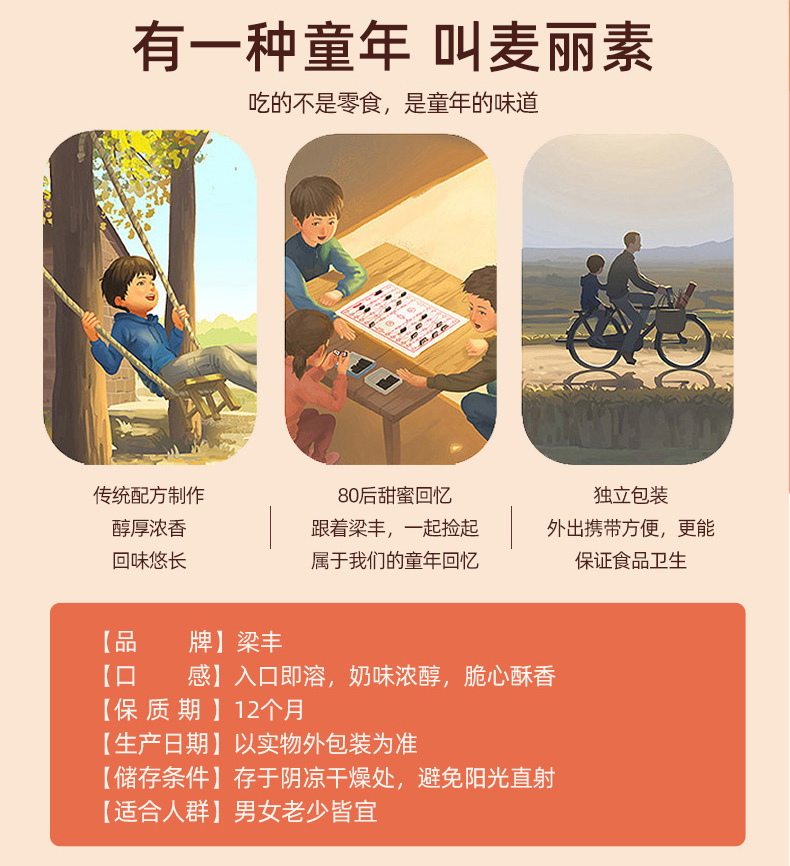 55g梁丰原味麦丽素 怀旧小包装休闲零食