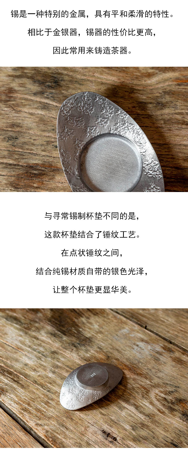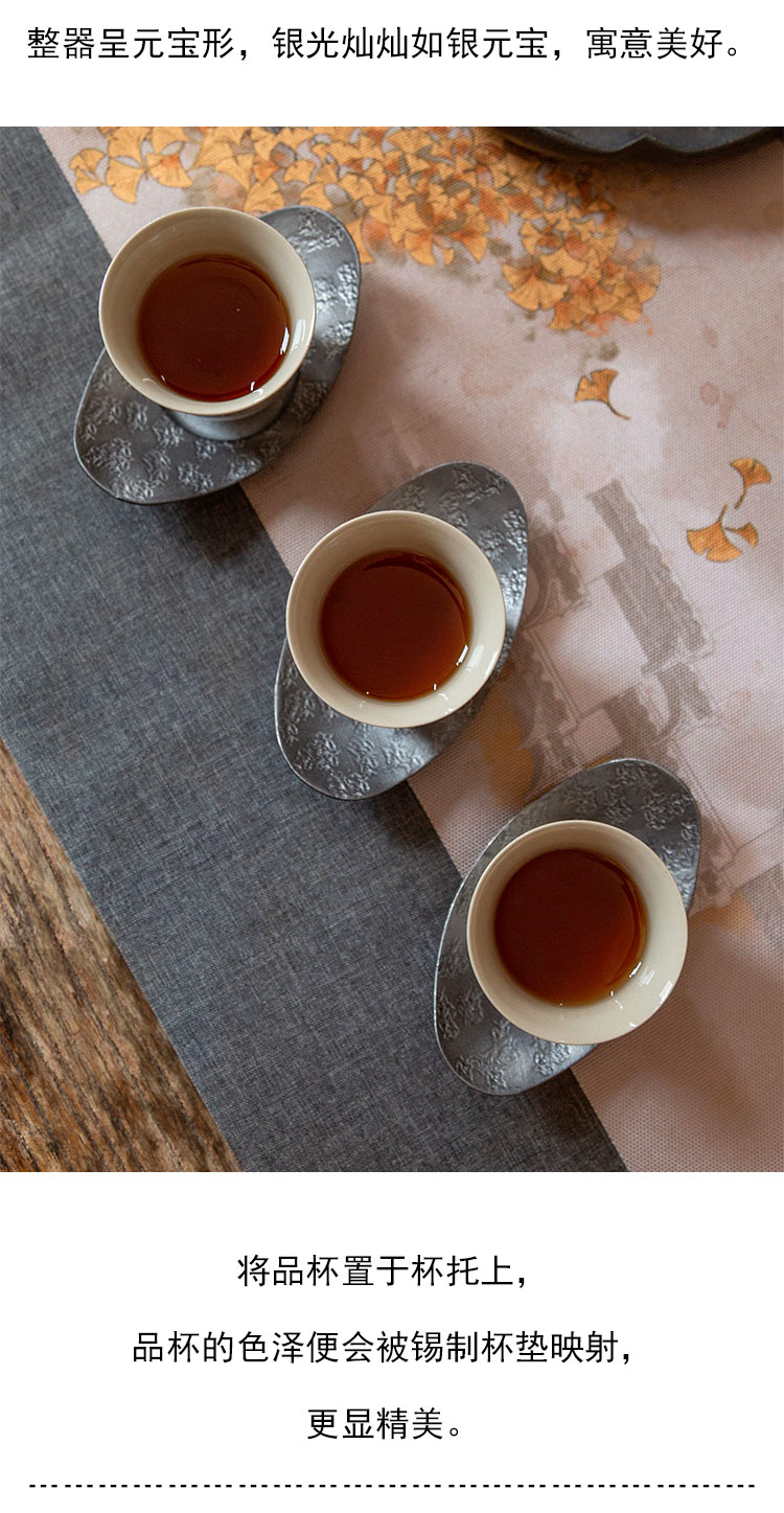 茶香记 古锡 元宝杯垫 精美锤纹 银光灿灿 寓意美好 功夫茶具