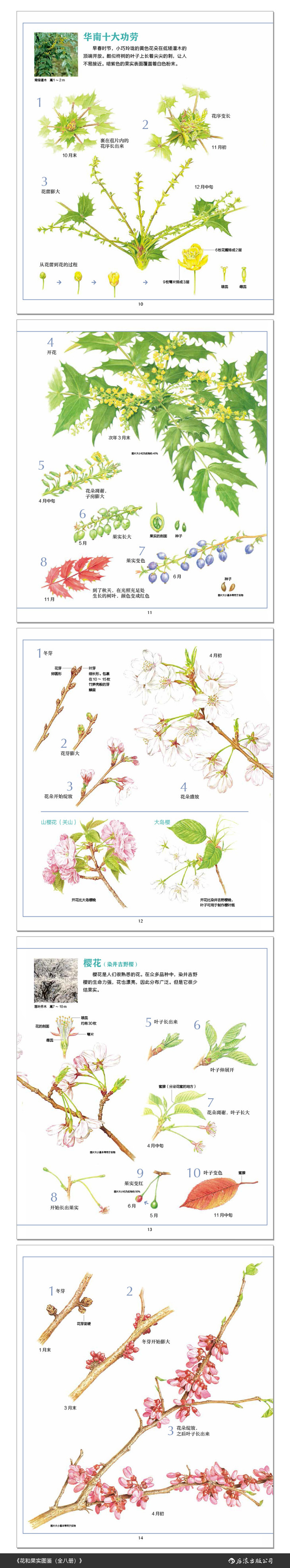 《花和果实图鉴(全八册)》是一套介绍树木的花和果实的手绘图鉴。全书以工笔画的细腻笔触,详细描绘出58科、150多种树木从花芽萌发到开花、结果、孕育出种子的生长过程,完整呈现出树木的生长全貌。极具知识性和观赏性。
