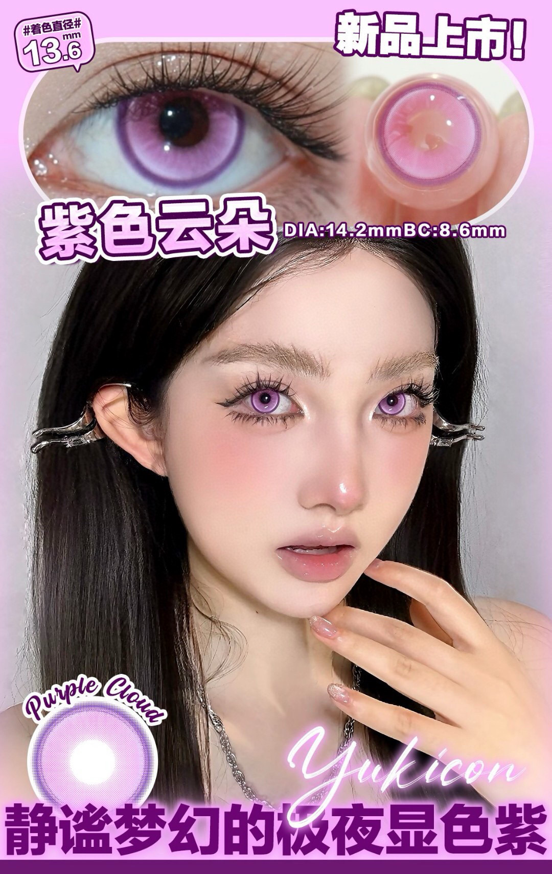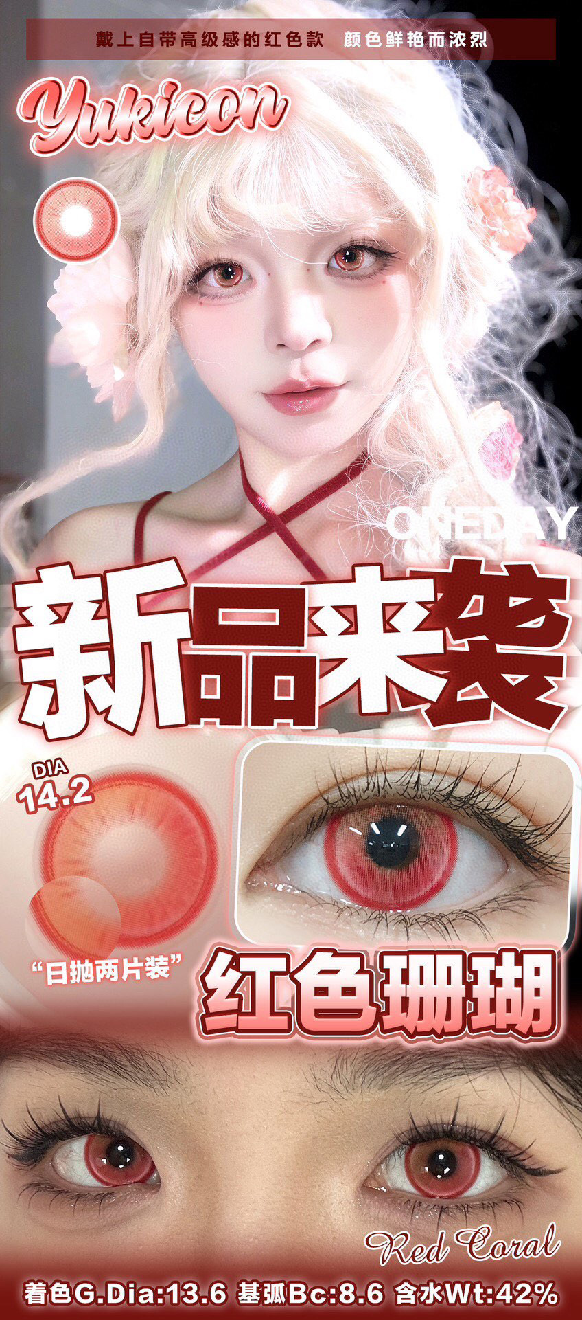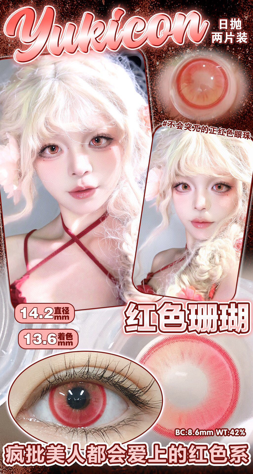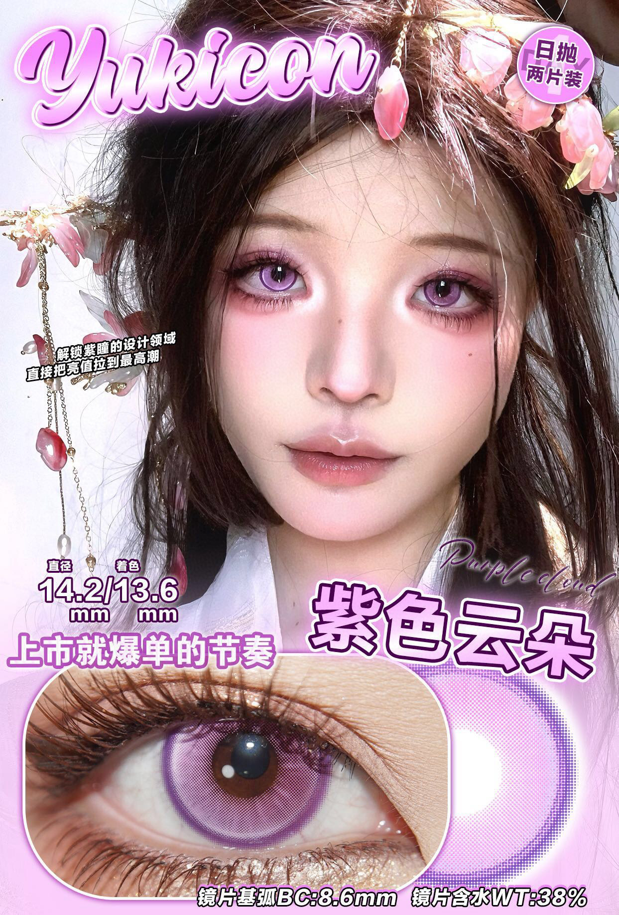 Yukicon日抛隐形眼镜 红色珊瑚/紫色云朵 1盒/2片