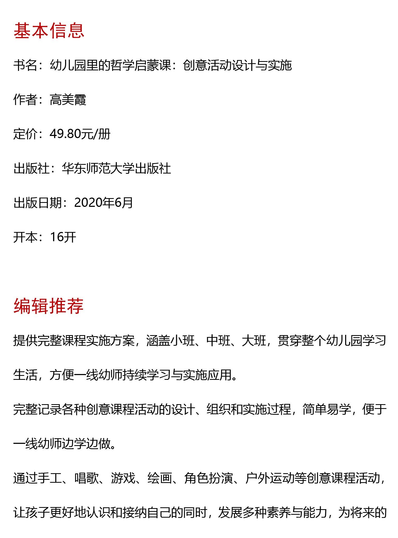 幼儿园里的哲学启蒙课 创意活动设计与实施 大夏书系 全国幼儿教师培训用书 创意课程活动 小班 中班 大班 华东师范大学出版社