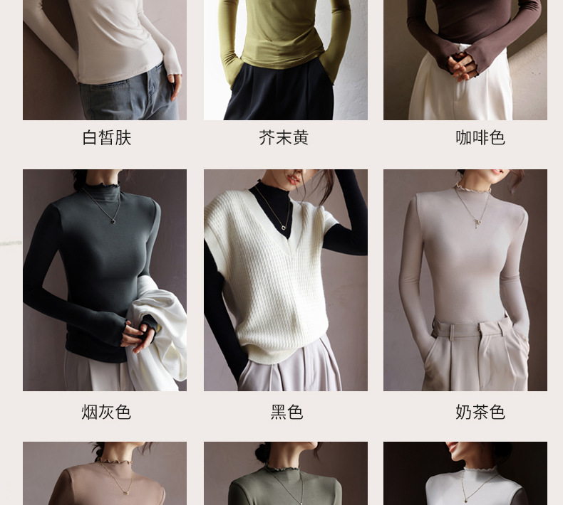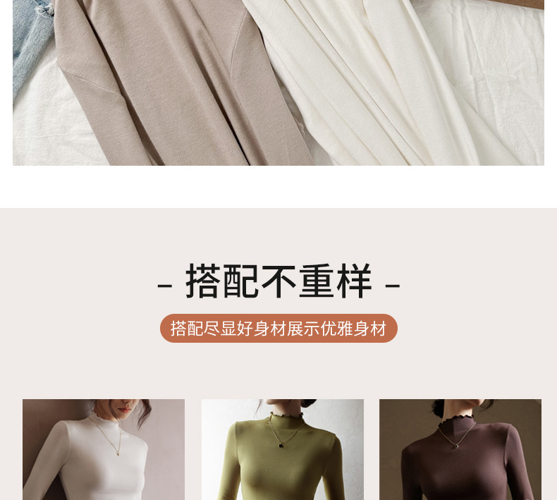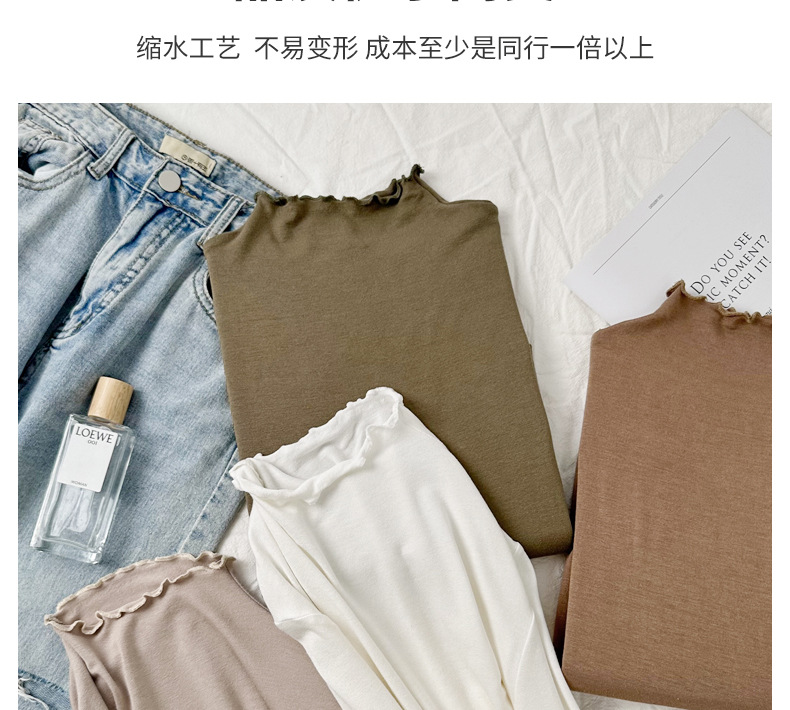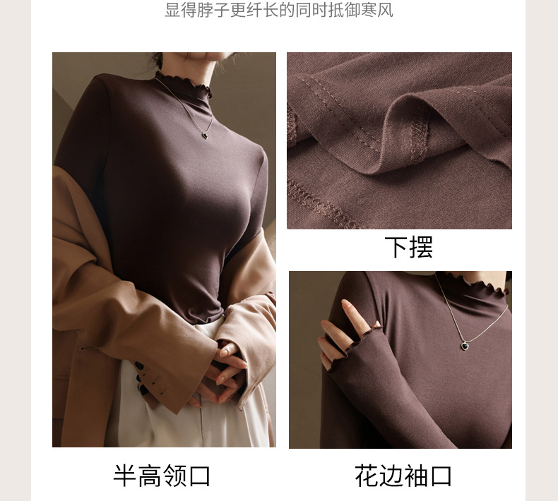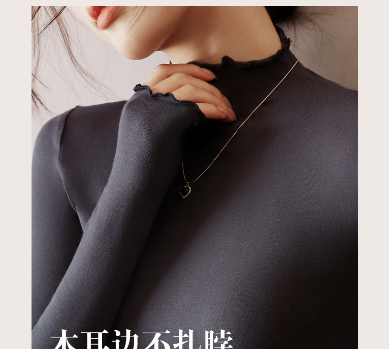 破价来袭!99/三件!!!【 轻暖木耳边打底衫】外穿内搭 修身显瘦 贴服柔软 亲肤舒适 软软糯糯 高弹无束缚 3秒速热 花边设计 H244050458