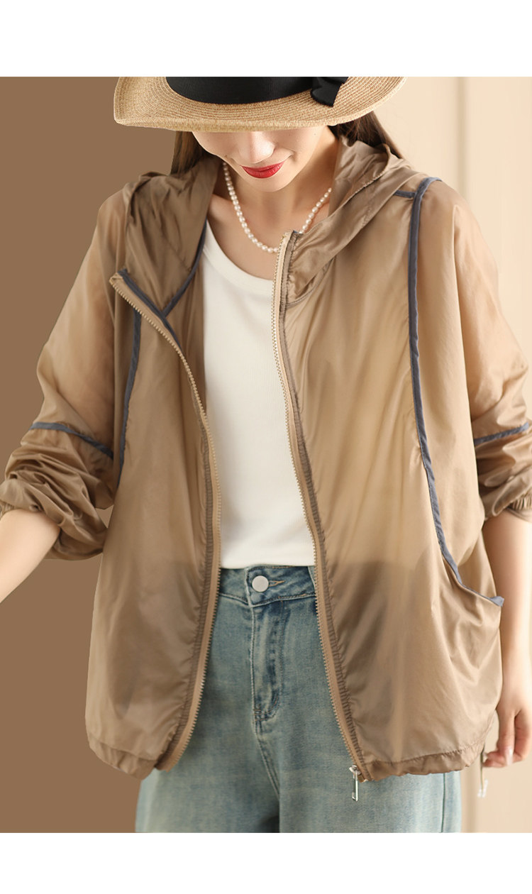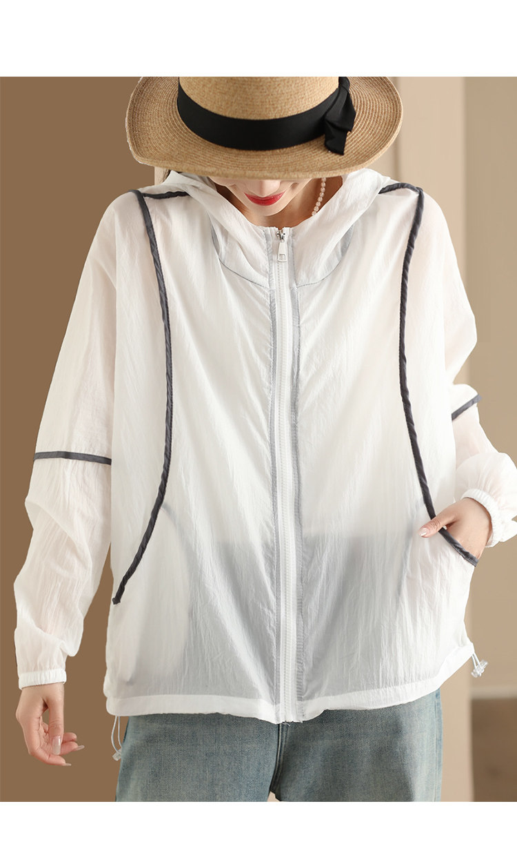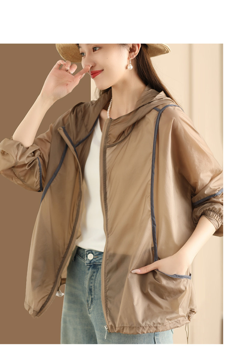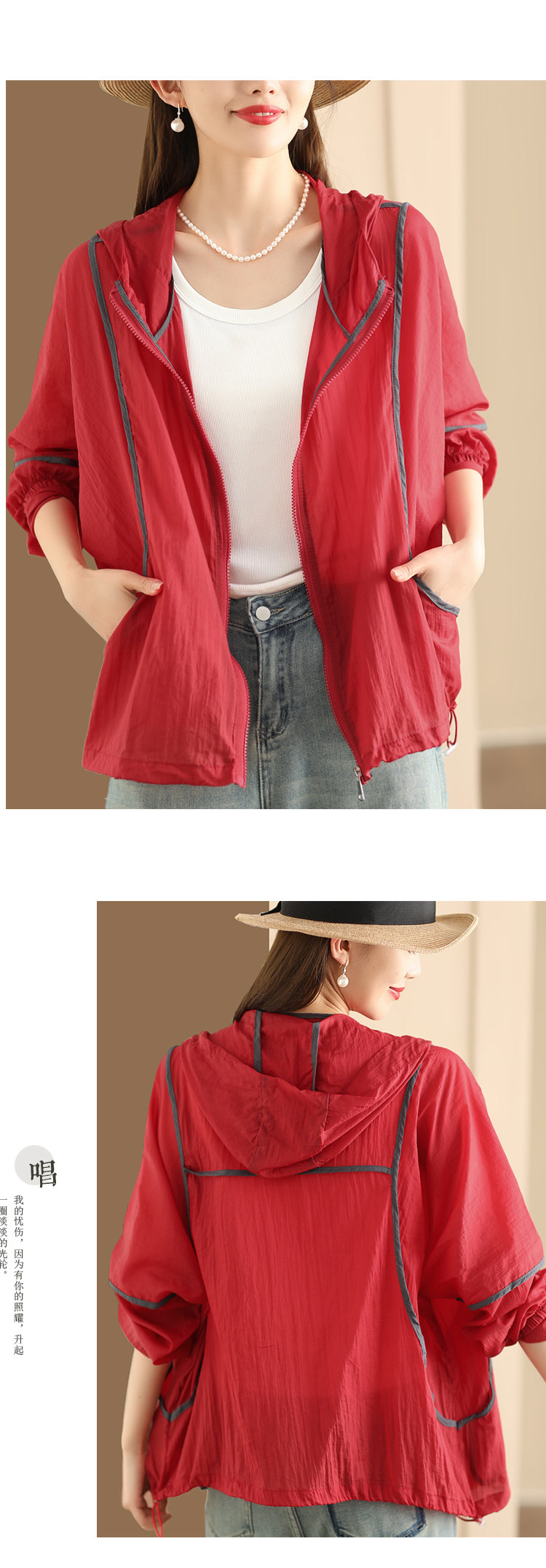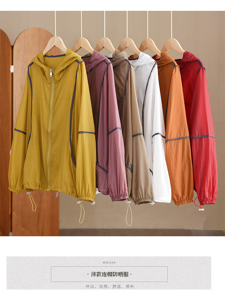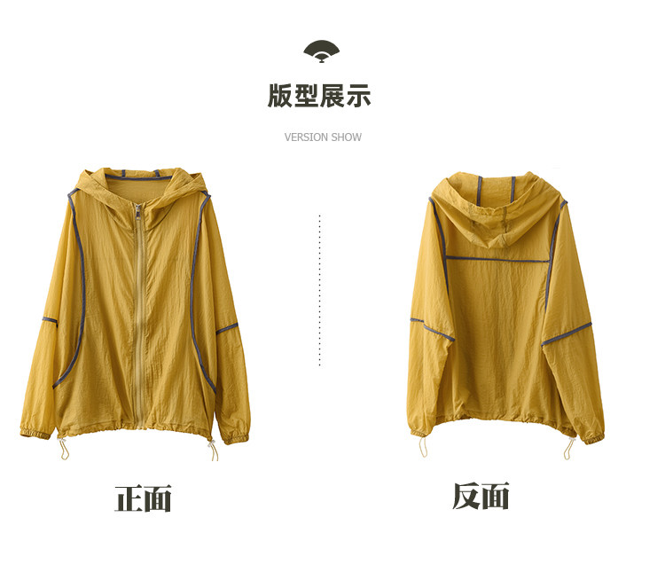 A998超细双线格防晒衣透气防晒服外套抽绳摆连帽开衫上衣女
