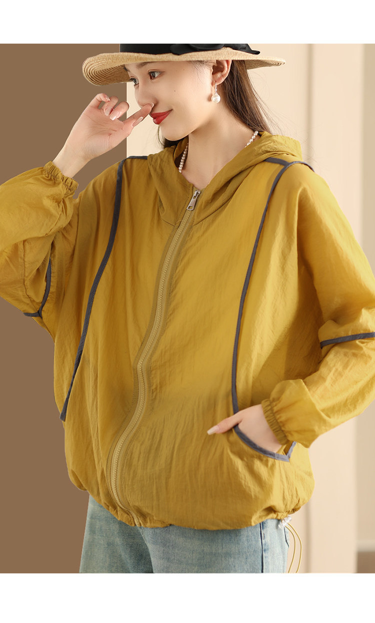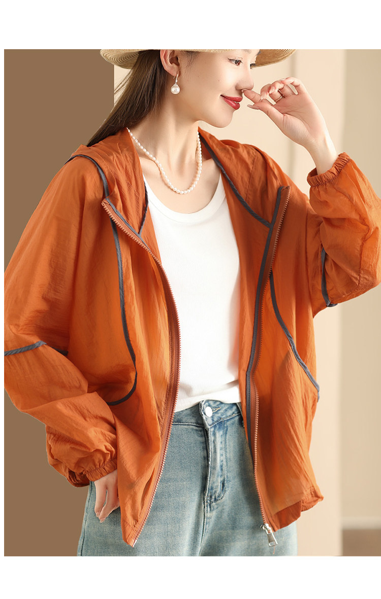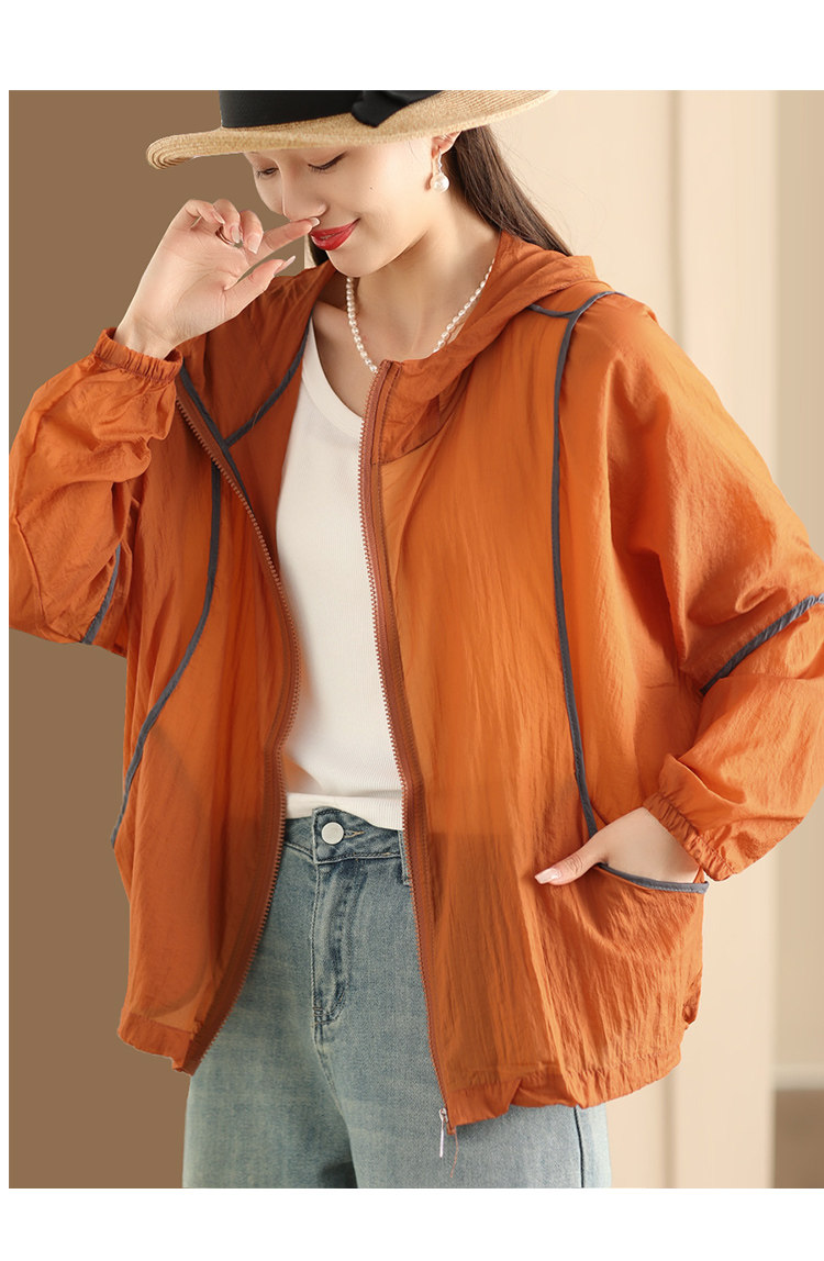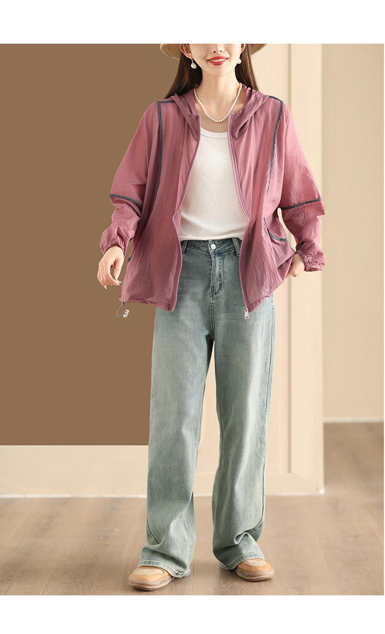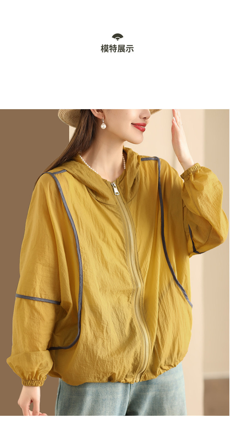 A998超细双线格防晒衣透气防晒服外套抽绳摆连帽开衫上衣女