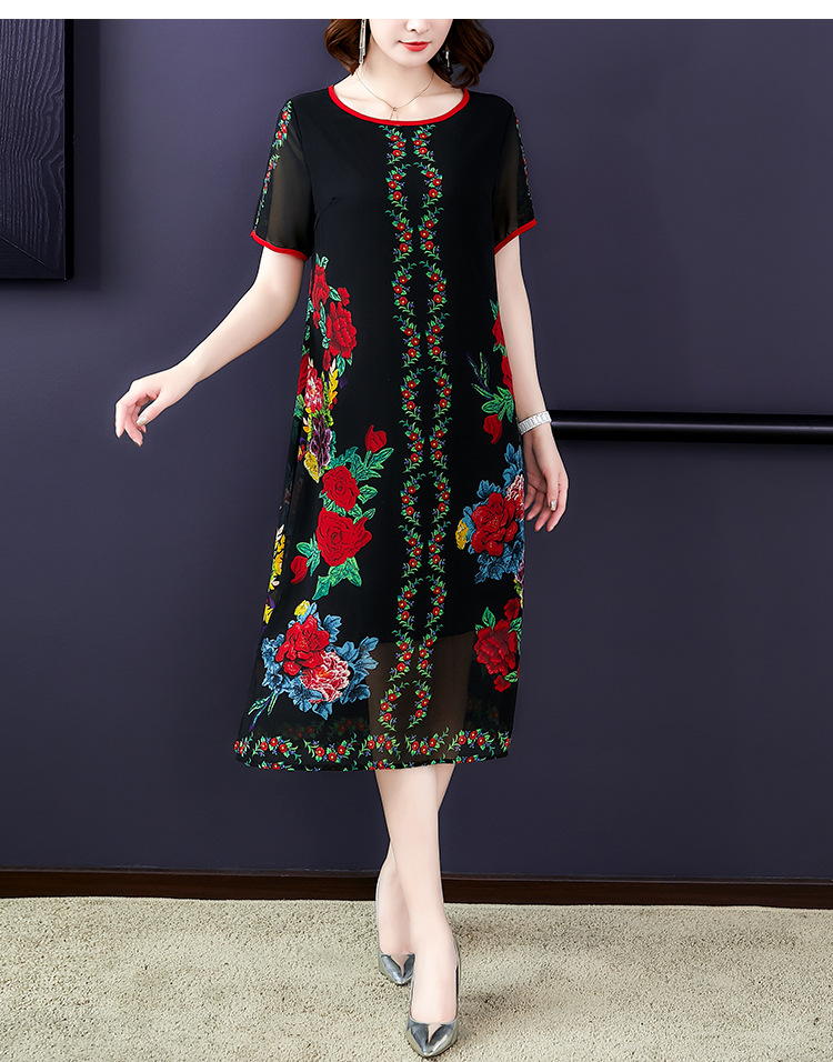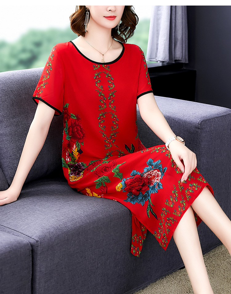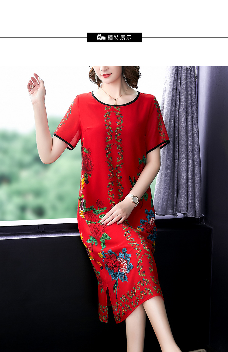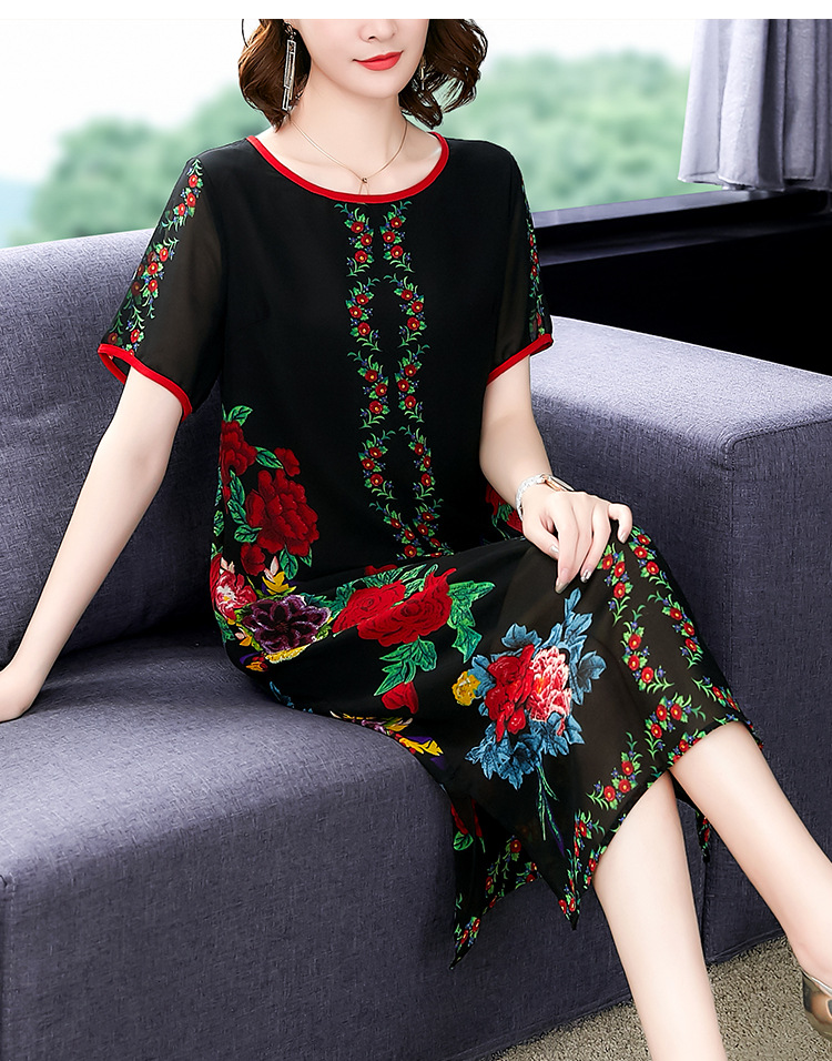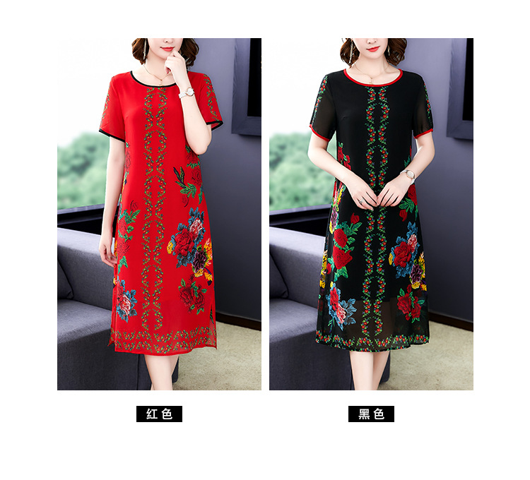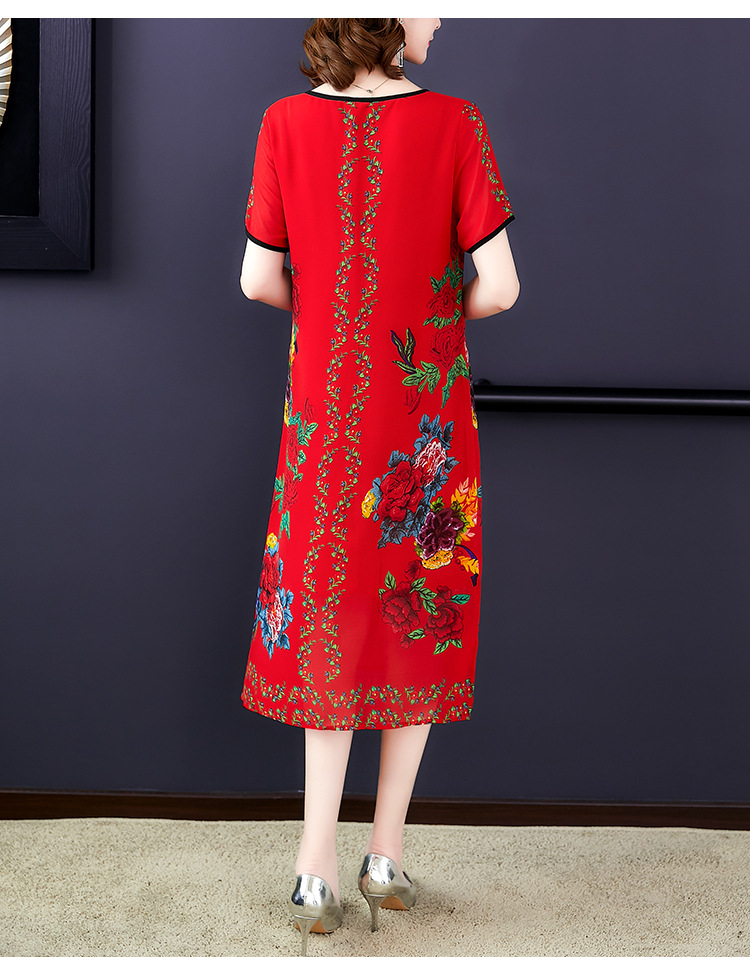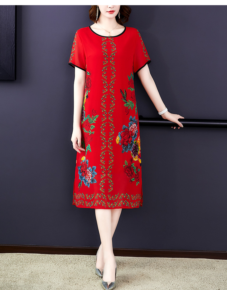 AHM-ymy5038韩版印花阔太太收腰显瘦大码过膝裙