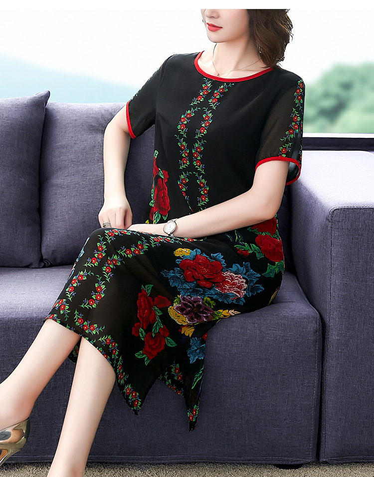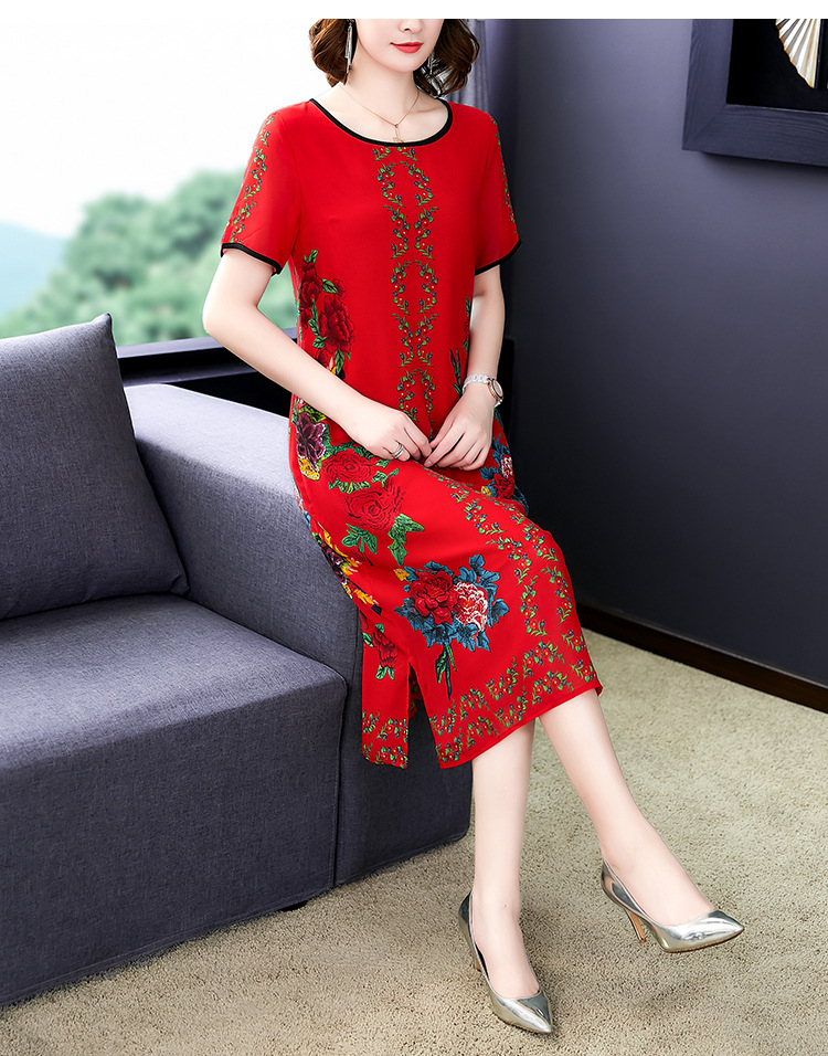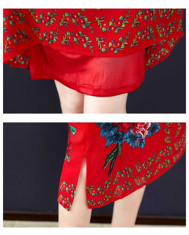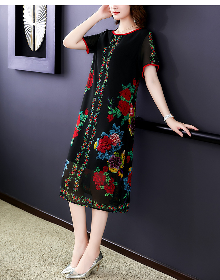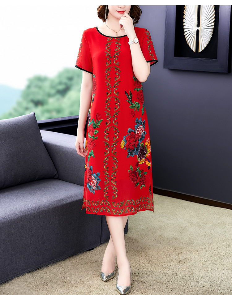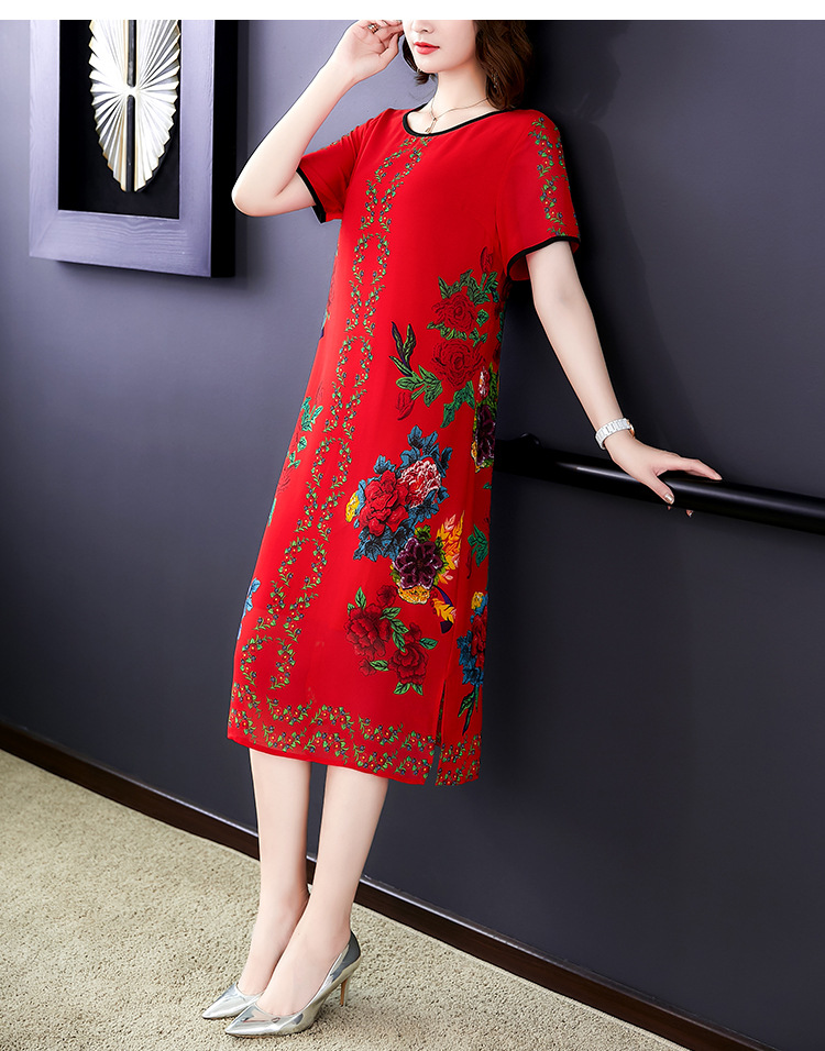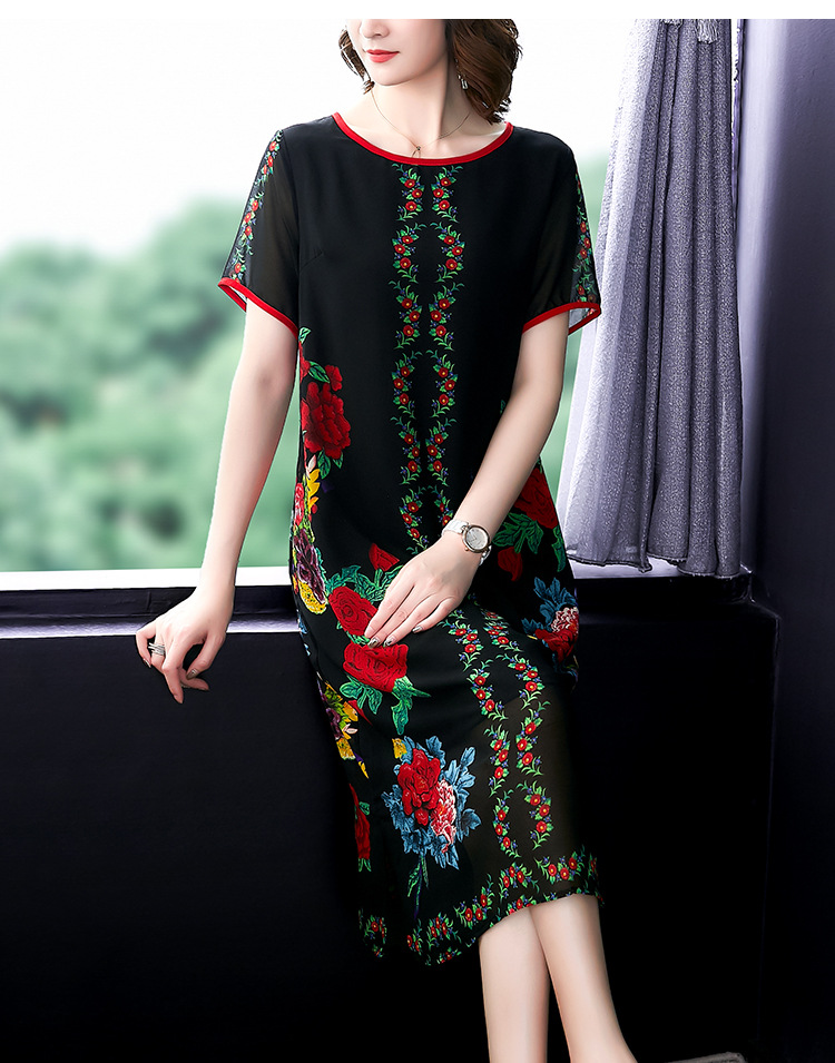 AHM-ymy5038韩版印花阔太太收腰显瘦大码过膝裙