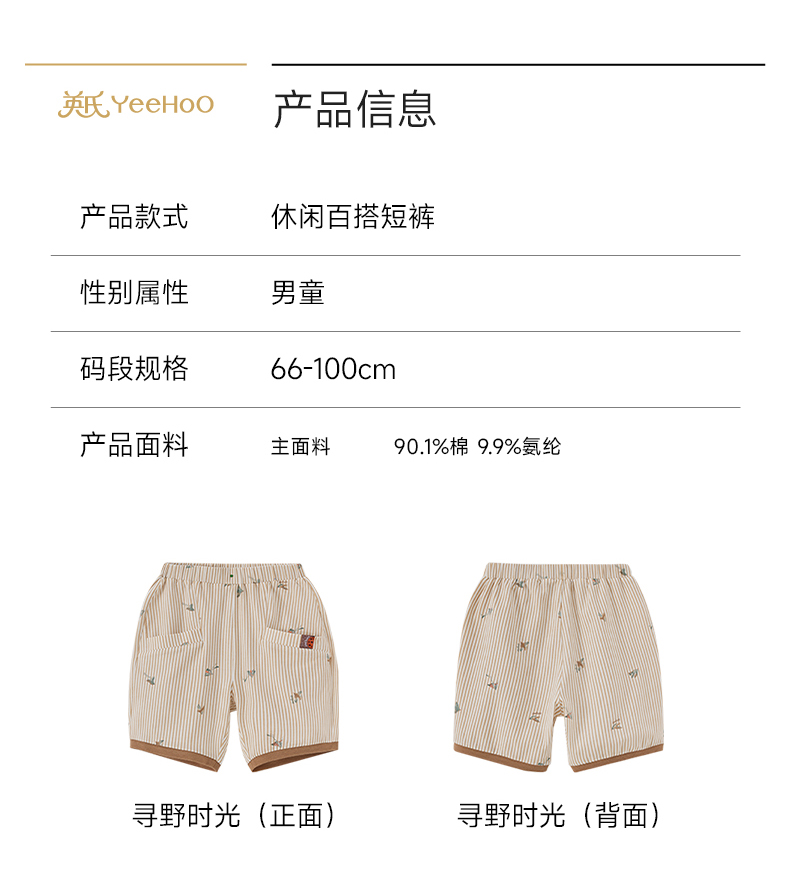 【商场同款】英氏儿童裤子男童夏季百搭条纹PP裤26新款休闲短裤